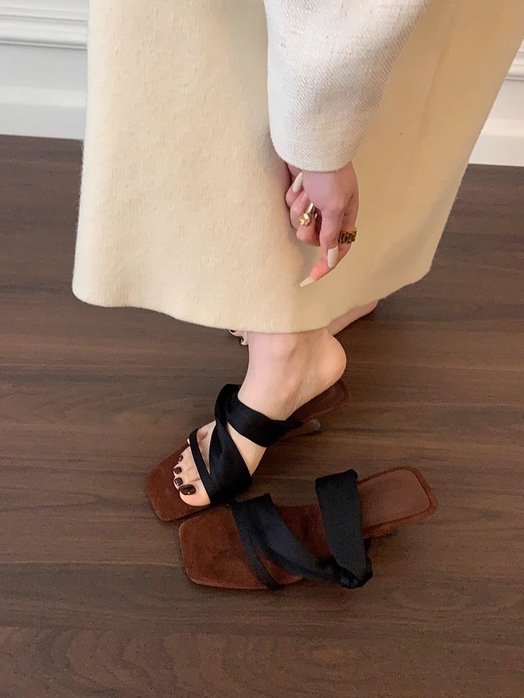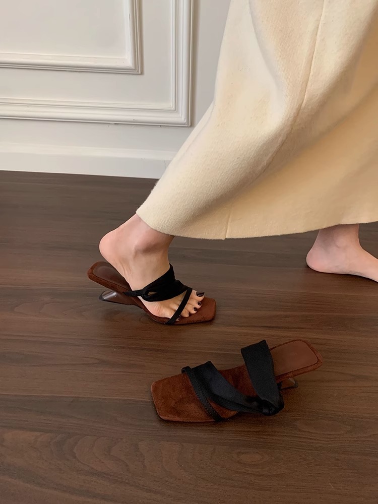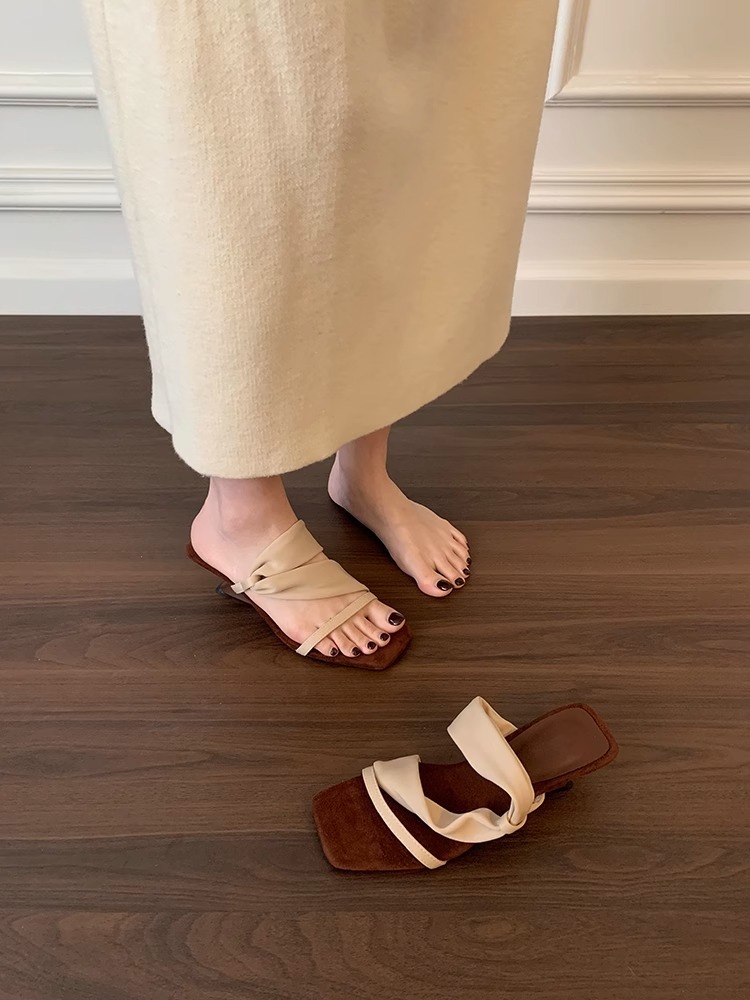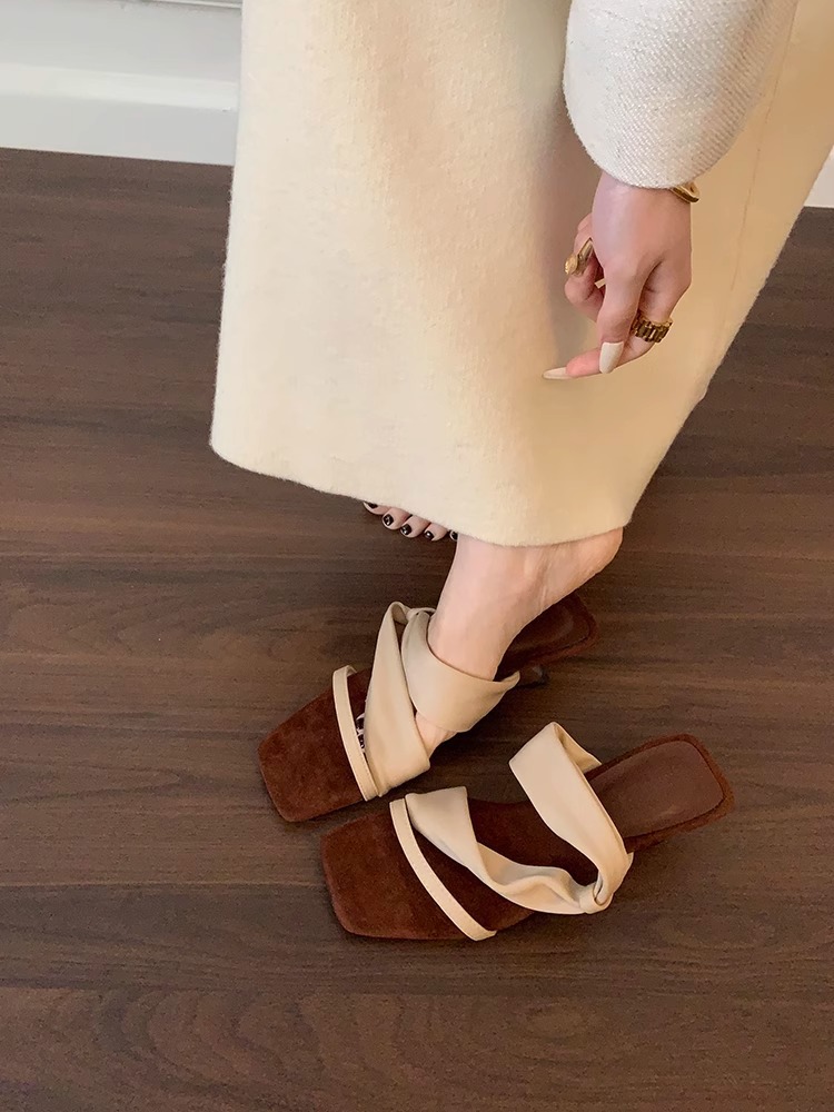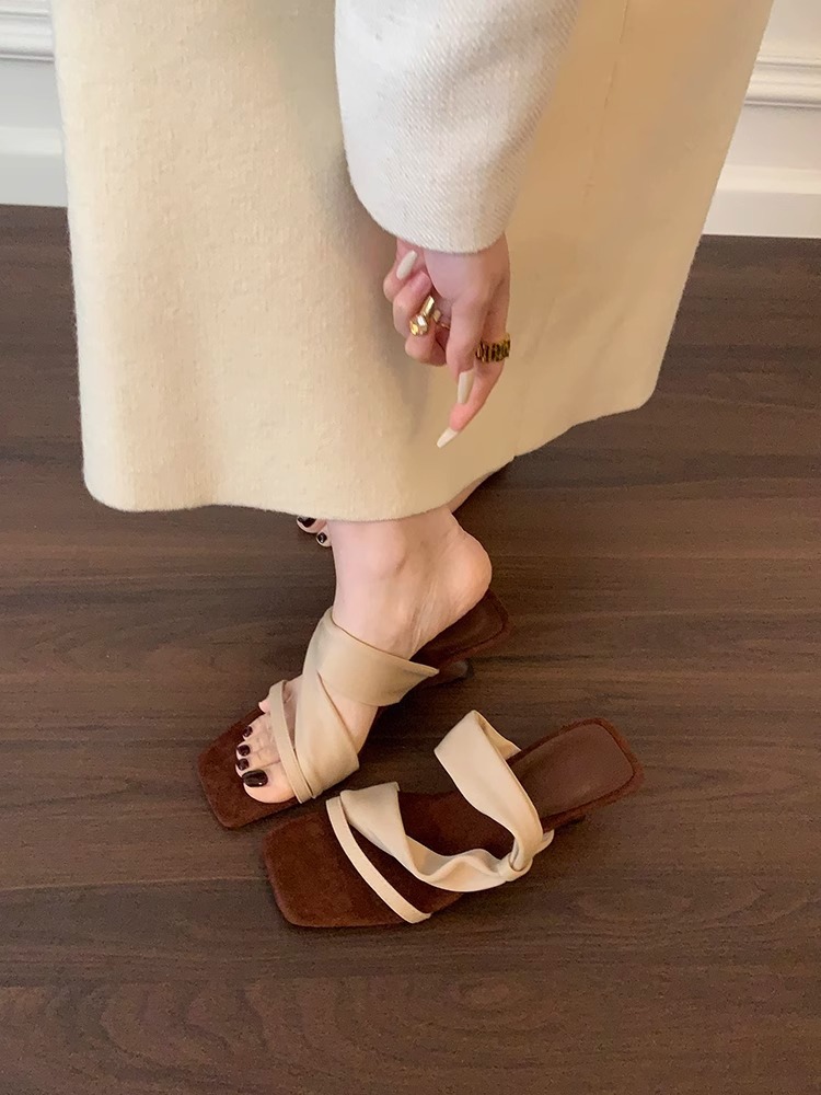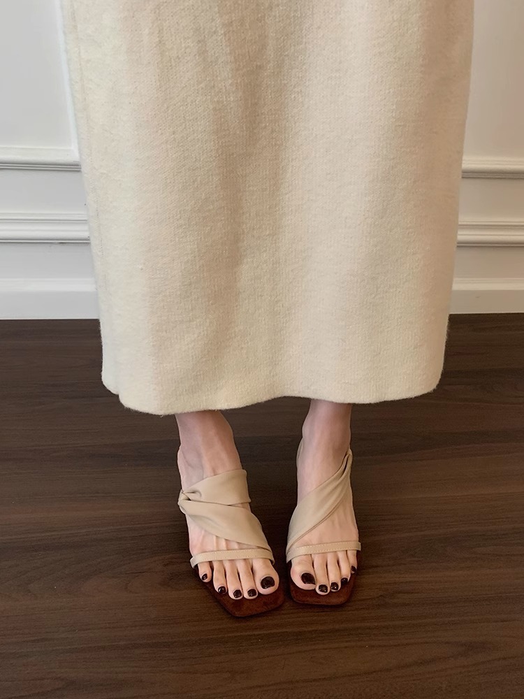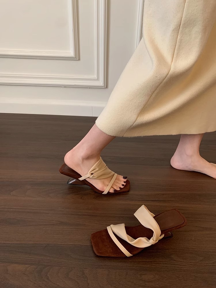 Sandalias de cuña de diseño de nicho de todo fósforo de moda sandalias francesas de primavera y verano zapatos de mujer sandalias y zapatillas de tacón alto con punta abierta