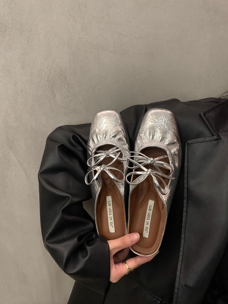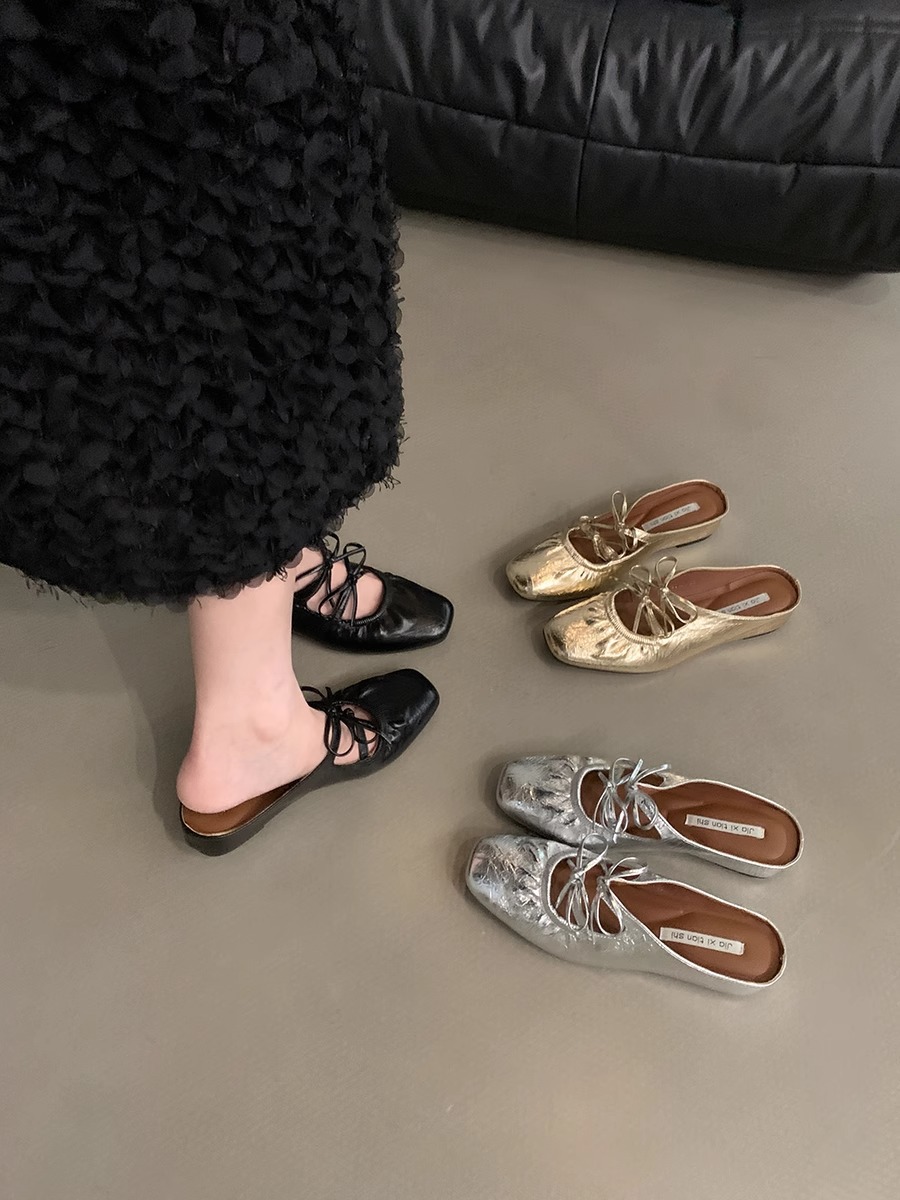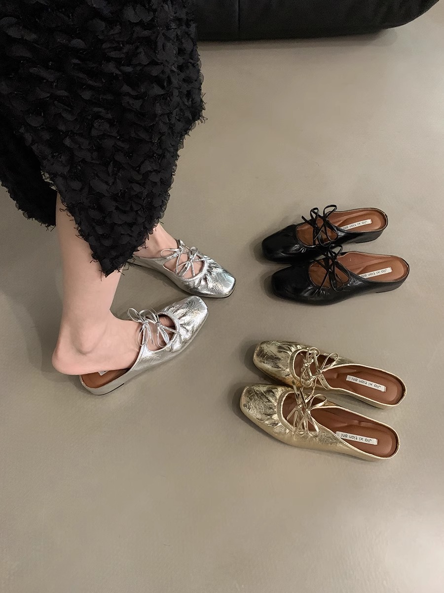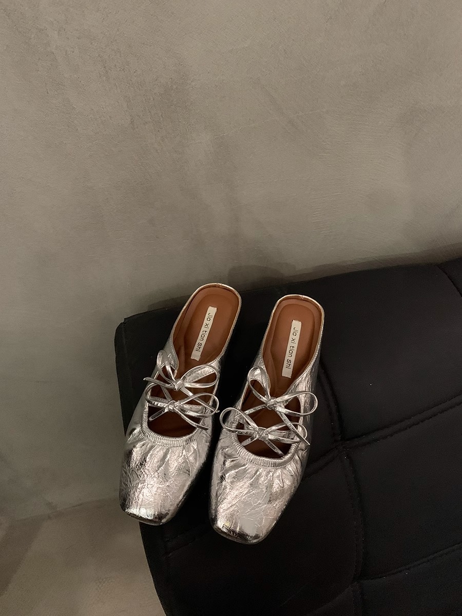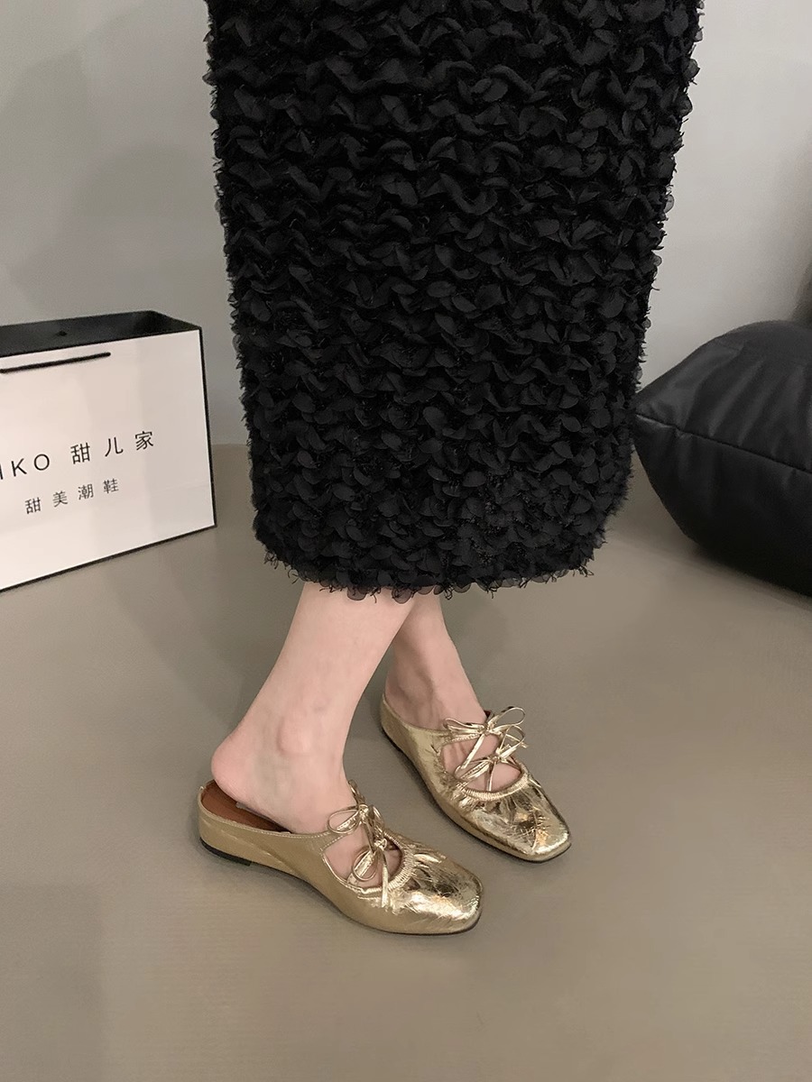 Inner realce bowknot plateado puntera medio arrastre zapatos de mujer moda exterior 2025 nuevas sandalias Mary Jane de verano