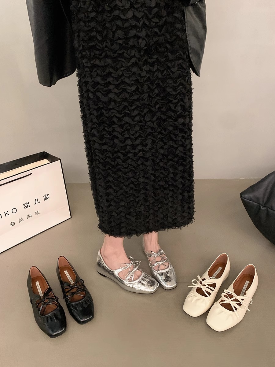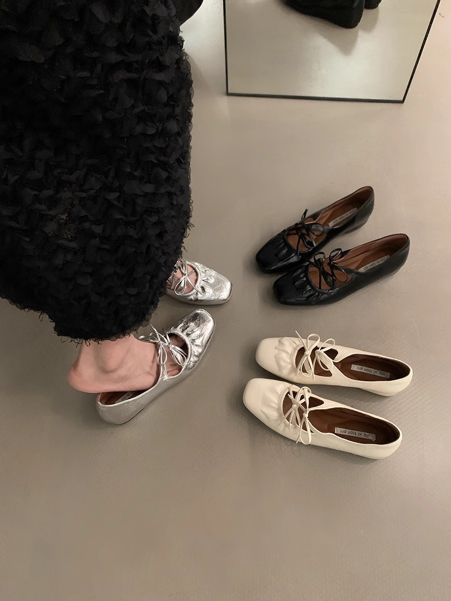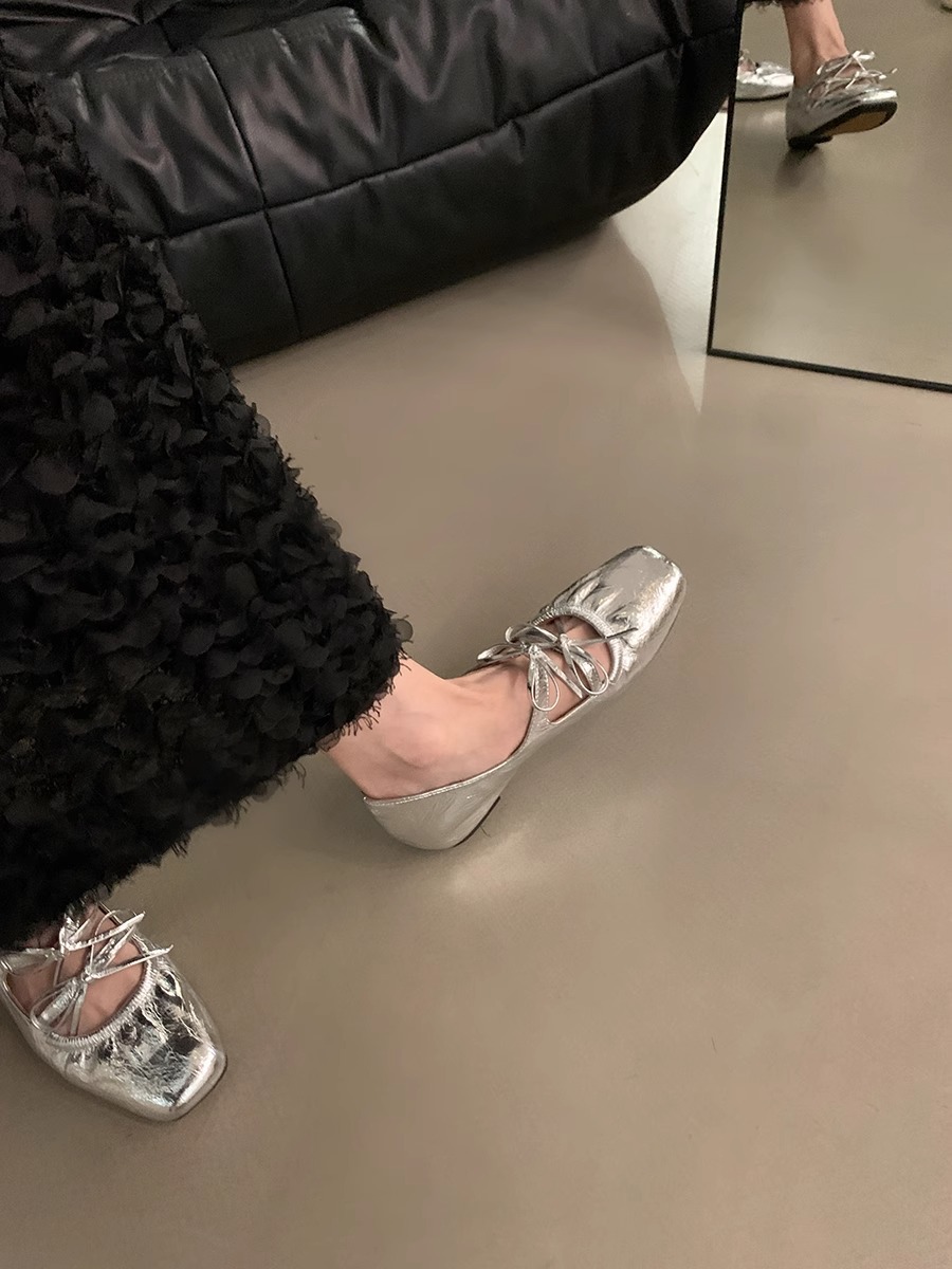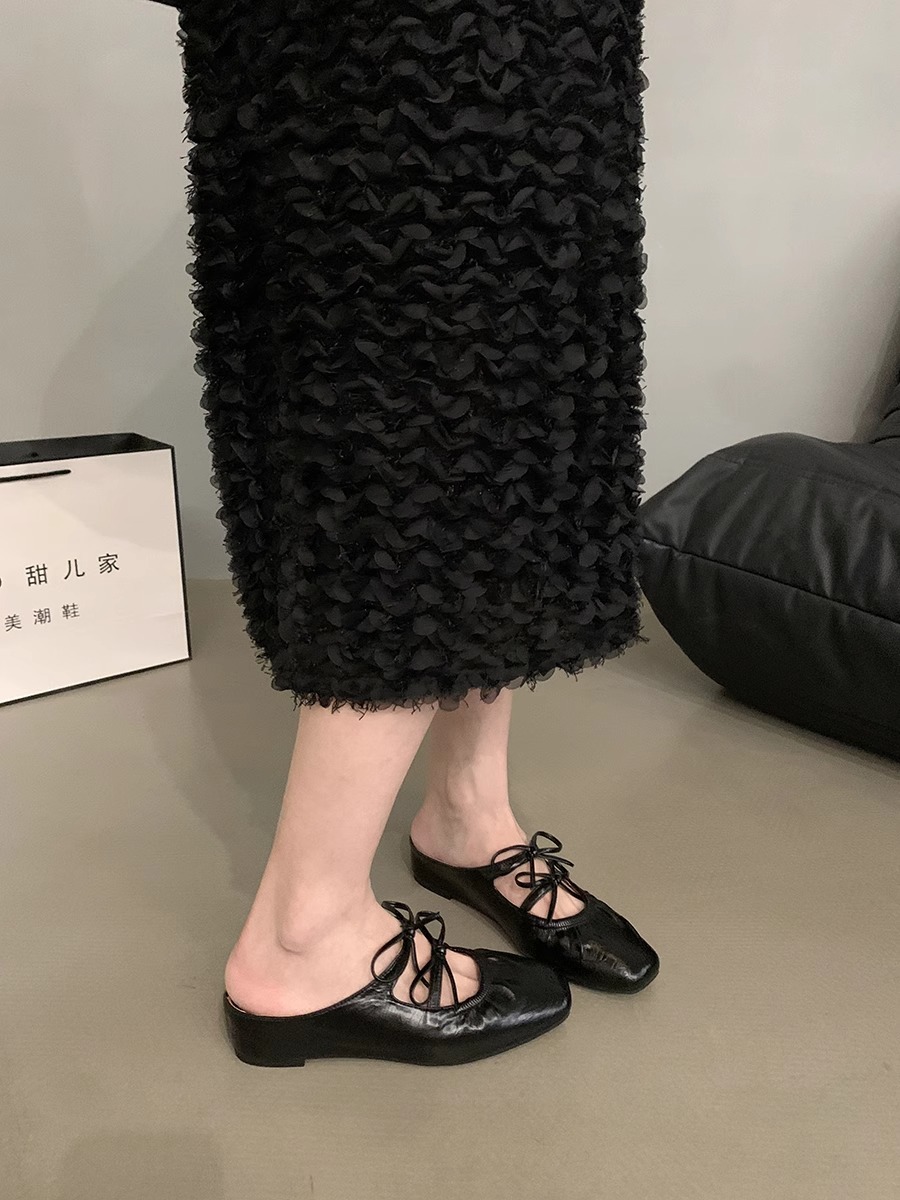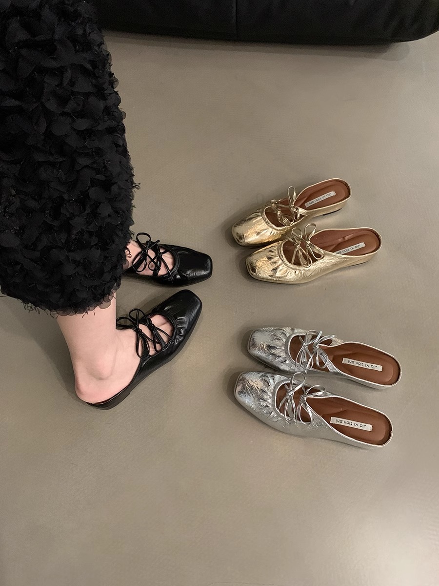 Inner realce bowknot plateado puntera medio arrastre zapatos de mujer moda exterior 2025 nuevas sandalias Mary Jane de verano