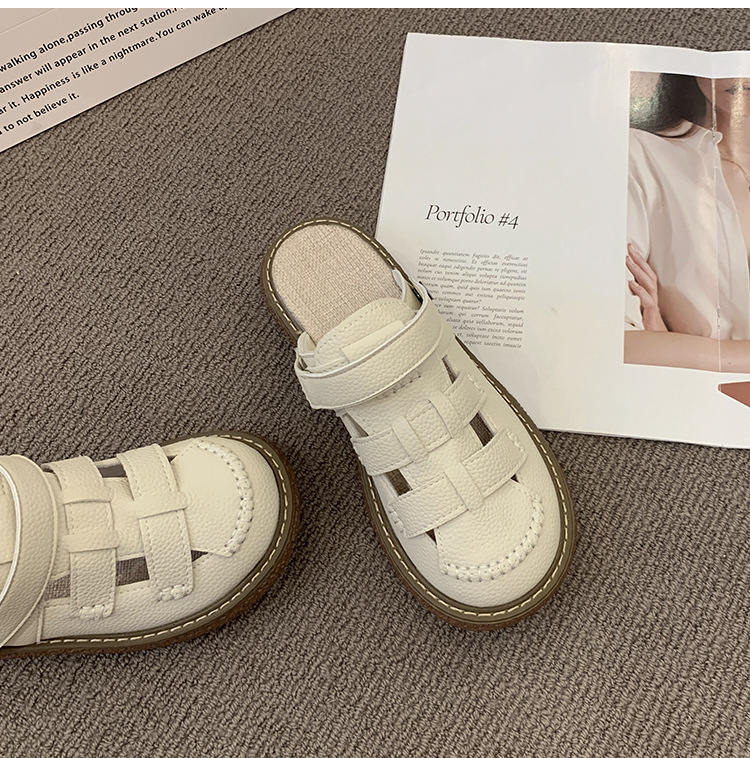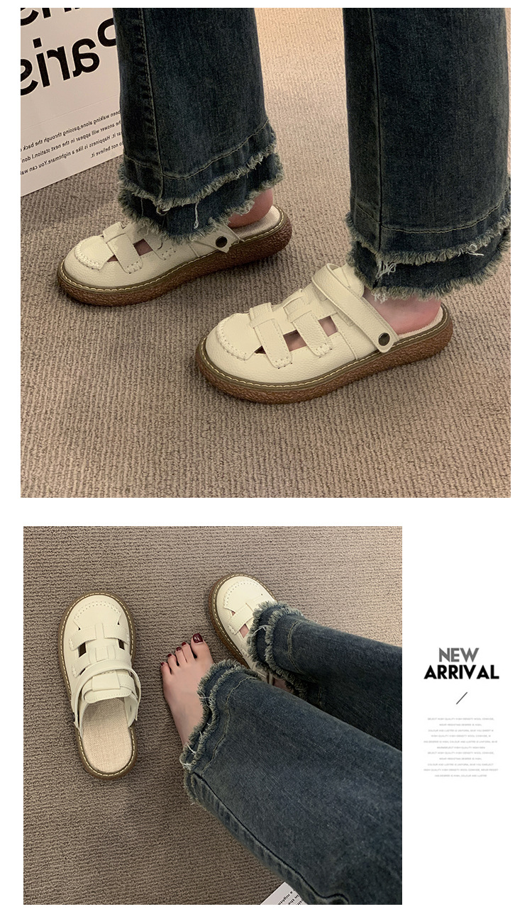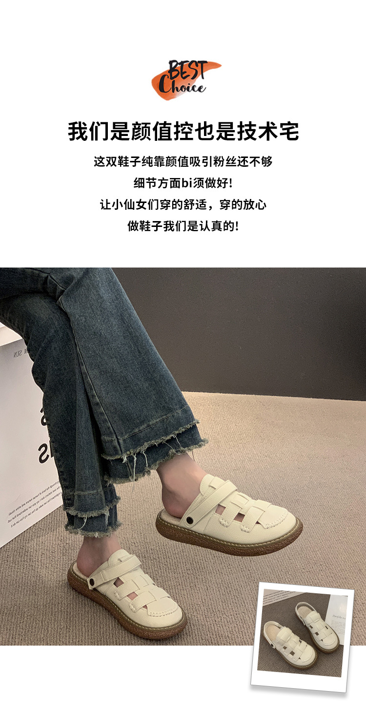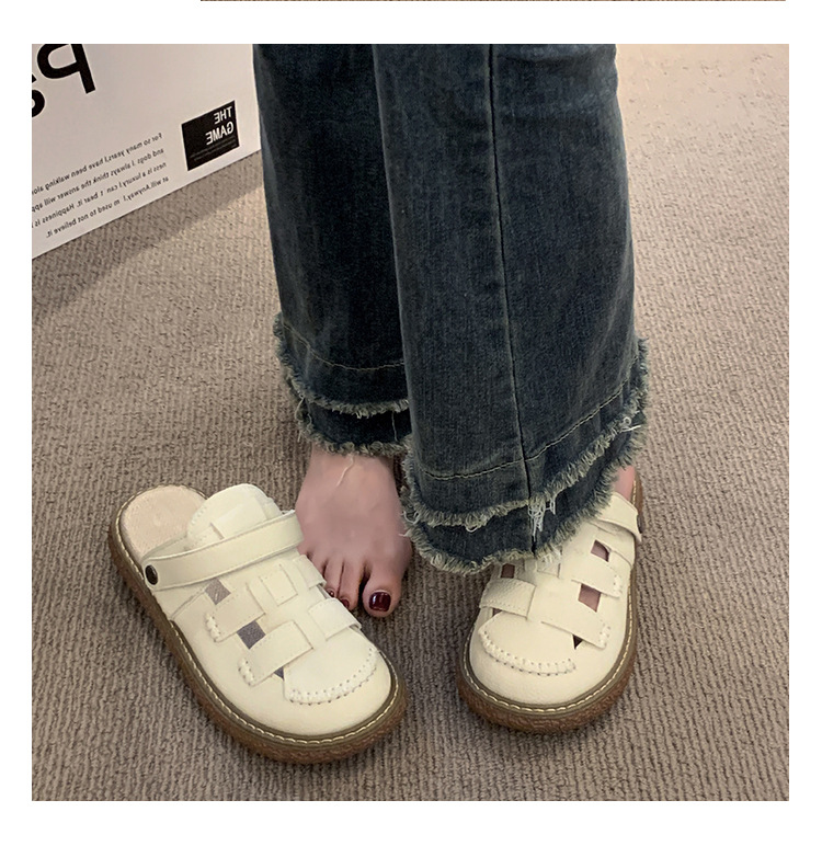 Sandalias Baotou para mujer 2025 nuevos zapatos con agujeros exteriores de verano dos medias zapatillas de suela gruesa zapatos romanos de playa