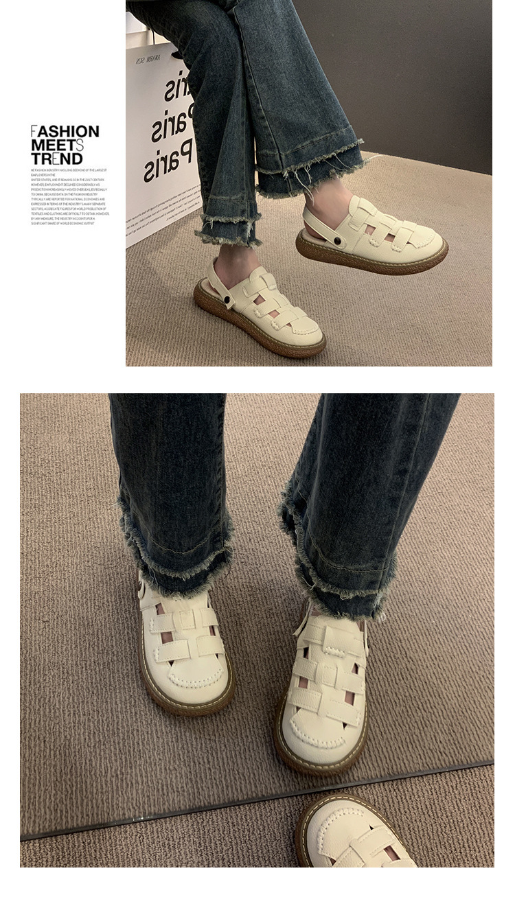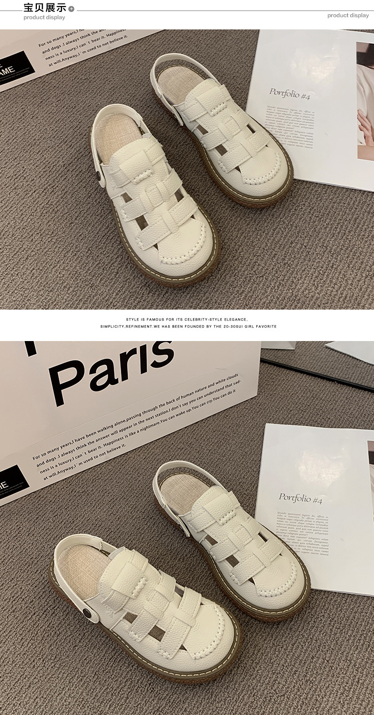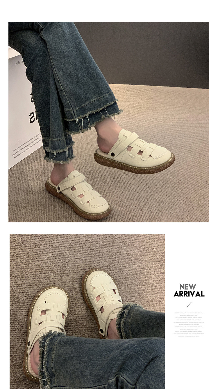 Sandalias Baotou para mujer 2025 nuevos zapatos con agujeros exteriores de verano dos medias zapatillas de suela gruesa zapatos romanos de playa