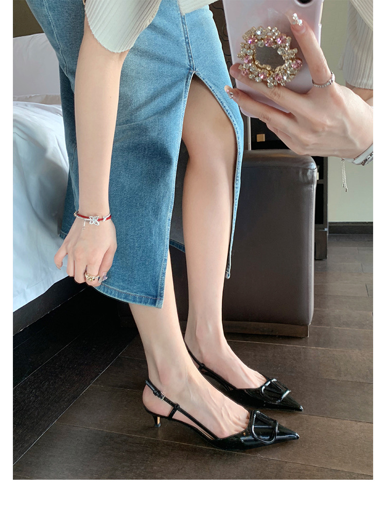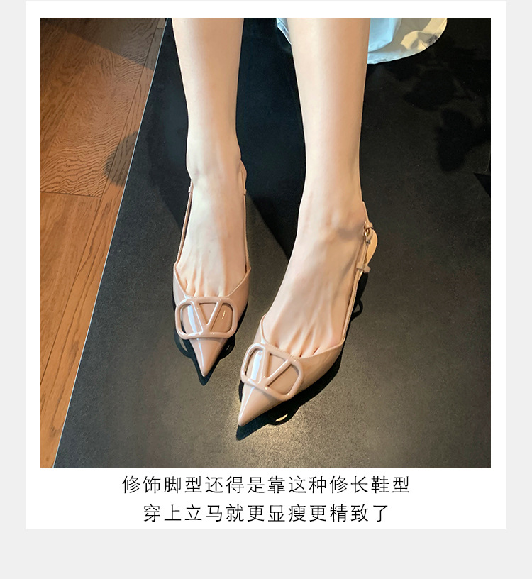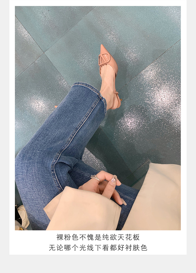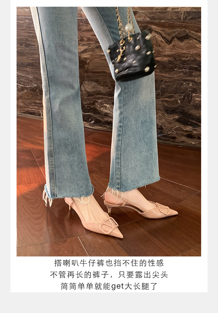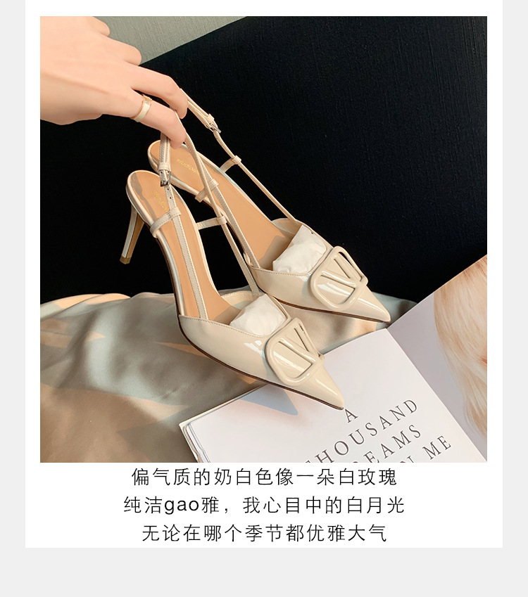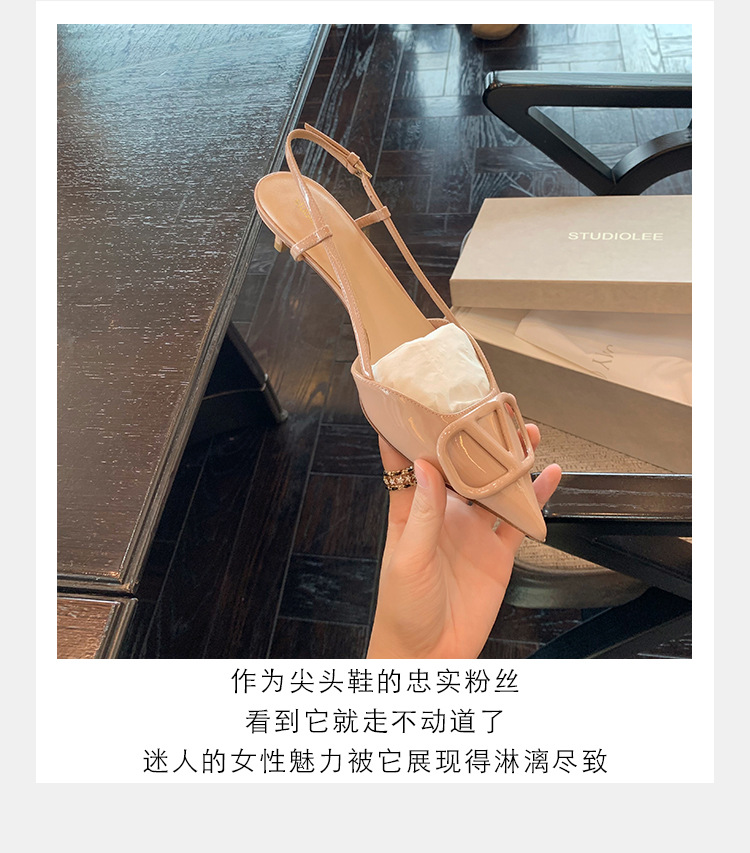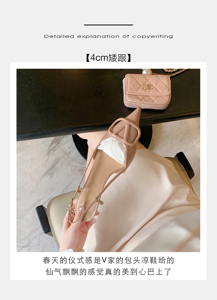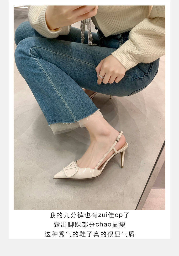 Verano nuevo estilo sandalias francés retro punta dedo del pie trasero vacío cerrado toe sandalias de las mujeres elegantes de cercanías Sandalias de tacón alto mujeres 8208