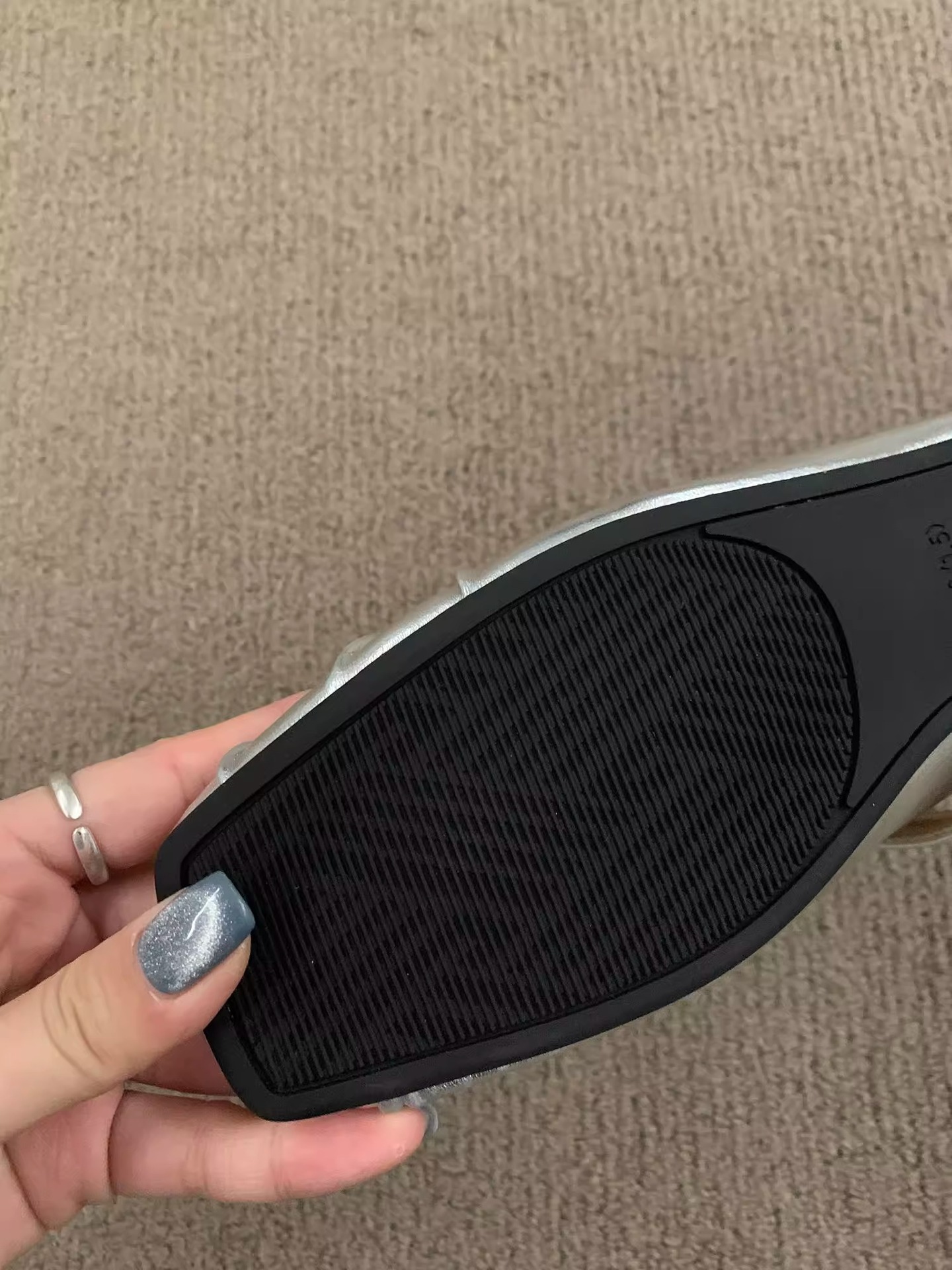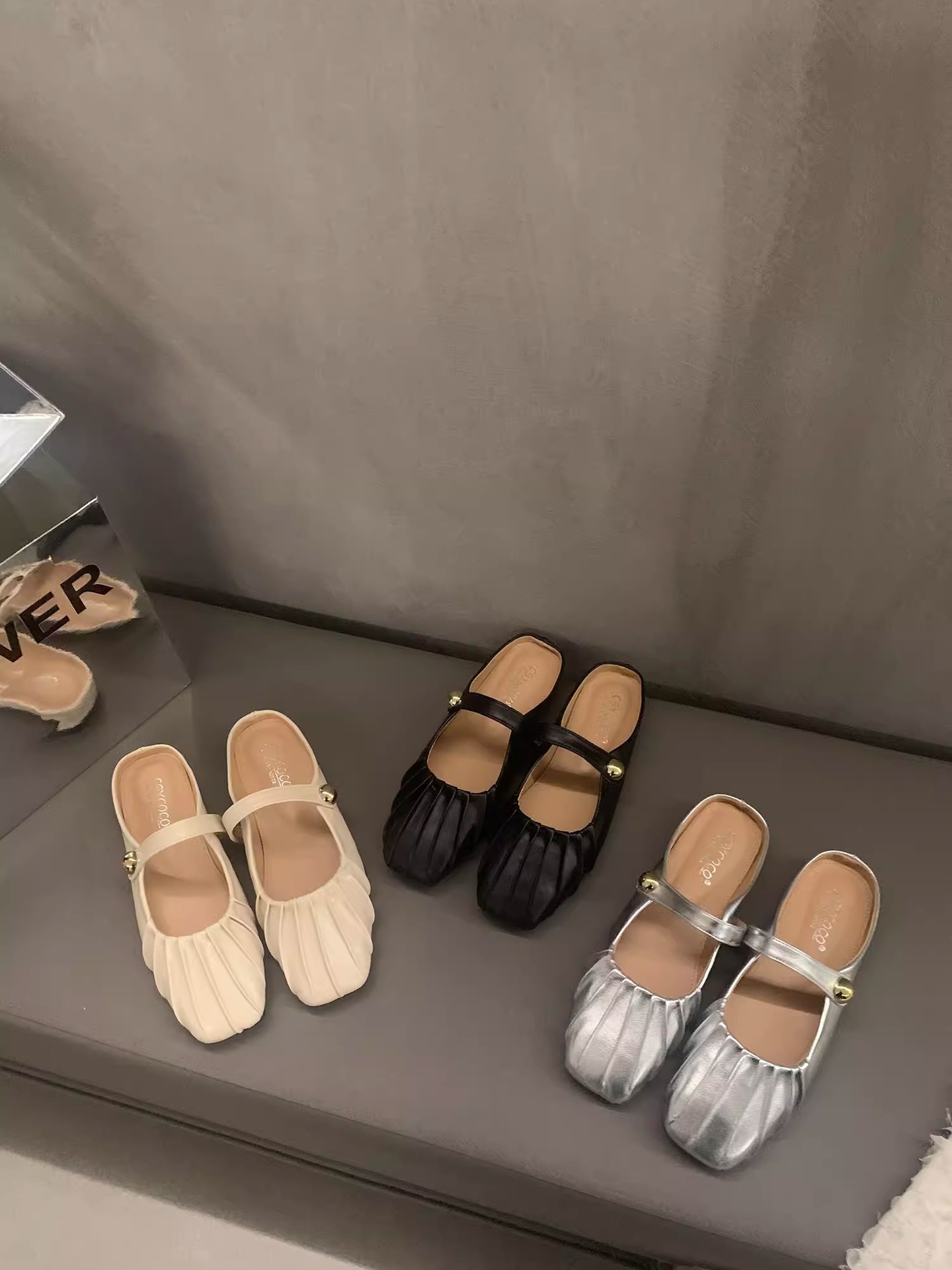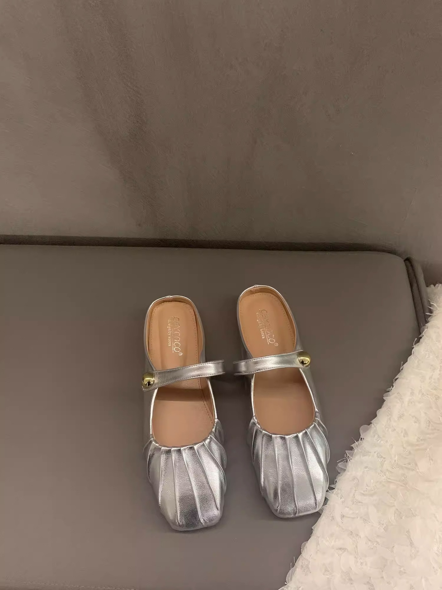 Zapatos de plata primavera y verano para mujer estilo caliente Baotou medio trapeador para llevar 2024 nuevas sandalias Mary Jane con falda zapatos individuales
