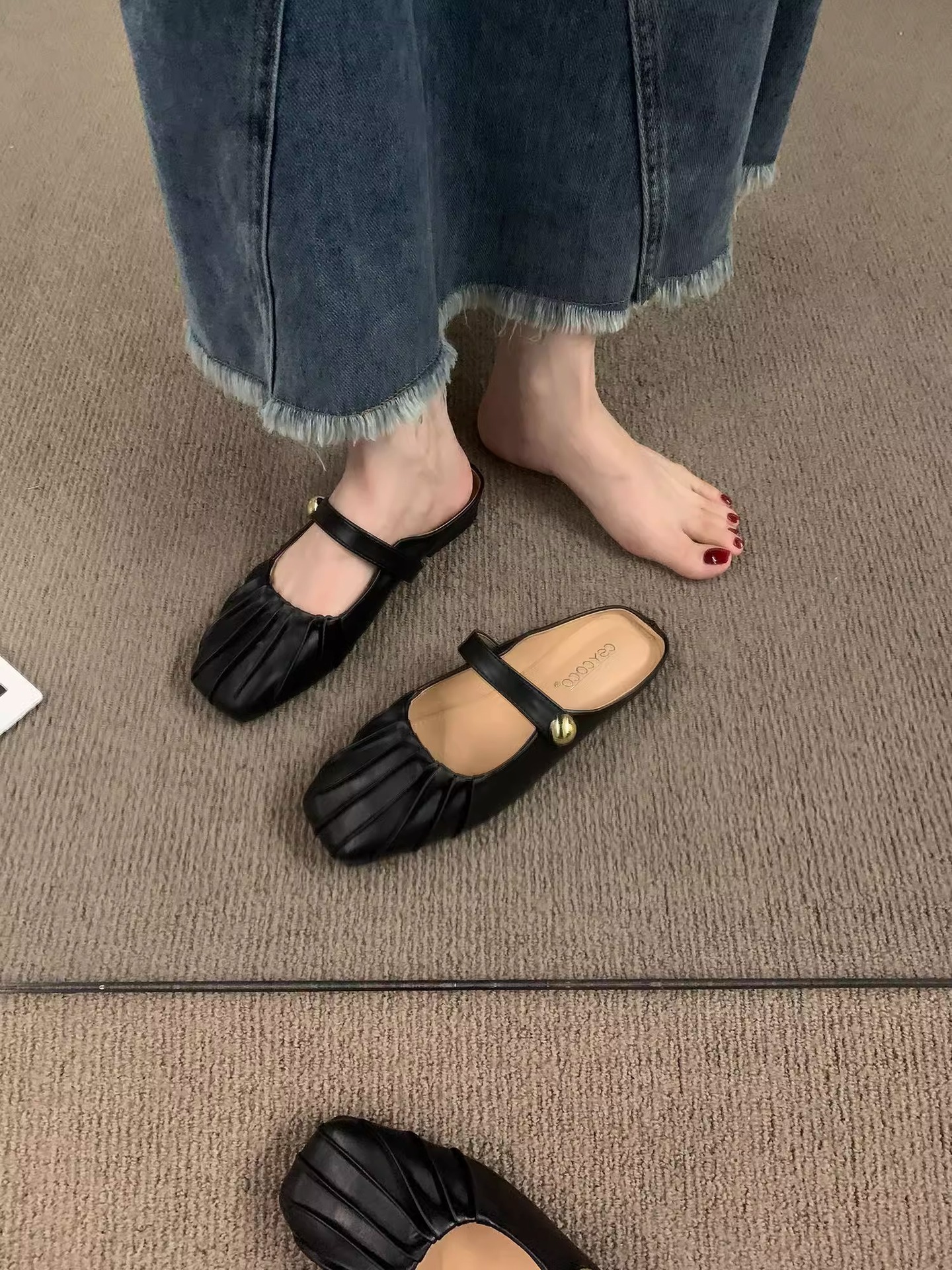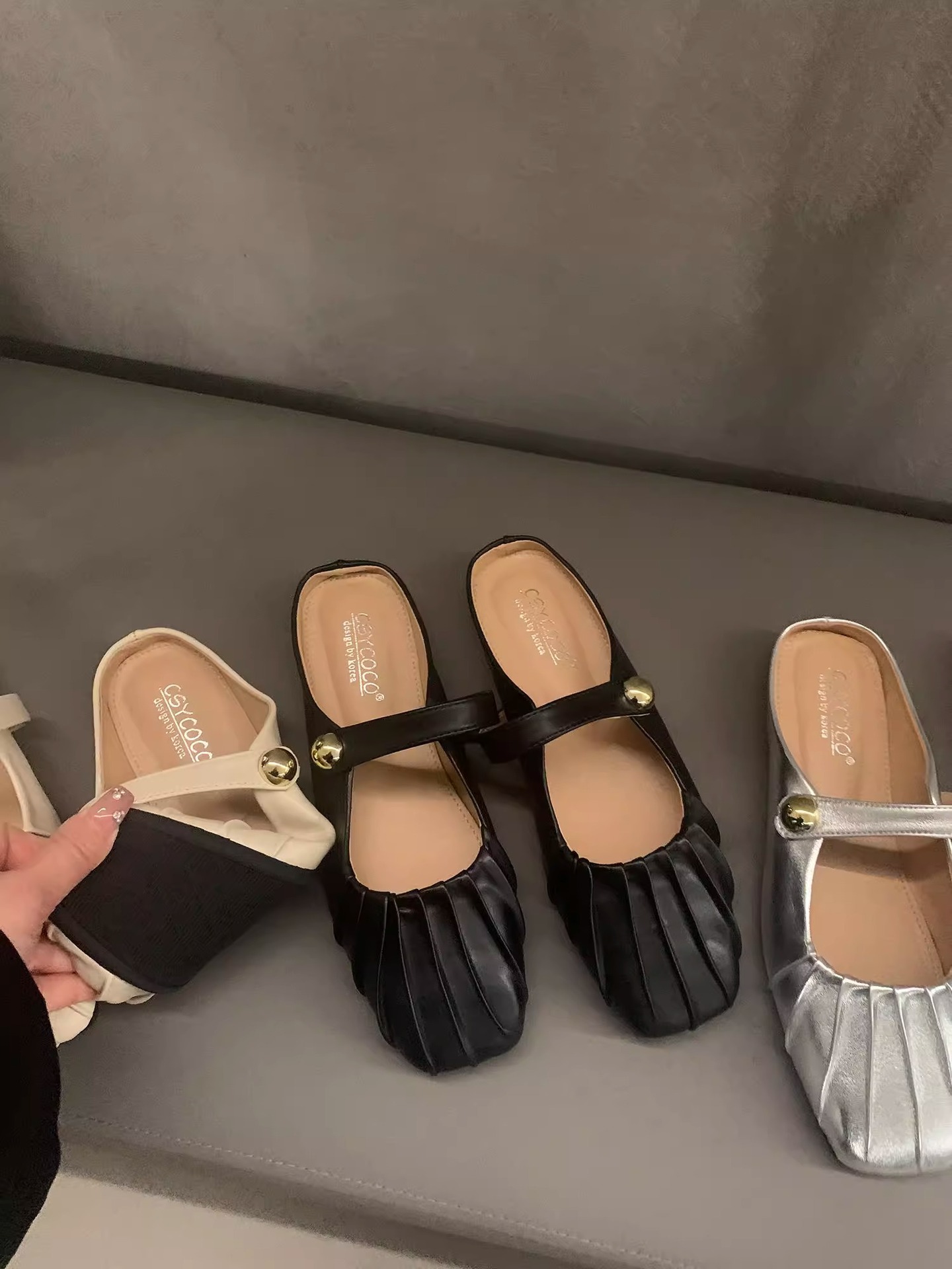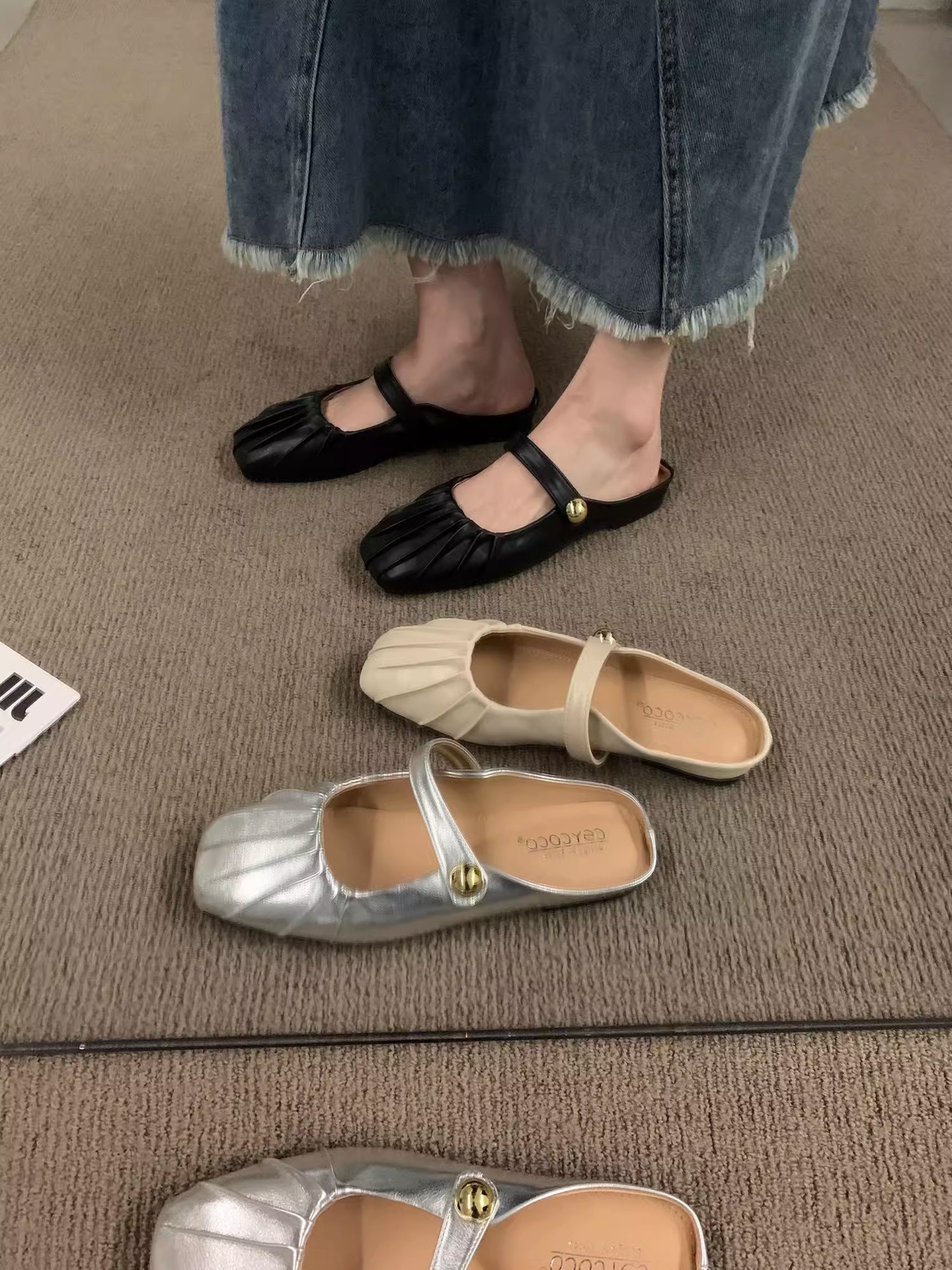 Zapatos de plata primavera y verano para mujer estilo caliente Baotou medio trapeador para llevar 2024 nuevas sandalias Mary Jane con falda zapatos individuales
