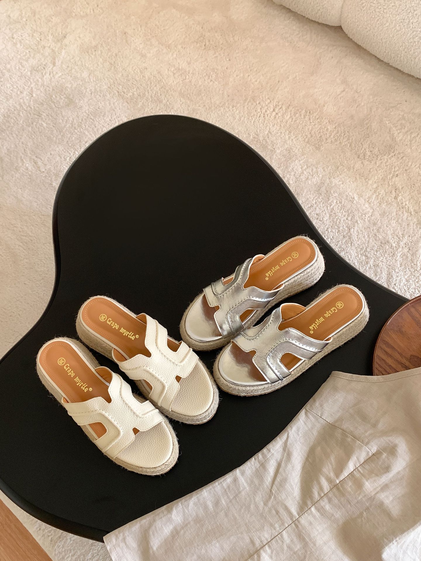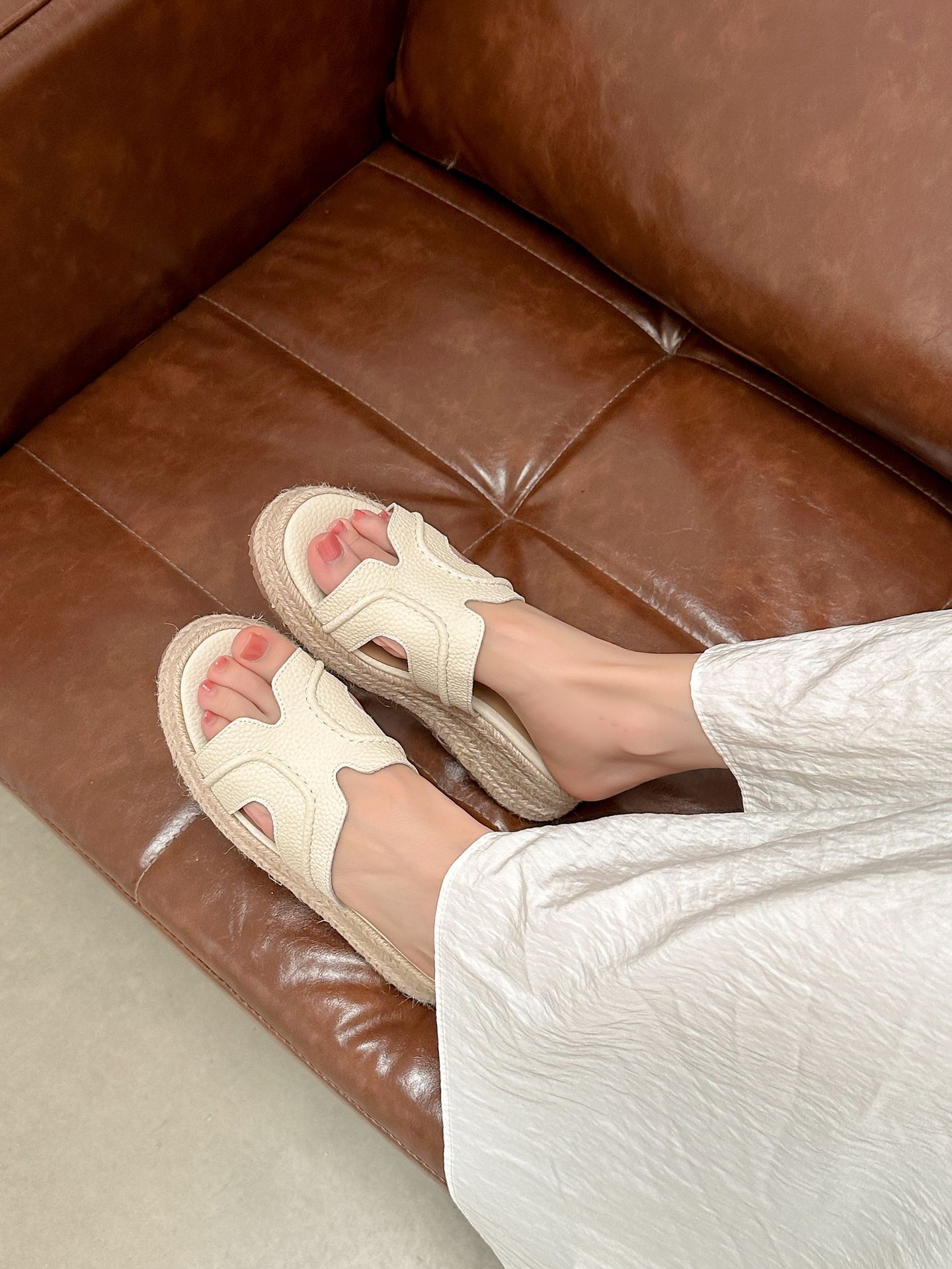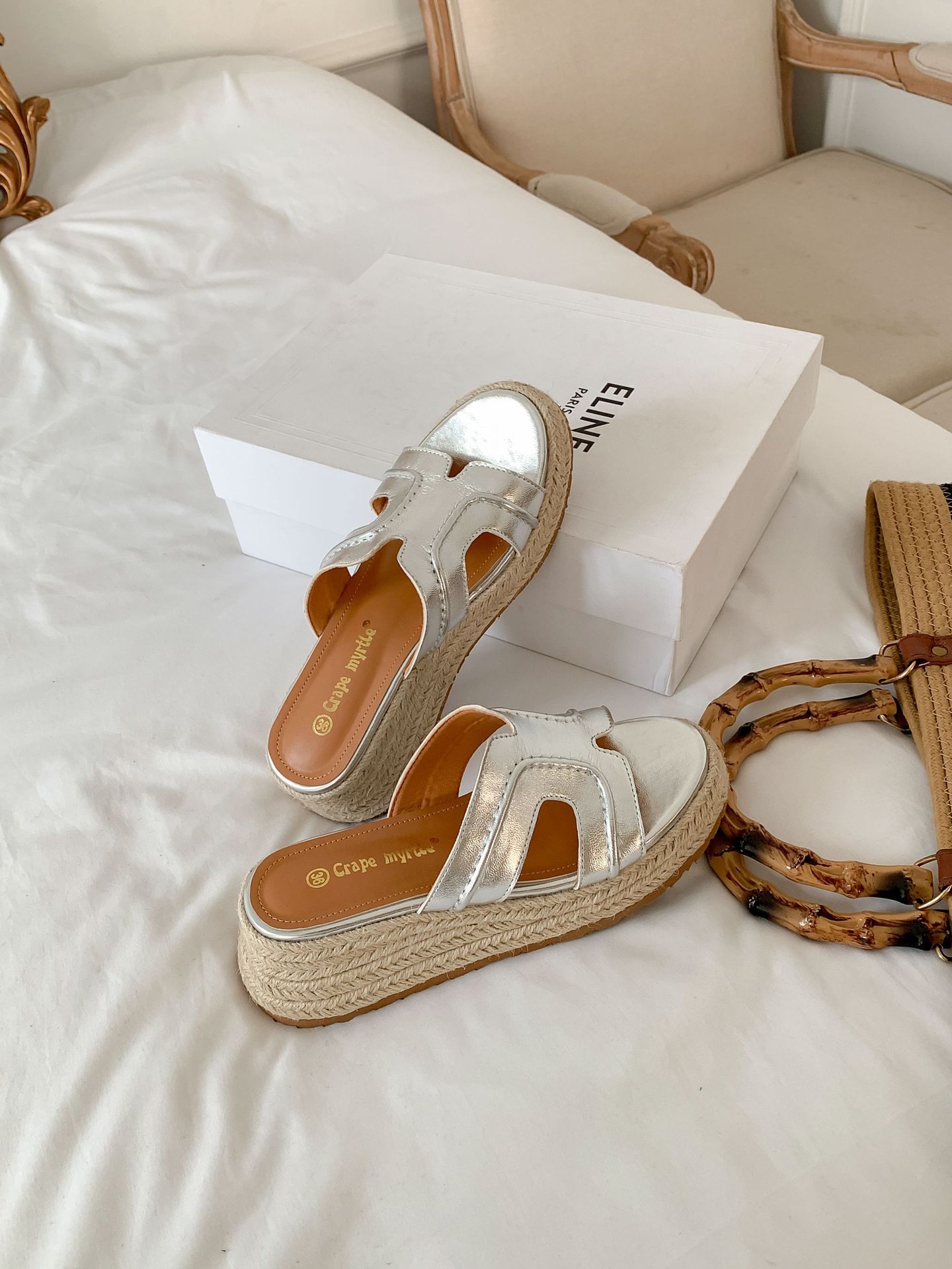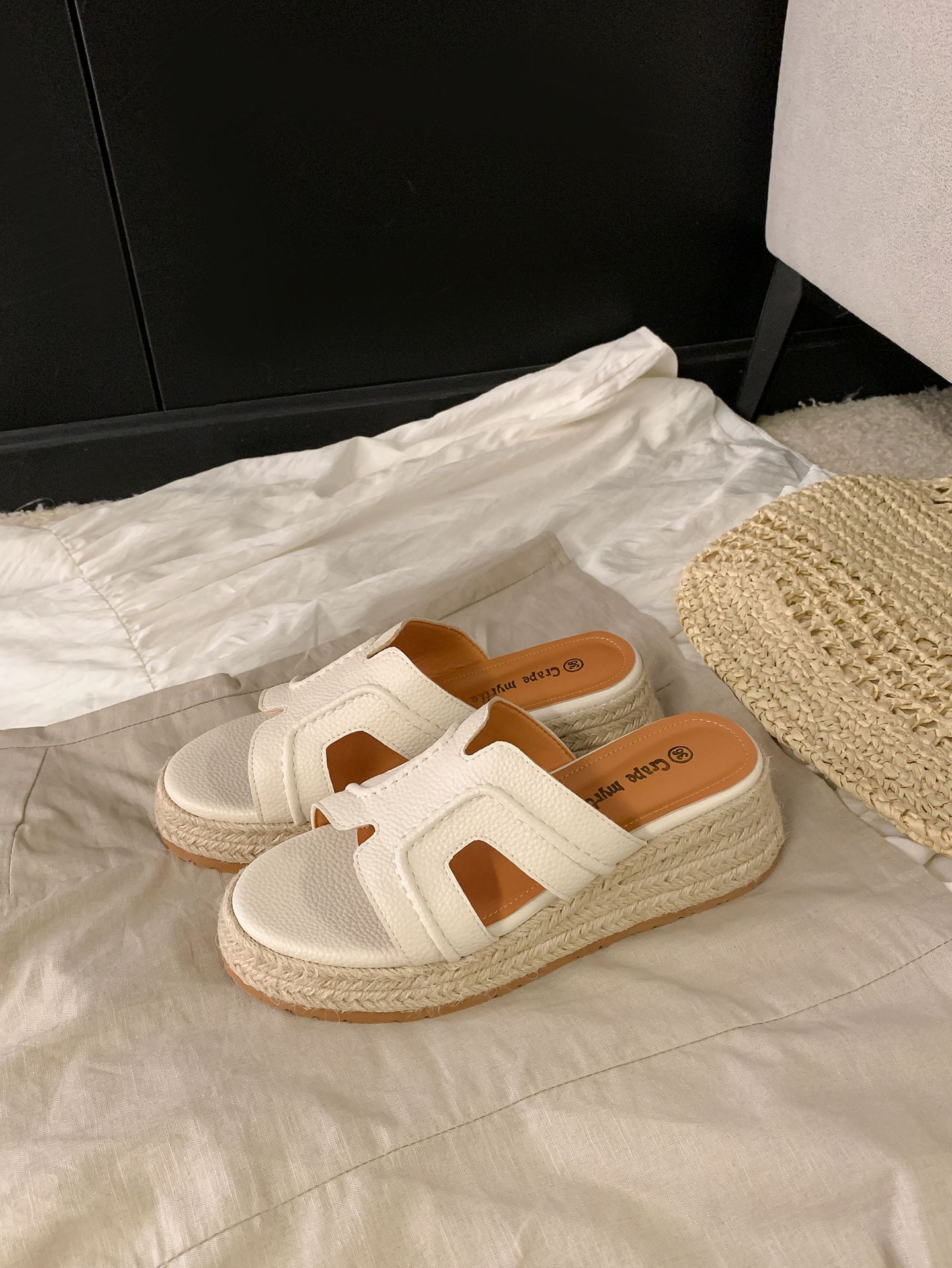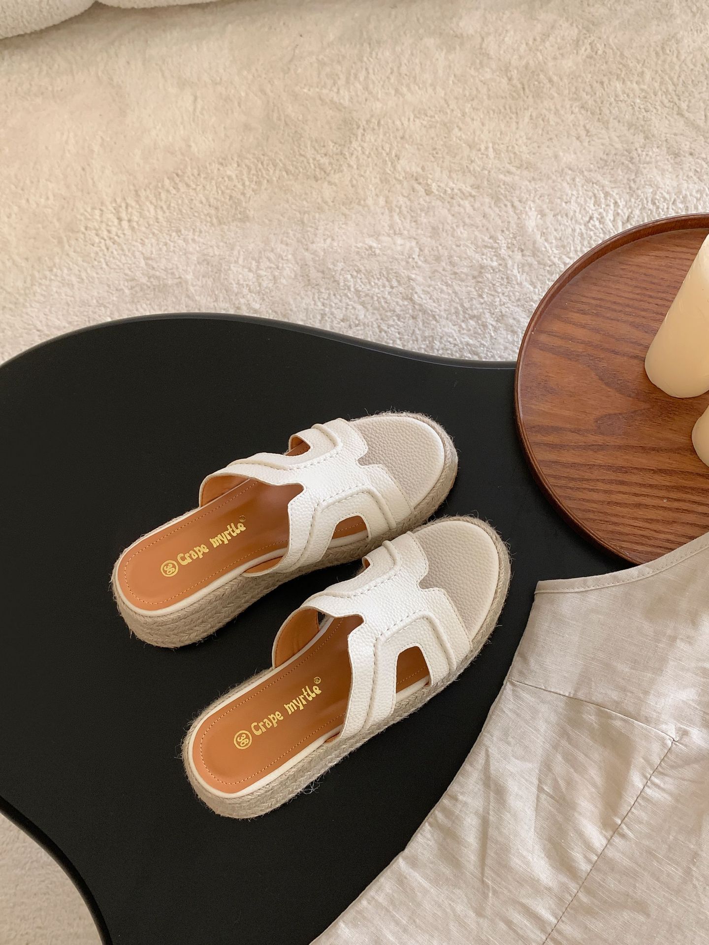 El nuevo estilo de verano de Grape Mom aumenta 6cm ~ Sandalias y pantuflas tejidas de cuña de plataforma retro literaria y artística