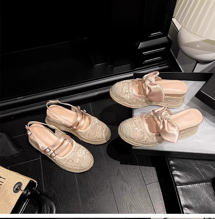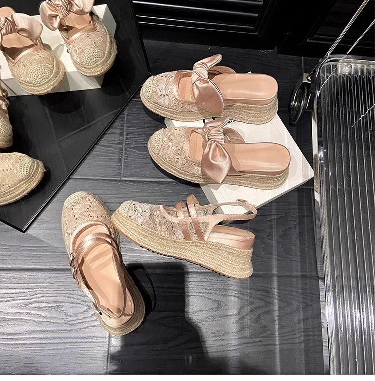 Piel de oveja versión 2025 nuevo verano Baotou sandalias mujer encaje malla hueco transpirable zapatos de plataforma zapatos de pescador tejido de paja