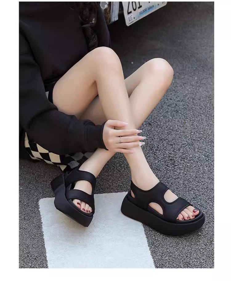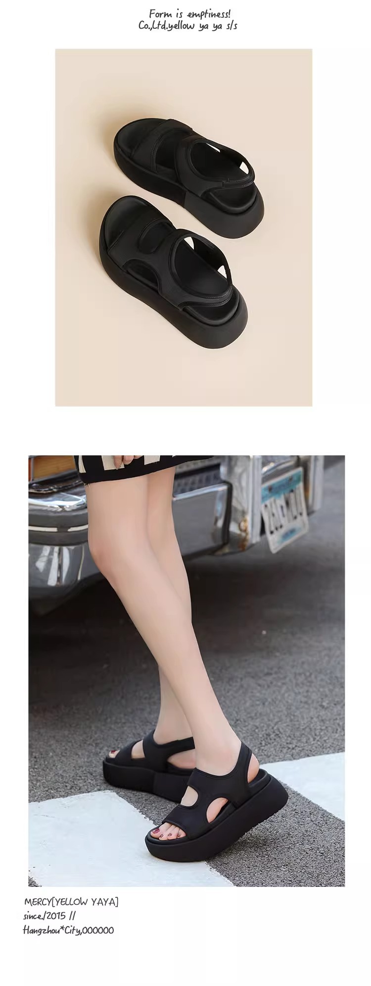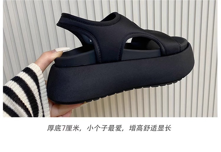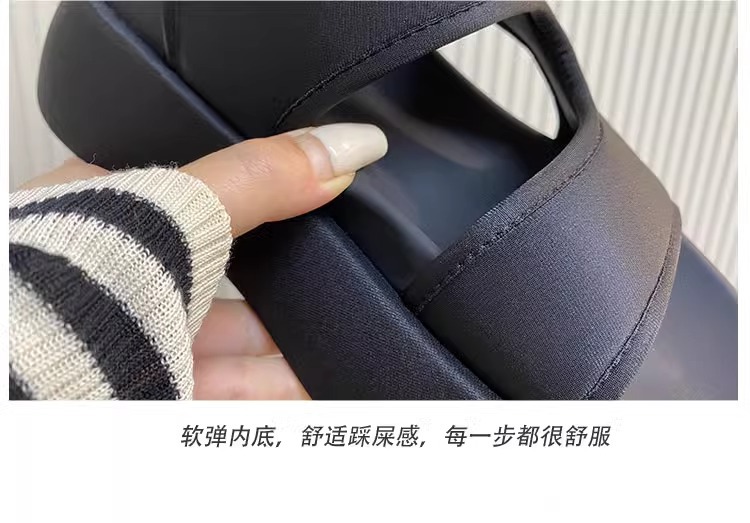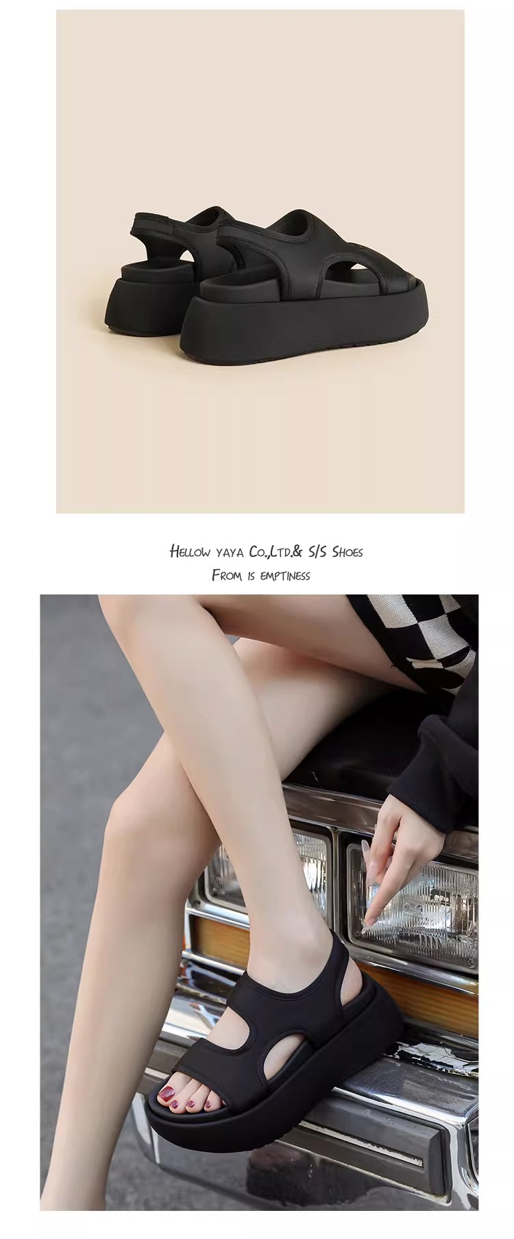 Sandálias de tacón alto de fondo grueso para mujeres en verano 2025, nuevo estilo simple de un pie elástico cómodo pequeño aumento de altura universal