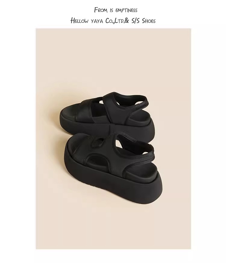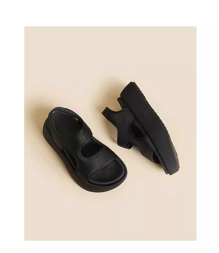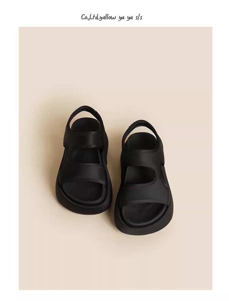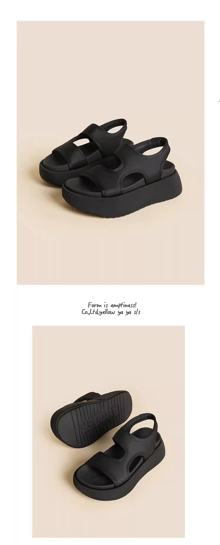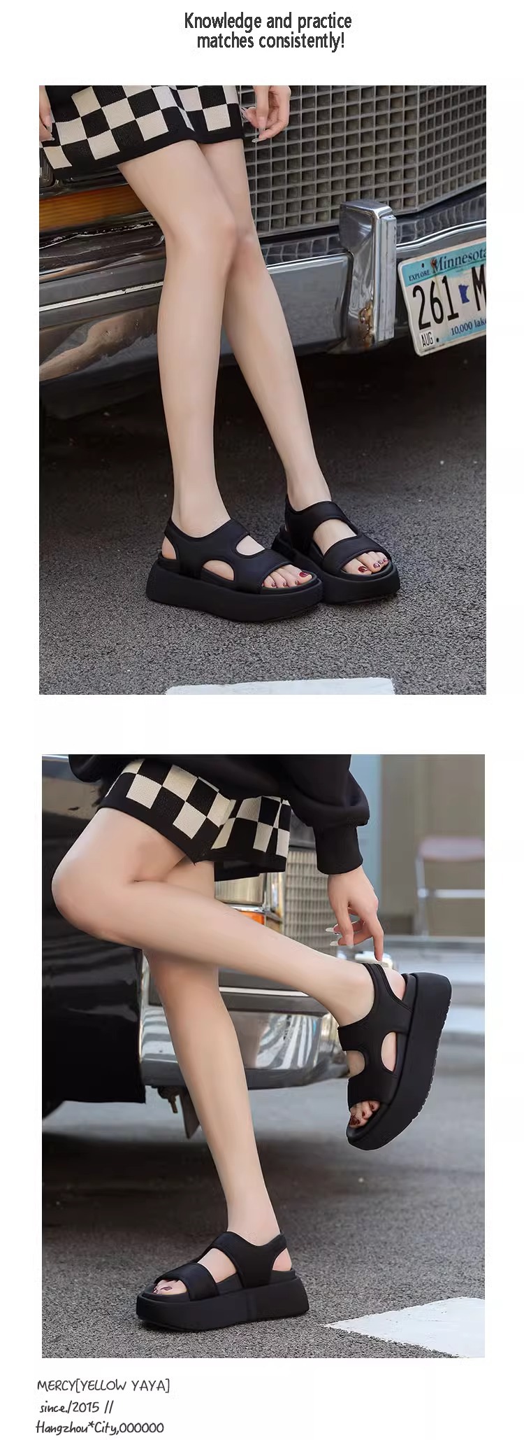 Sandálias de tacón alto de fondo grueso para mujeres en verano 2025, nuevo estilo simple de un pie elástico cómodo pequeño aumento de altura universal