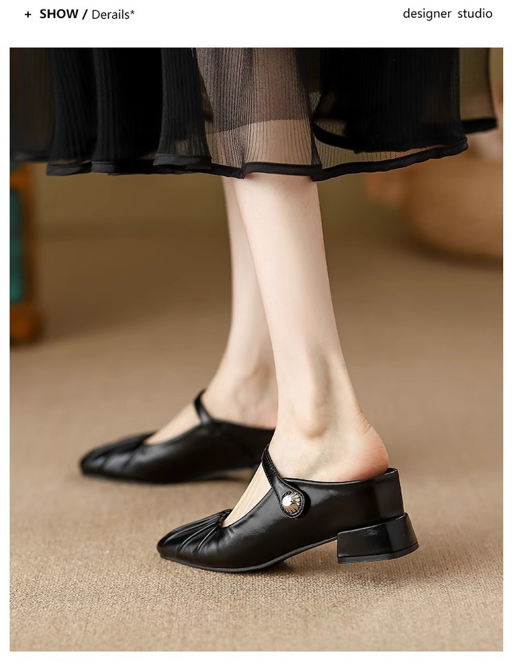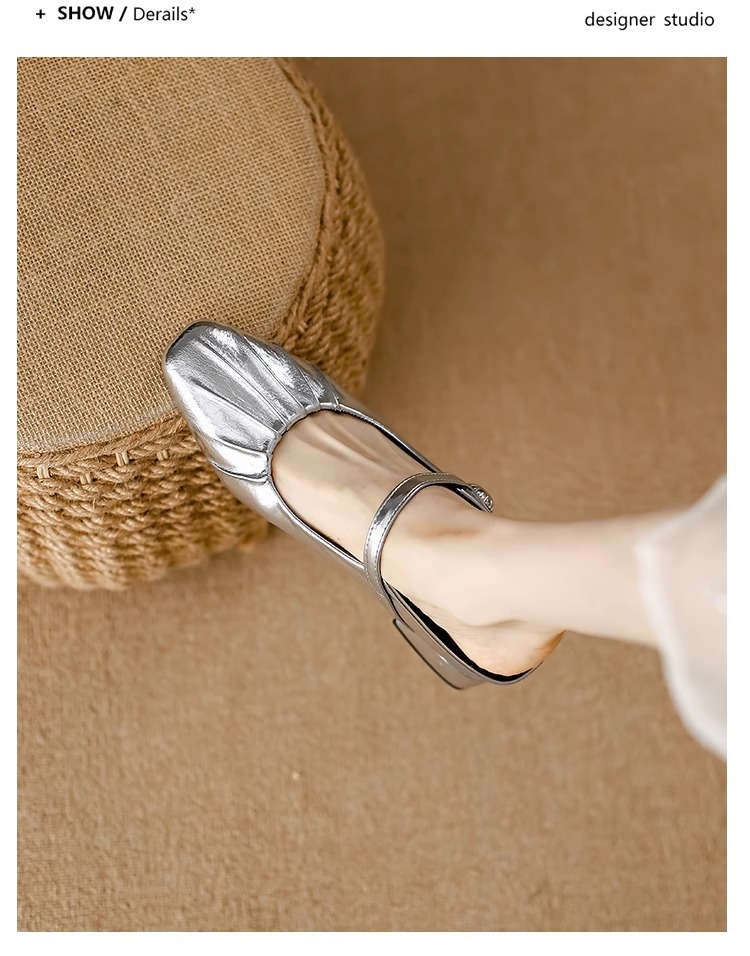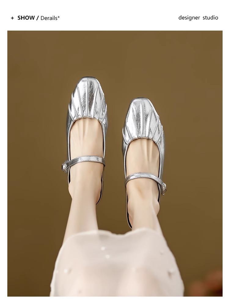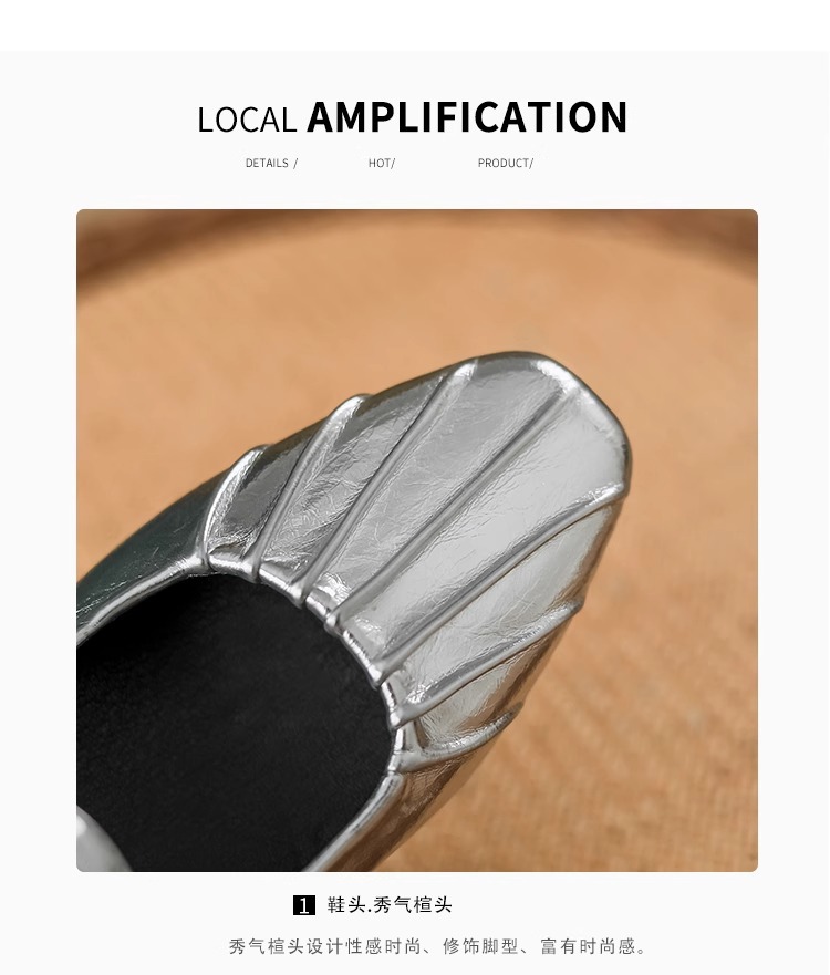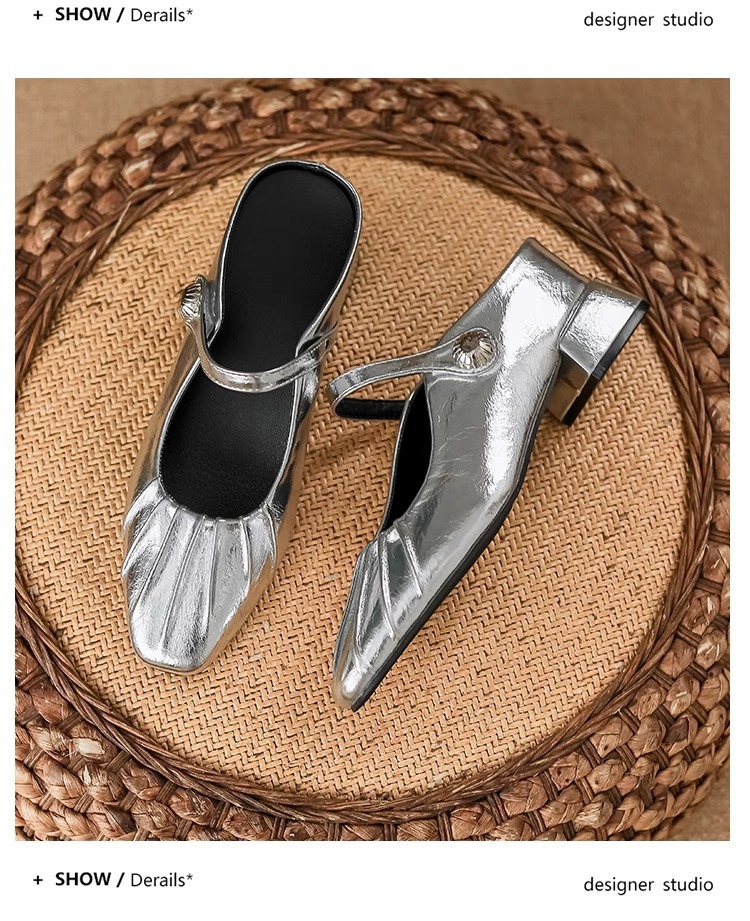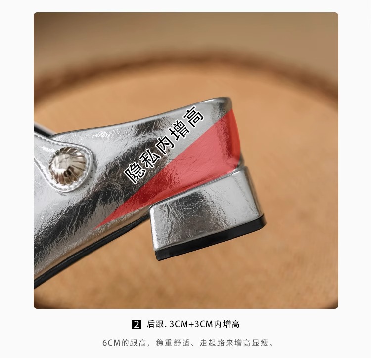 Sandalias de media arrastre de puntera plateada de 7cm de altura interior para mujer 2025 nueva moda de verano tacones gruesos zapatos individuales