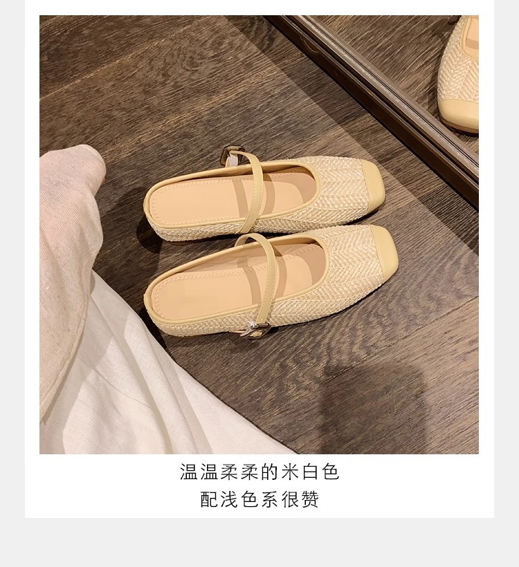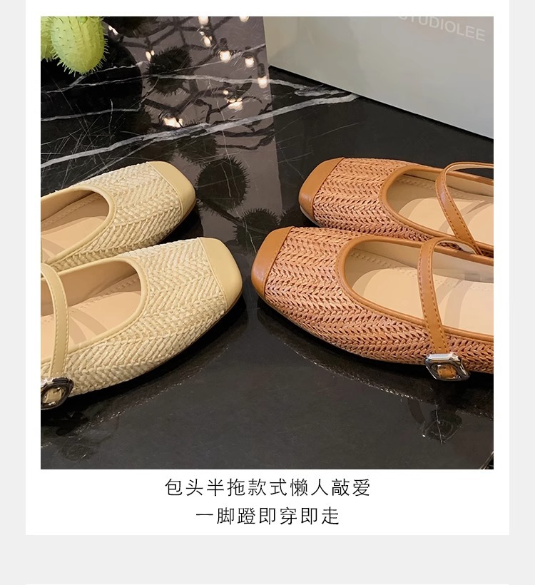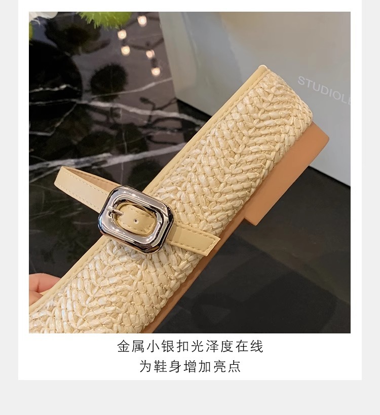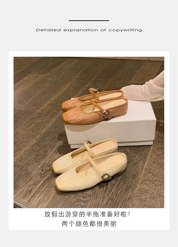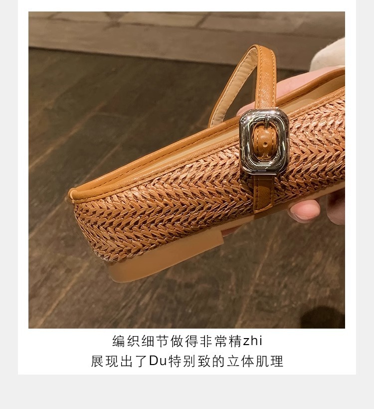 La madre de la uva aumenta 5cm en verano ~ Sandalias de cabeza cuadrada retro tejido de paja estilo vacacional perezoso medio arrastrando mujer verano