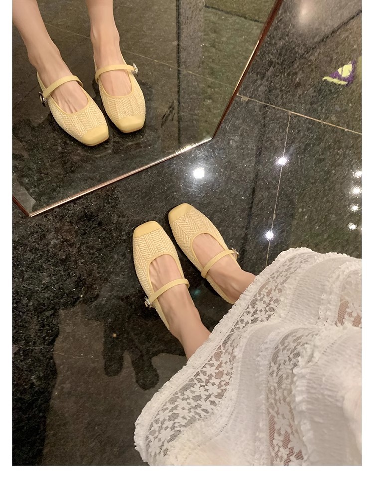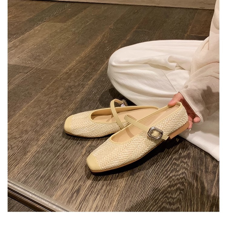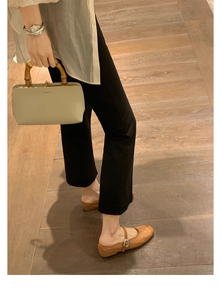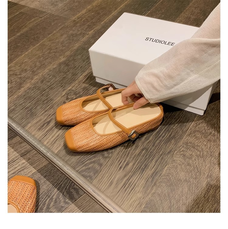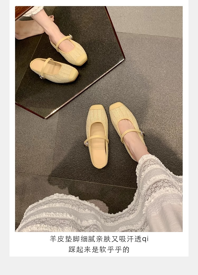 La madre de la uva aumenta 5cm en verano ~ Sandalias de cabeza cuadrada retro tejido de paja estilo vacacional perezoso medio arrastrando mujer verano