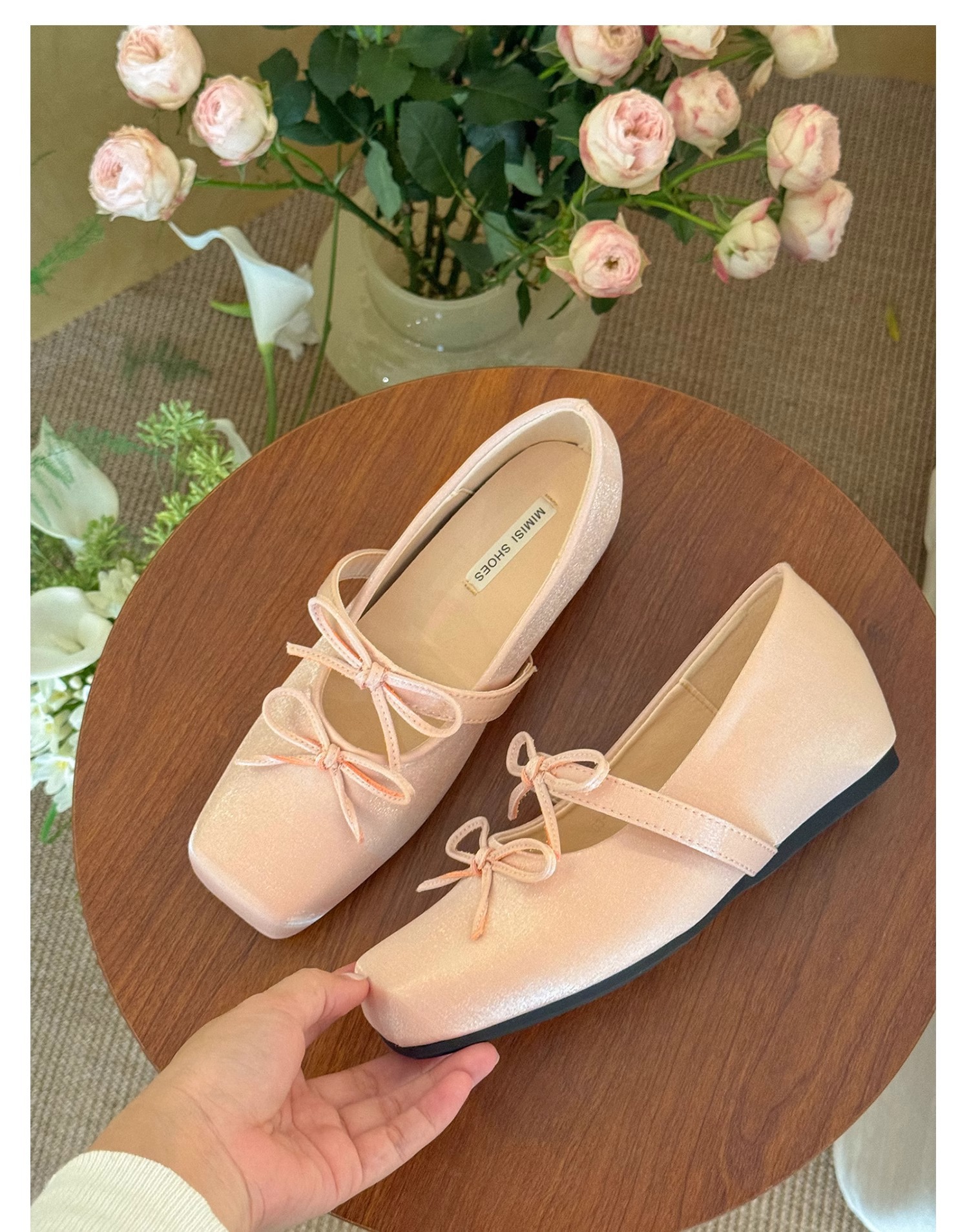 61oniiii "polvo de cerezo crema" la sensación de la niña arco dentro de la altura de los zapatos de una sola mujer superficial zapatos marizhen