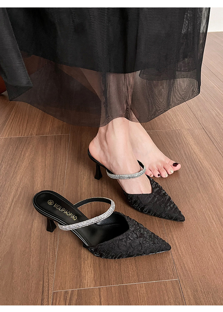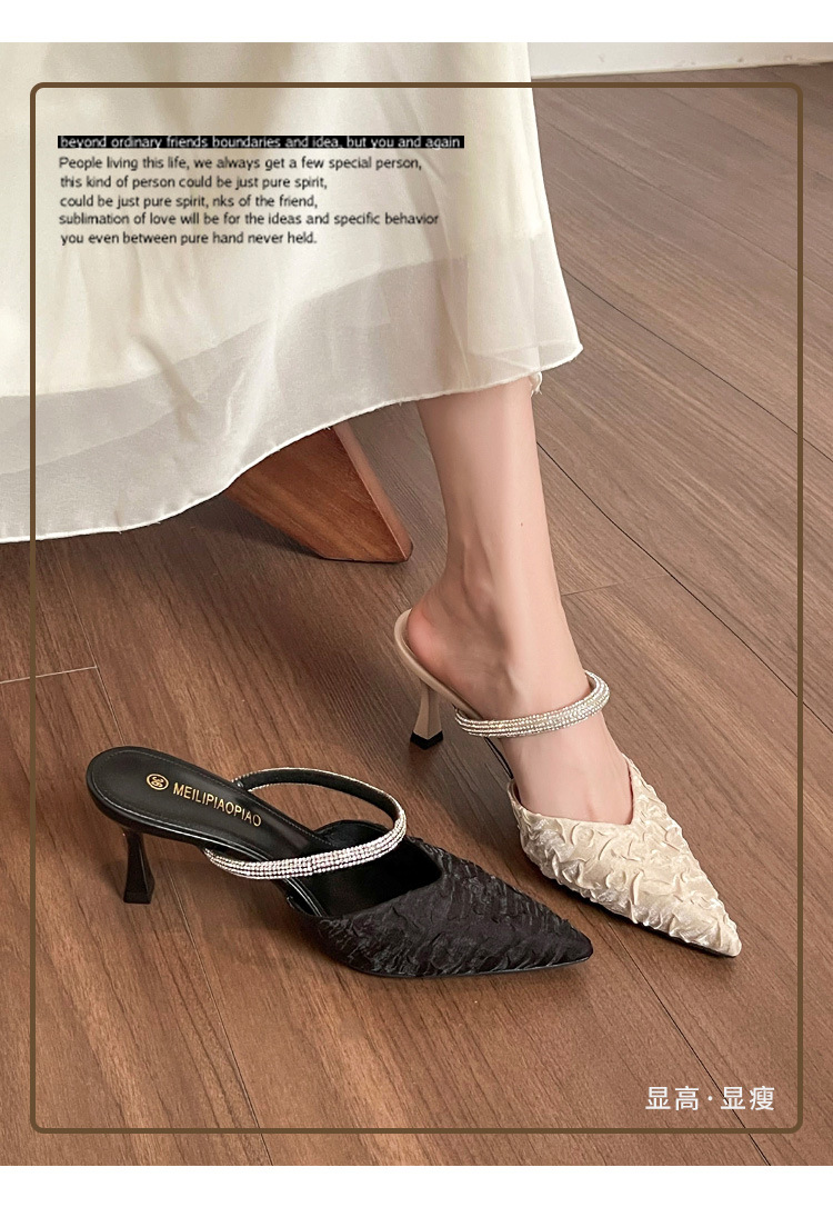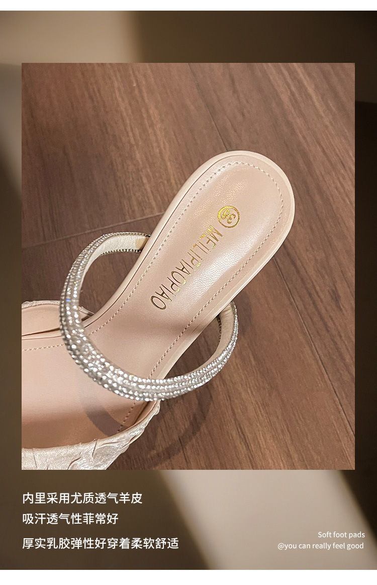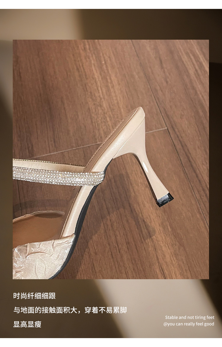 Medio trapeador de zapatos de tacón alto temperamento 2025 nuevas sandalias de diamantes de imitación estilo hada pantuflas mujeres de verano
