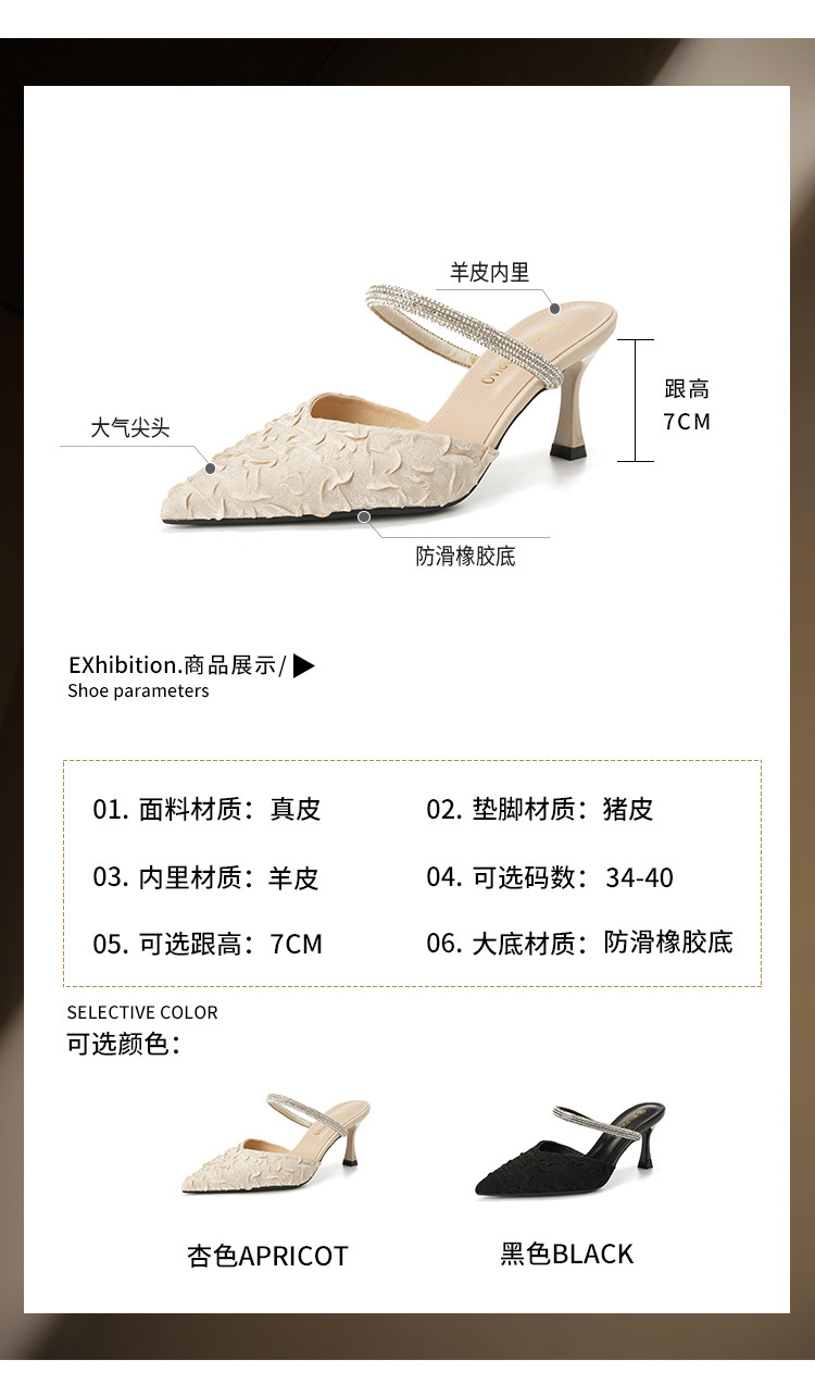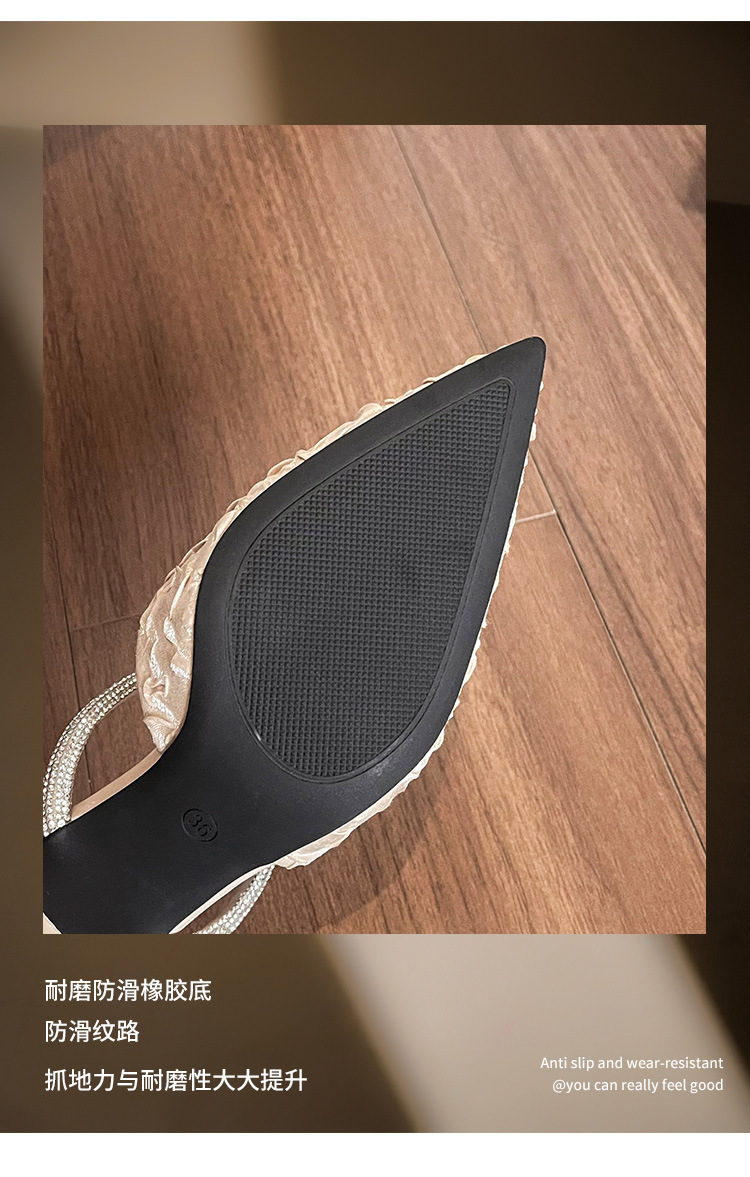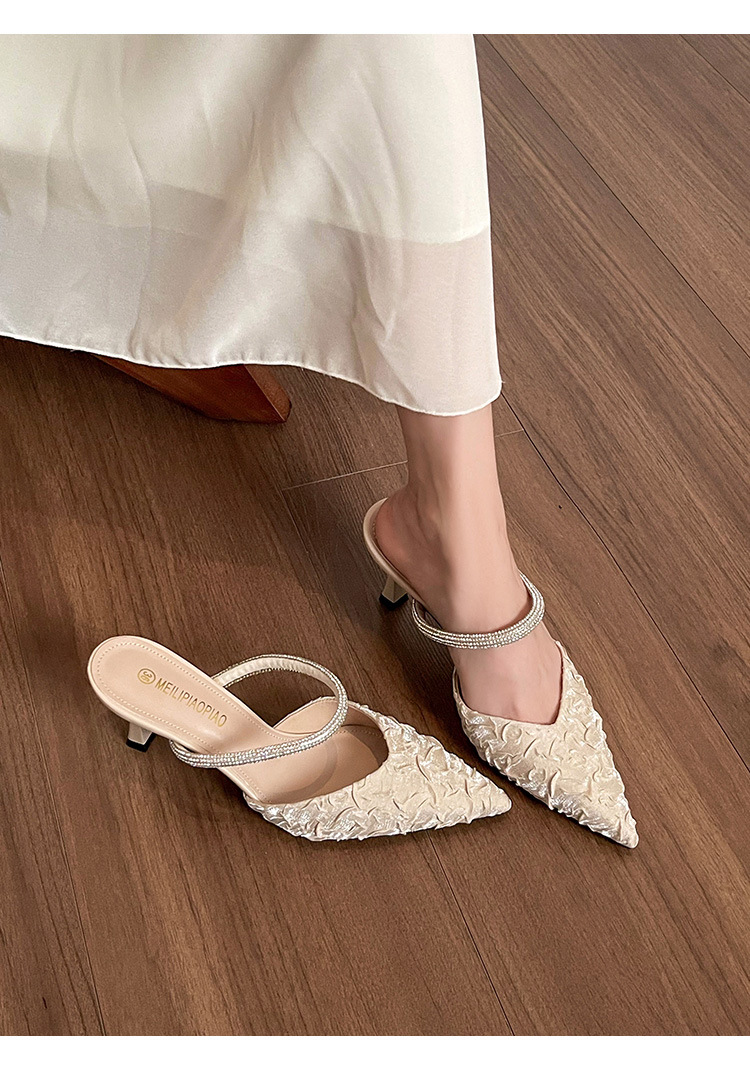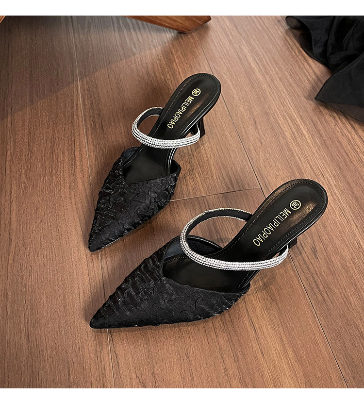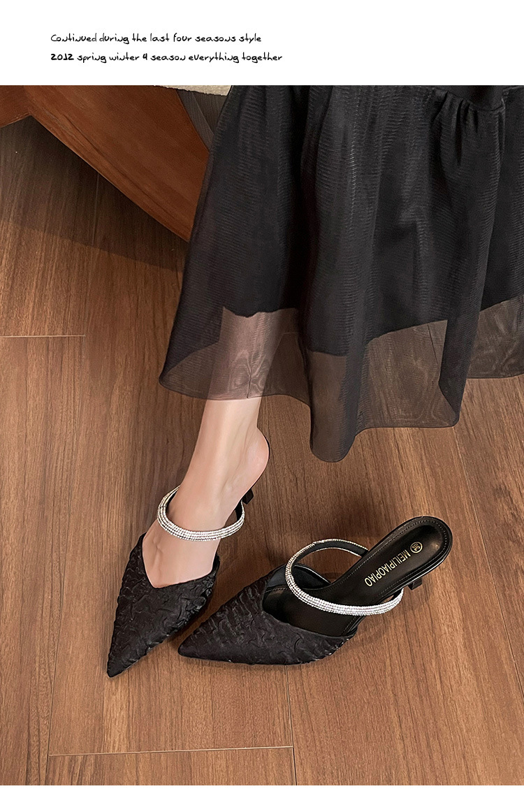 Medio trapeador de zapatos de tacón alto temperamento 2025 nuevas sandalias de diamantes de imitación estilo hada pantuflas mujeres de verano