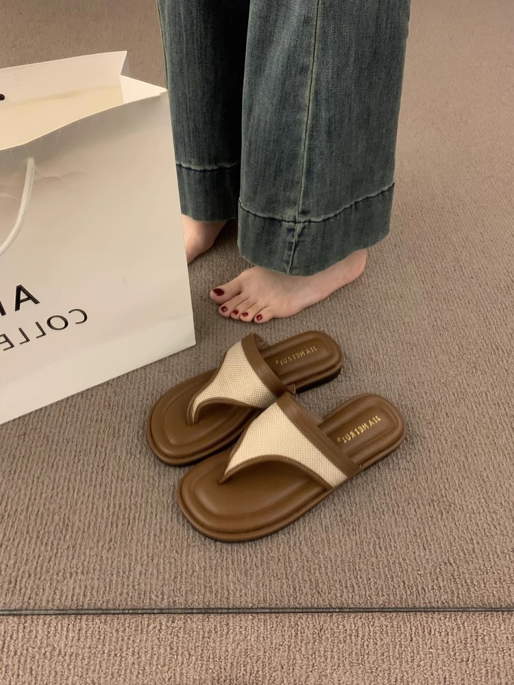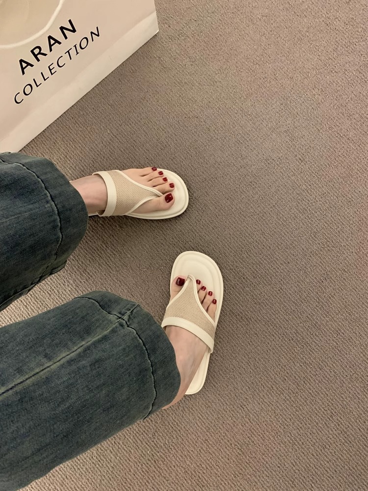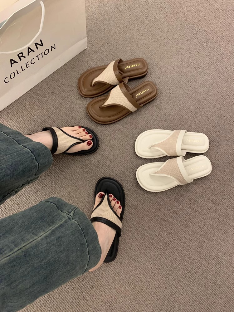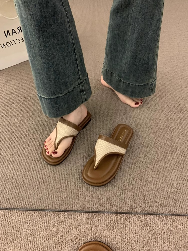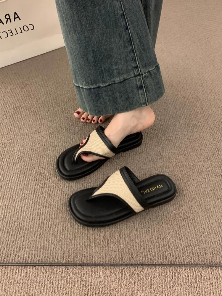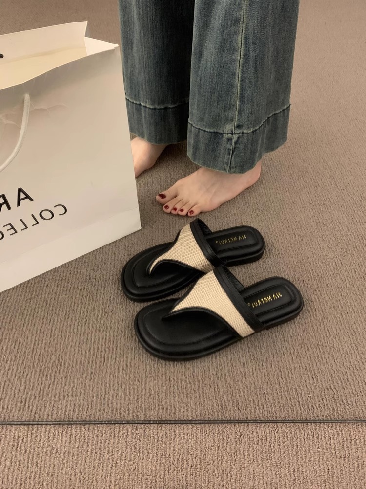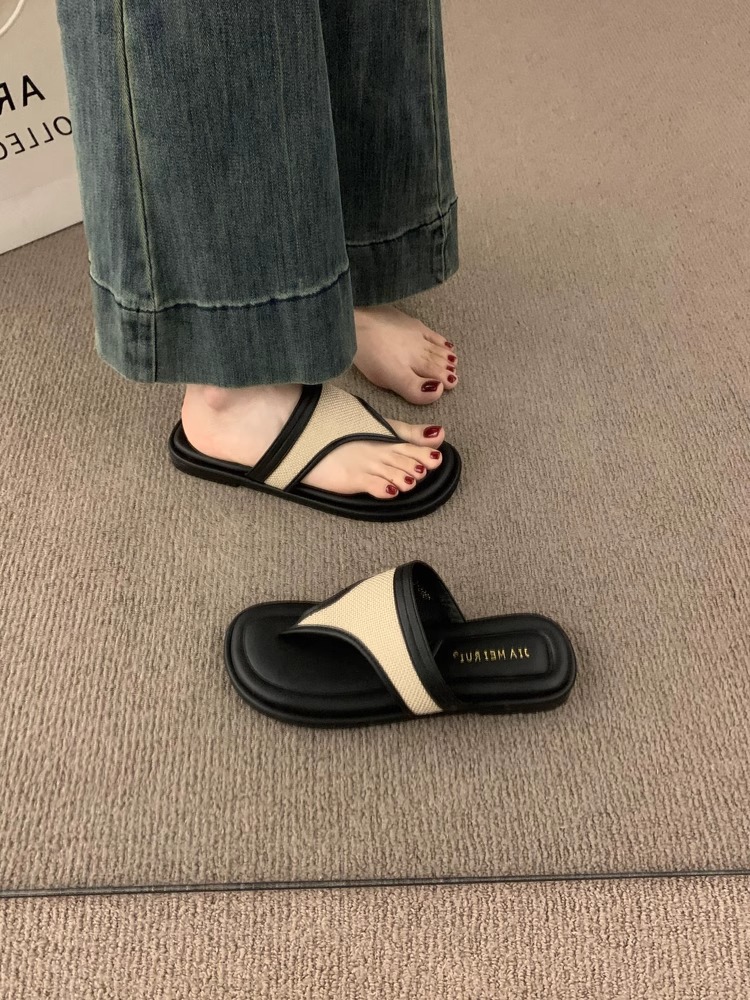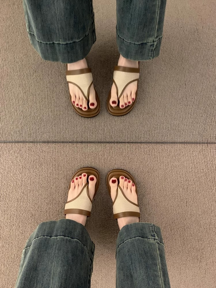Sandalias y zapatillas chanclas planas negras estilo hada coreana para mujer en verano 2025 nuevos zapatos de playa casuales junto al mar