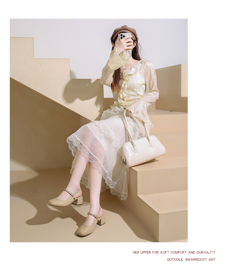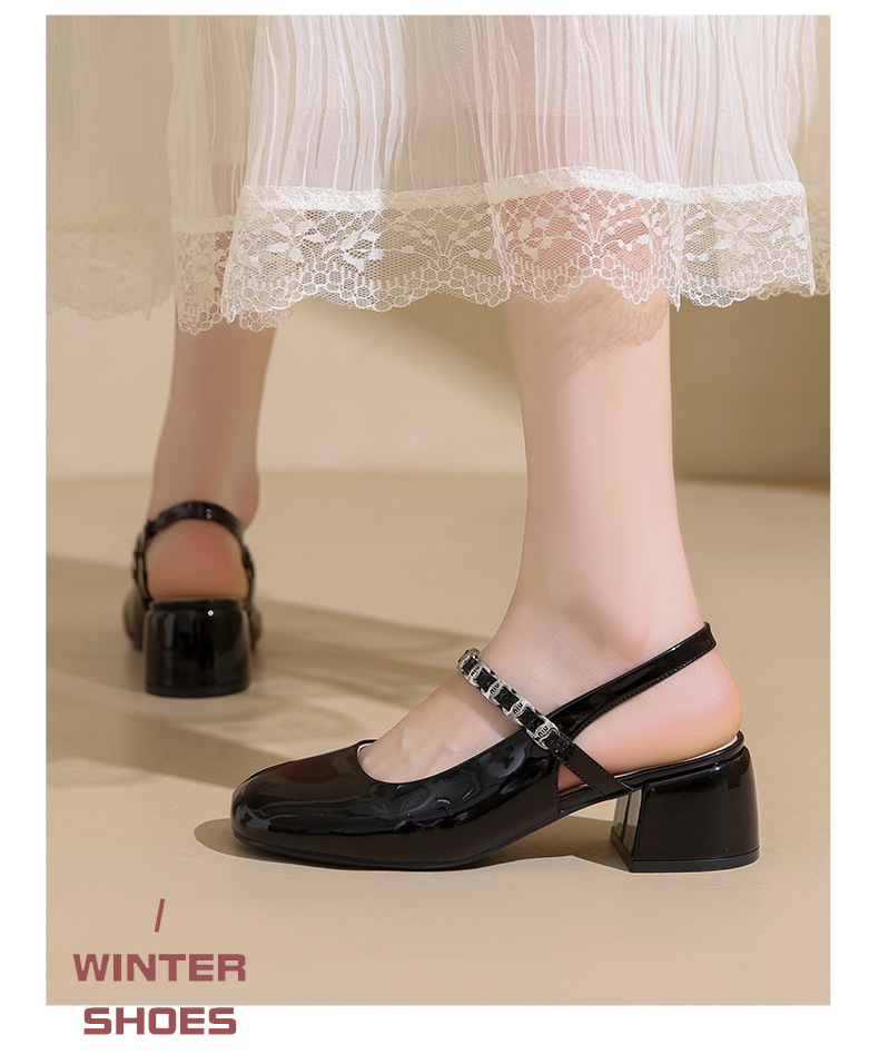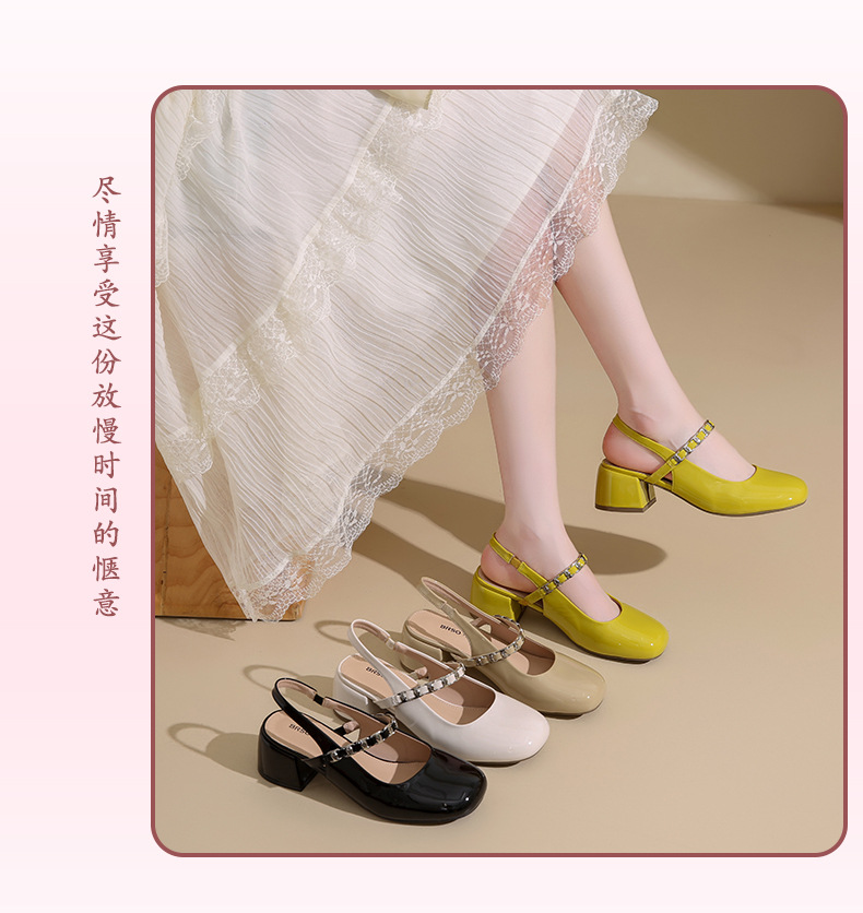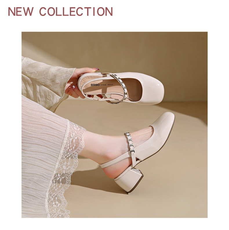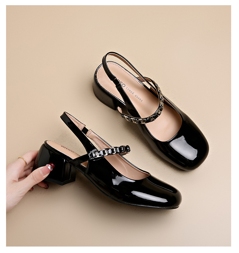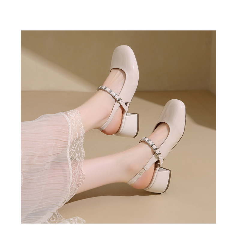 Zapatos Lady mismo estilo temperamento francés Mary Jane zapatos individuales mujer tacón grueso Baotou sandalias 2025 verano nuevos tacones altos