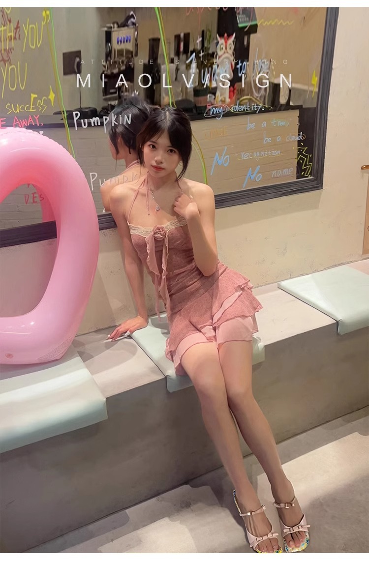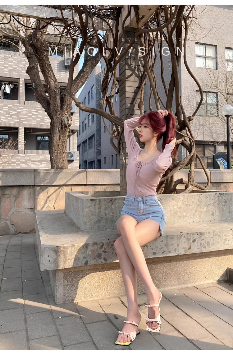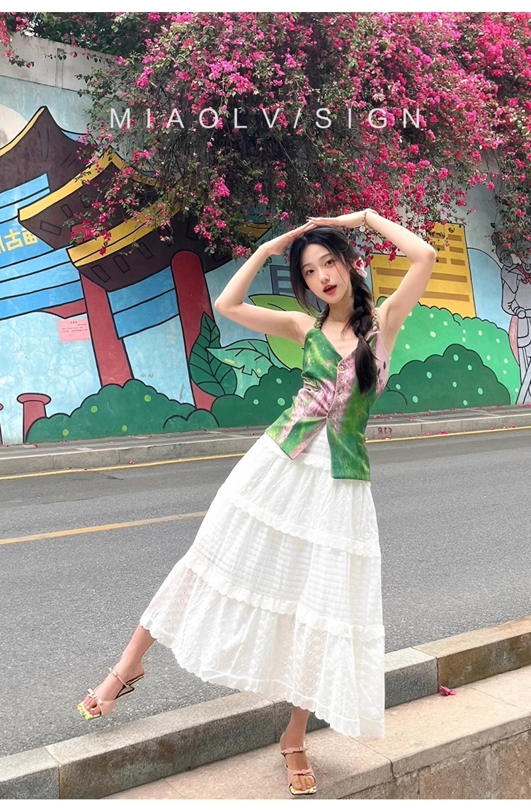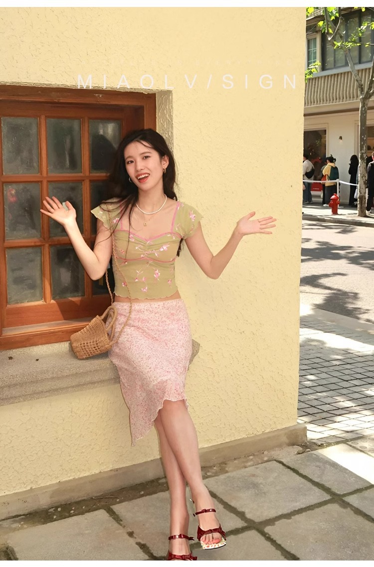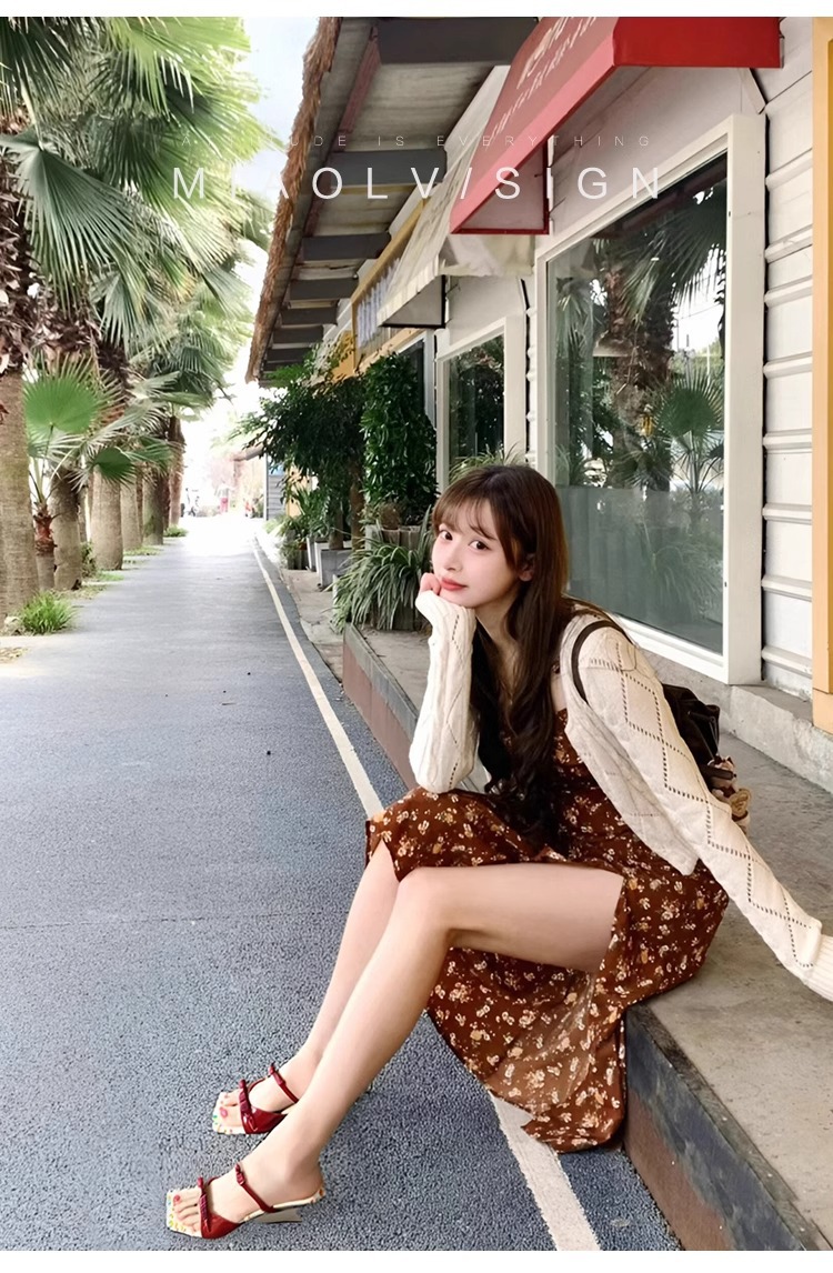 "Miao Lu" pequeña flor rota ~ Sandalias de tacón grueso de estilo dulce para mujer
