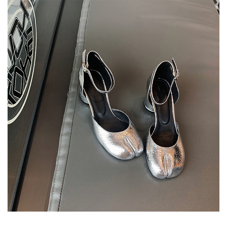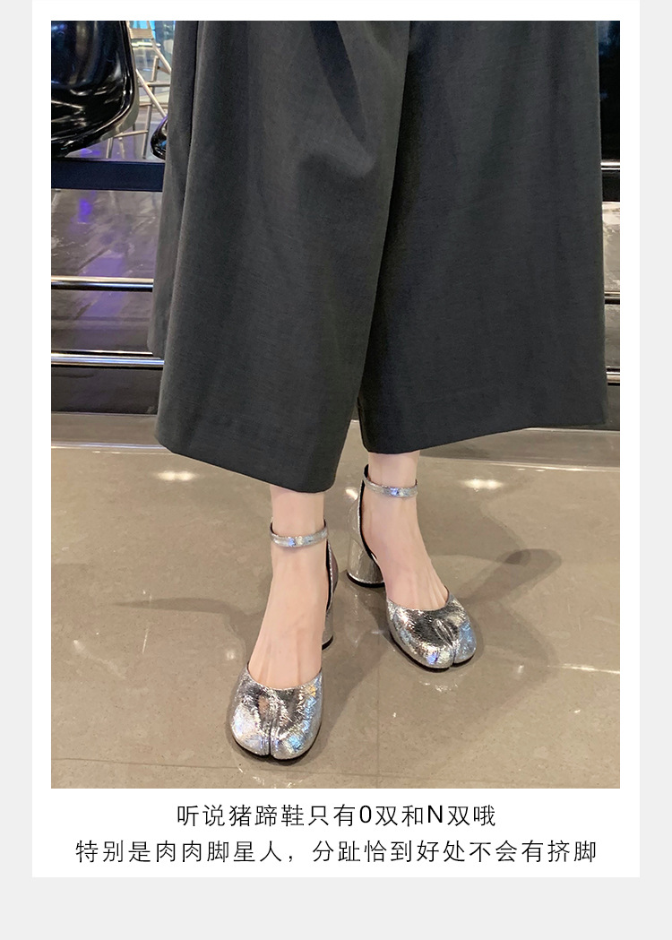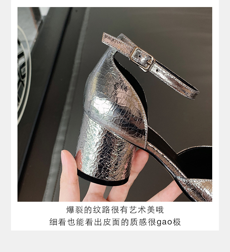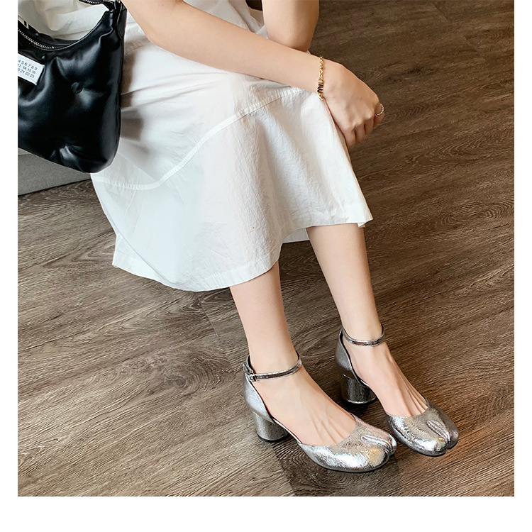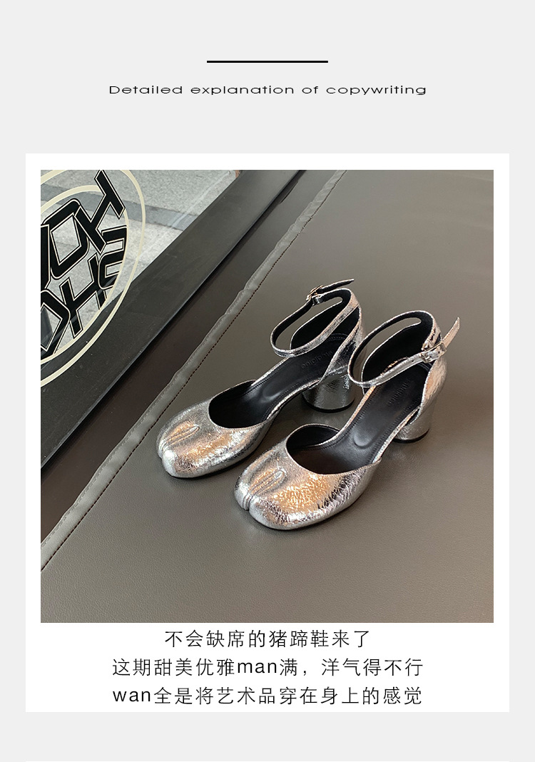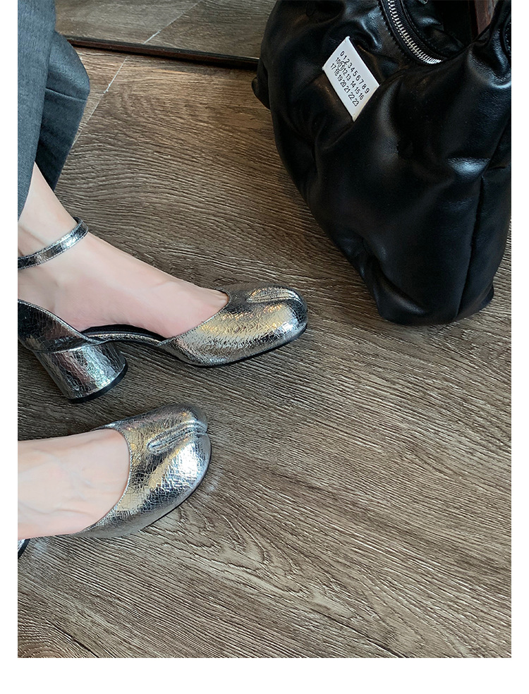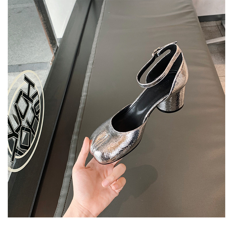 Versión de piel de oveja ~ Mary Jane Tacones altos para mujer 2024 nuevos zapatos de plata de tacón grueso zapatos de manitas de cerdo con punta redonda y boca baja