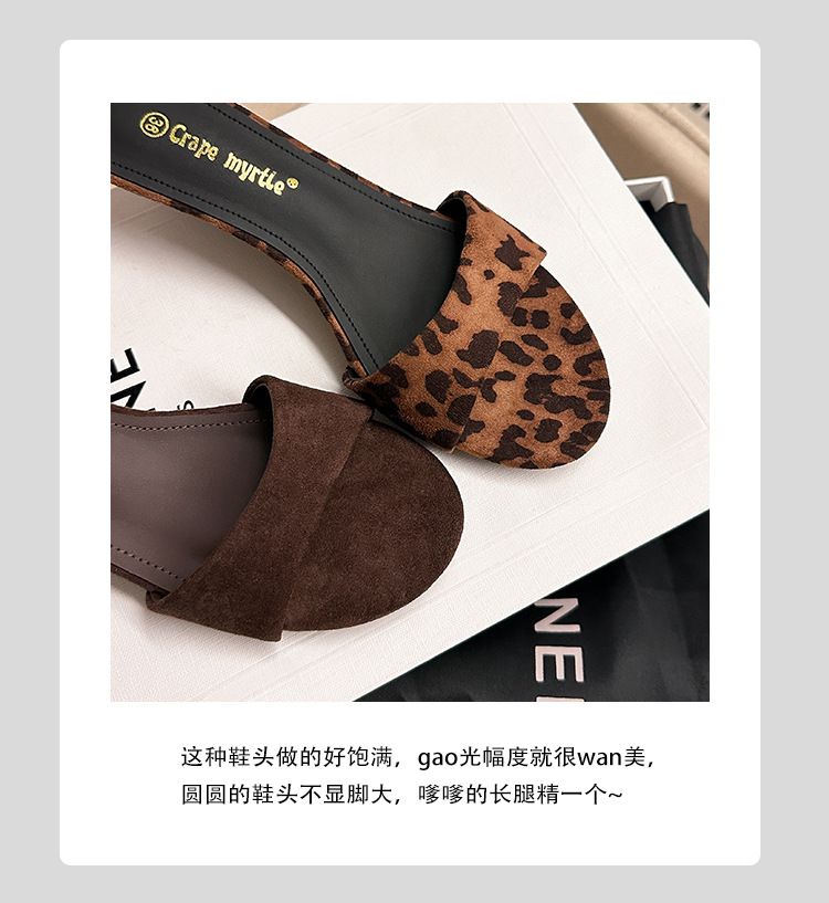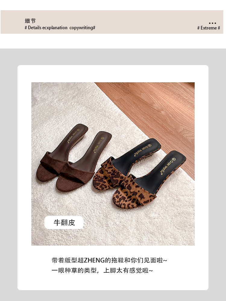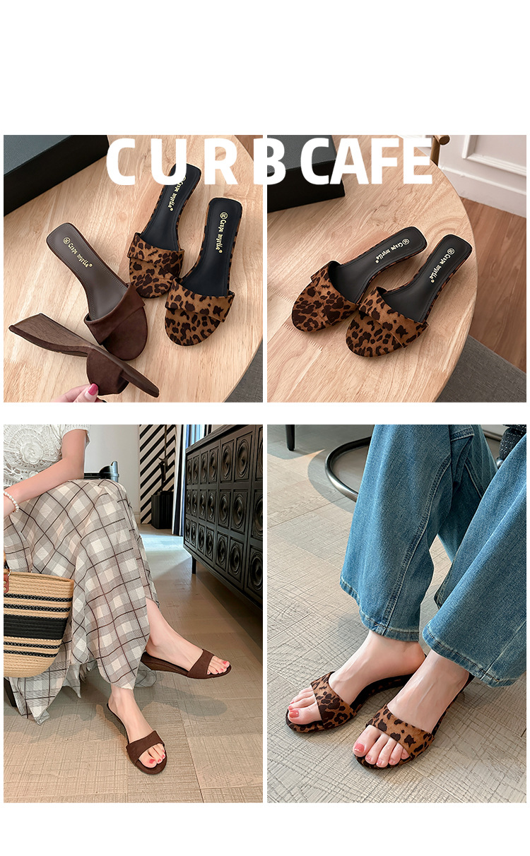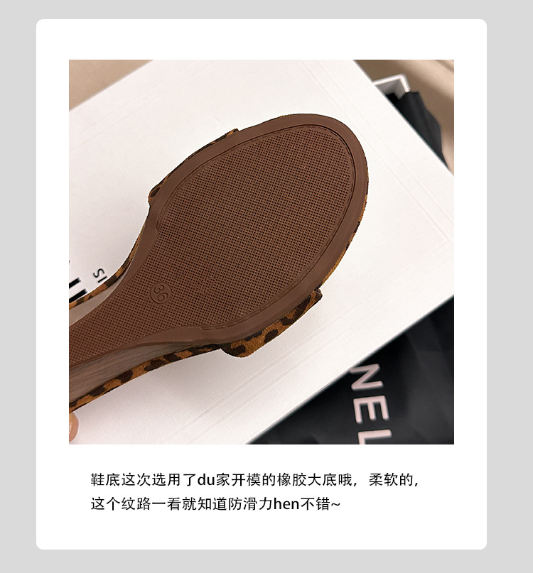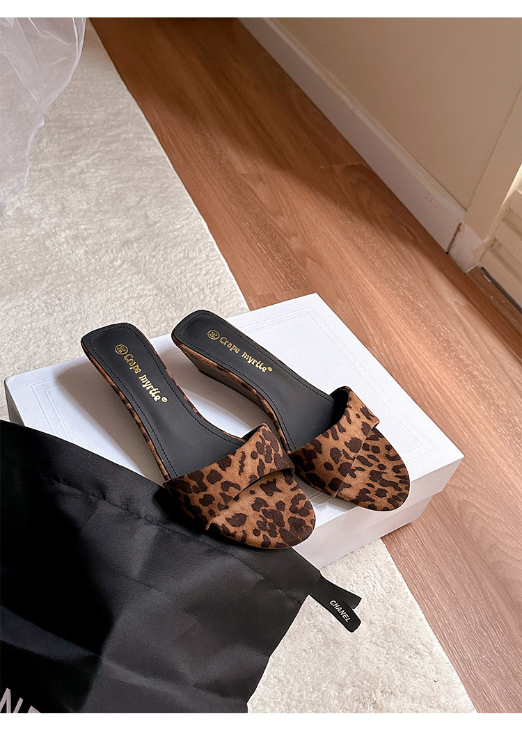 2025 verano nuevo estilo pantuflas de cuña con estampado de leopardo, tacones altos para mujer, temperamento francés versátil, sandalias y pantuflas