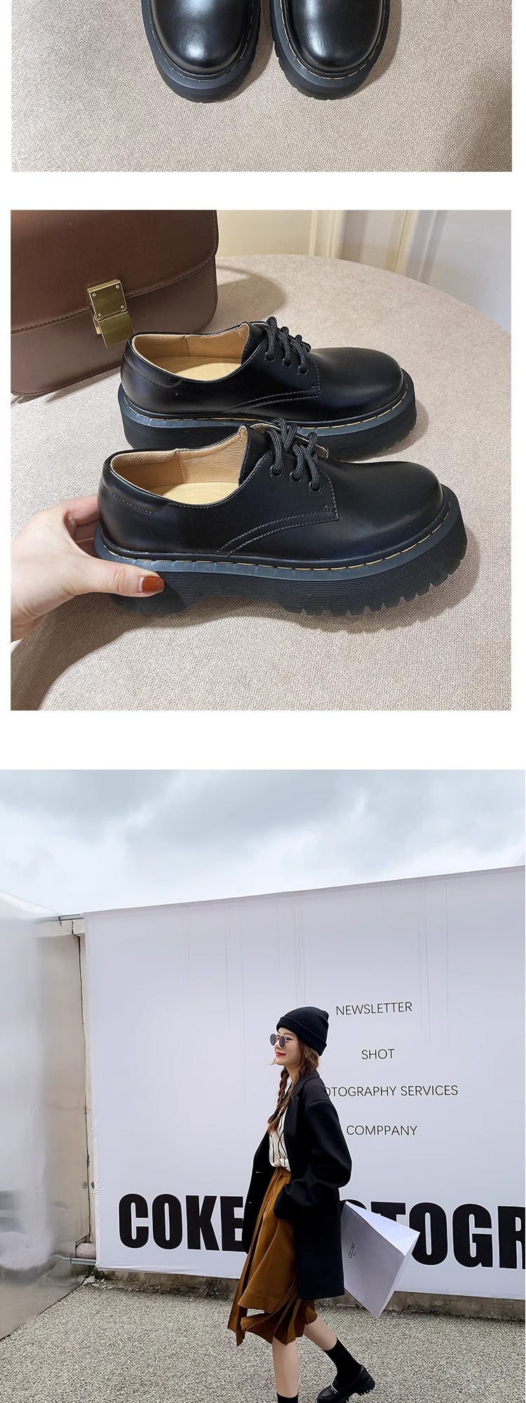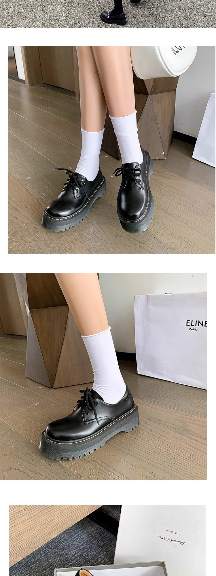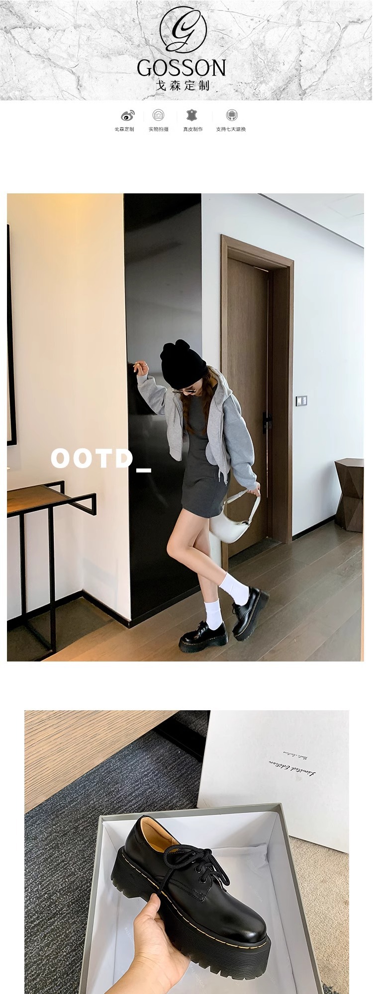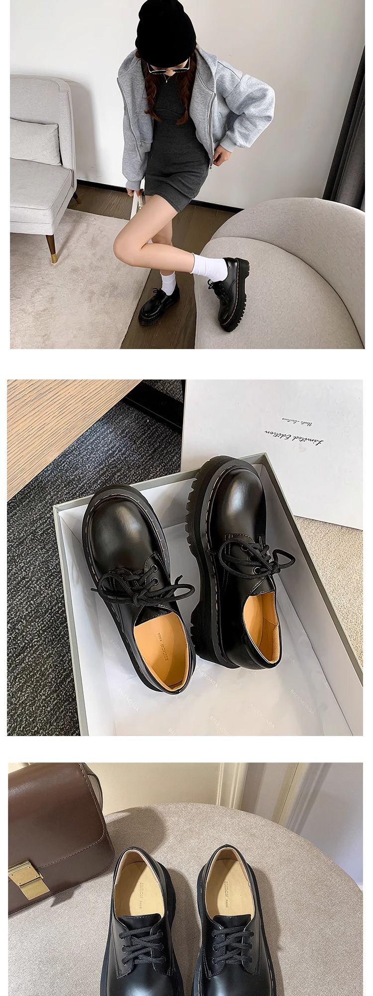 Yang mi mismo estilo suave chica negro JK zapatos de cuero de las mujeres primavera nuevo estilo británico punta redonda con cordones de la plataforma altura aumento mocasines
