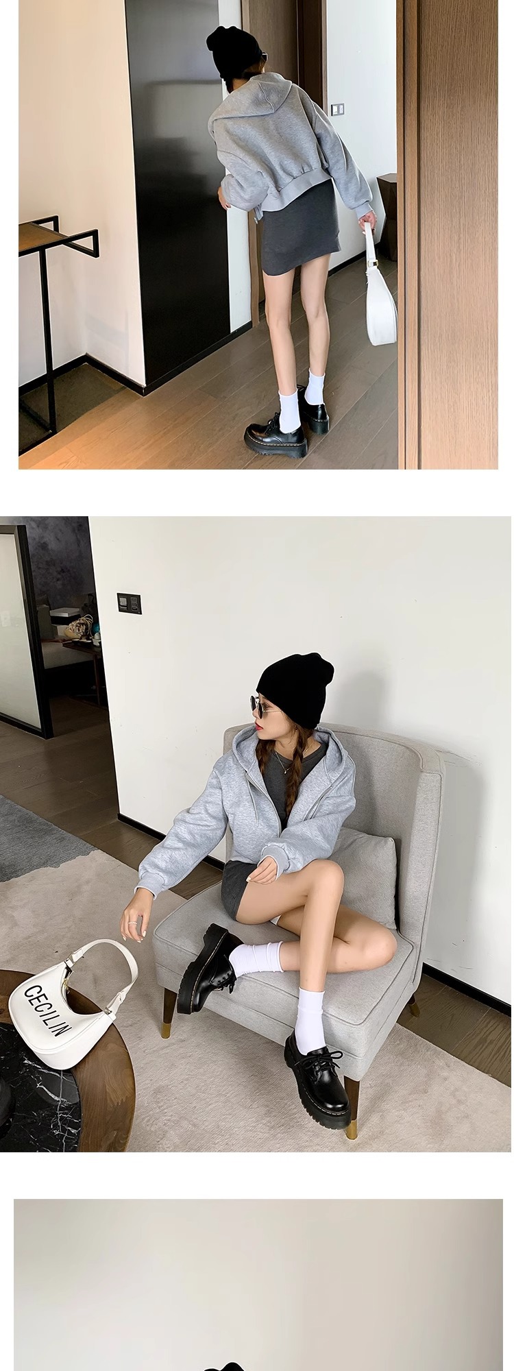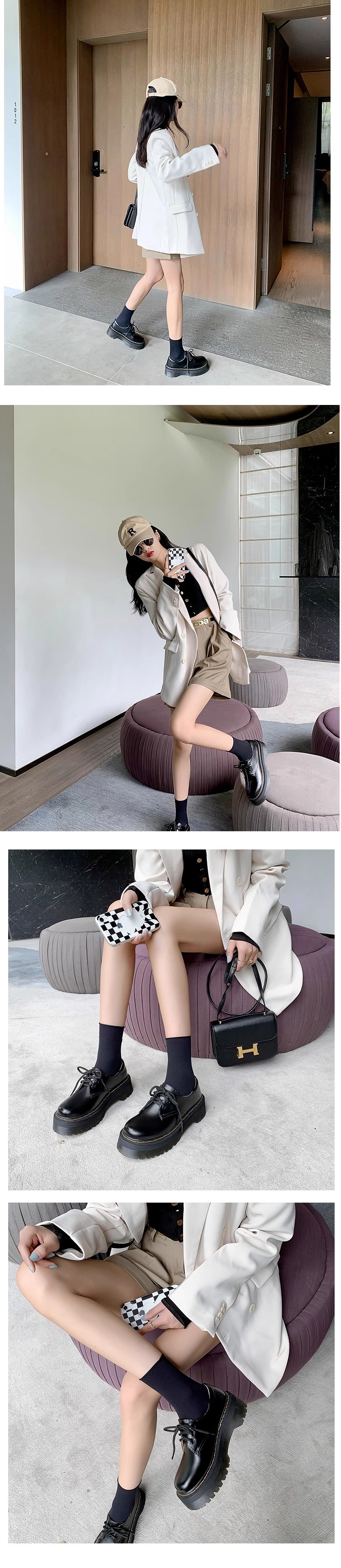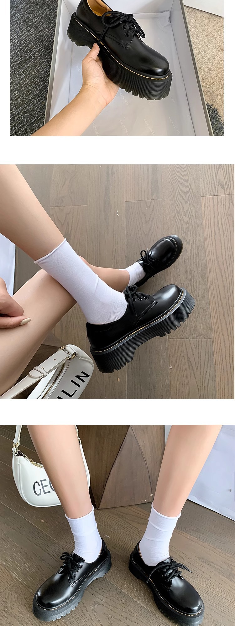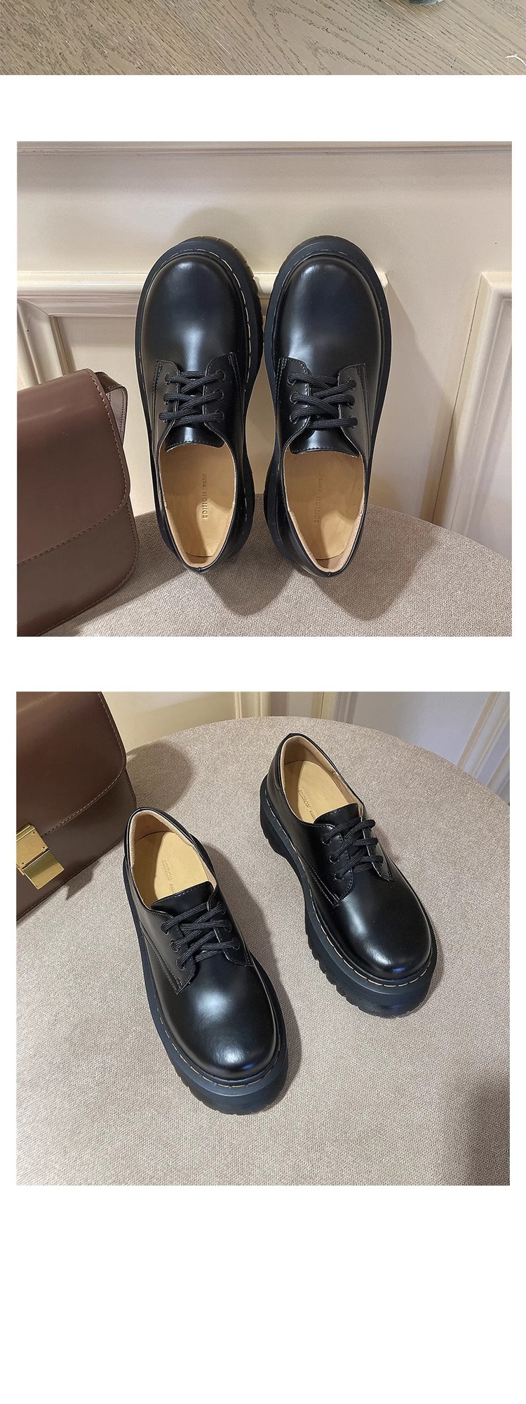 Yang mi mismo estilo suave chica negro JK zapatos de cuero de las mujeres primavera nuevo estilo británico punta redonda con cordones de la plataforma altura aumento mocasines