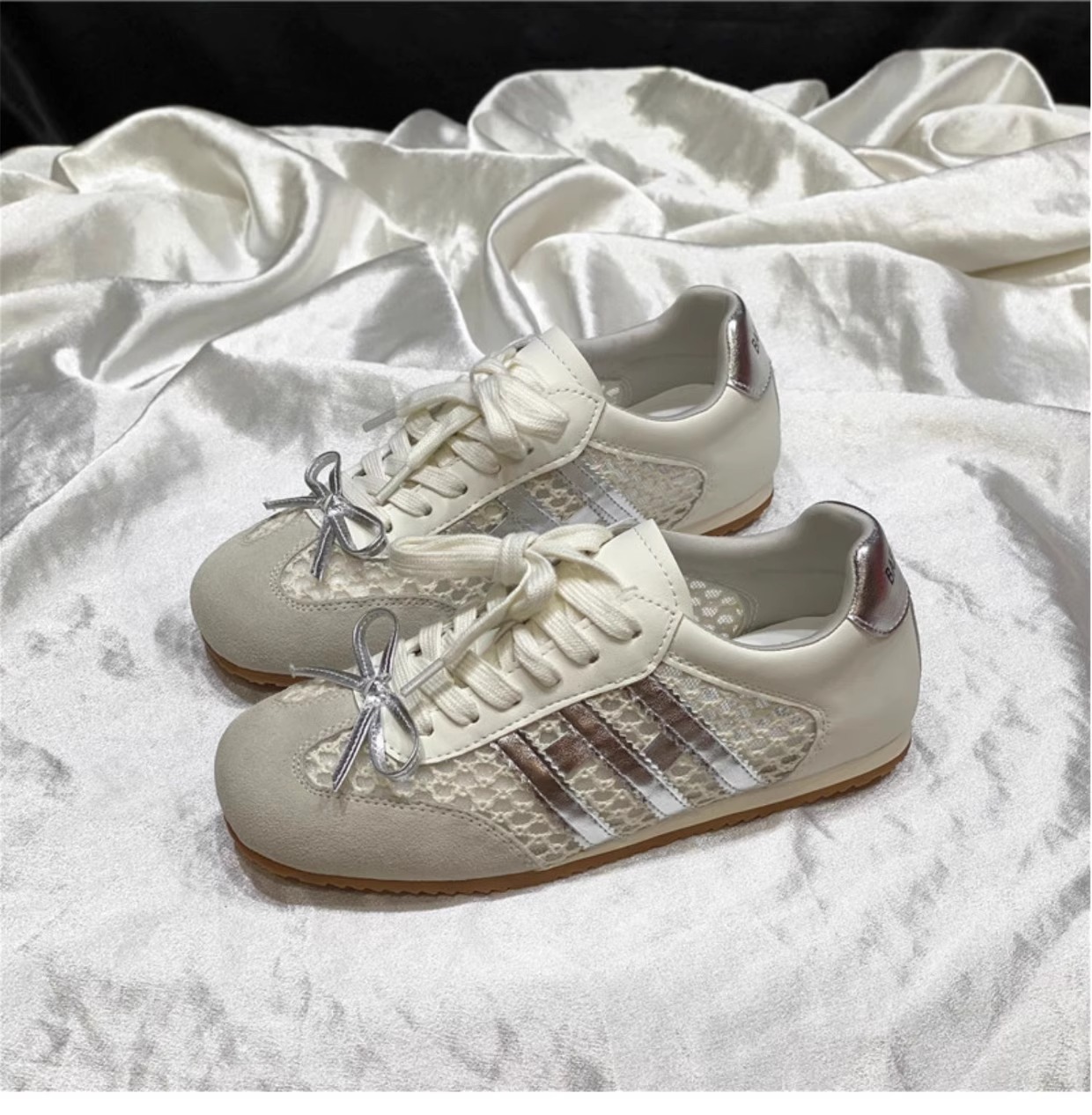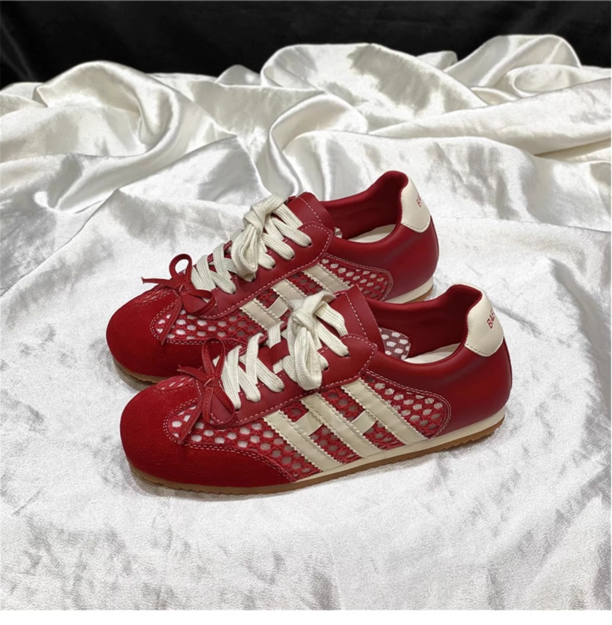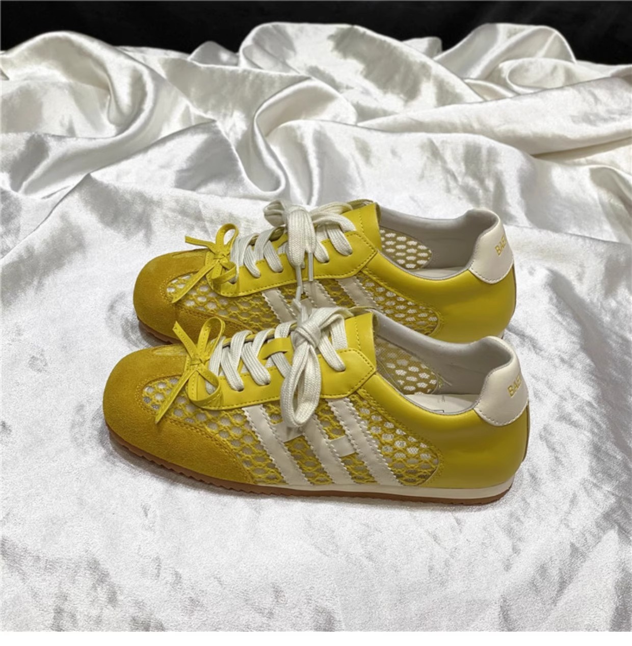 Los primeros zapatos casuales deportivos de cuero con superficie de malla transpirable estilo antiguo y explosivo para mujer 2025 verano nuevo estilo ligero y plano zapatos de red de entrenamiento alemán