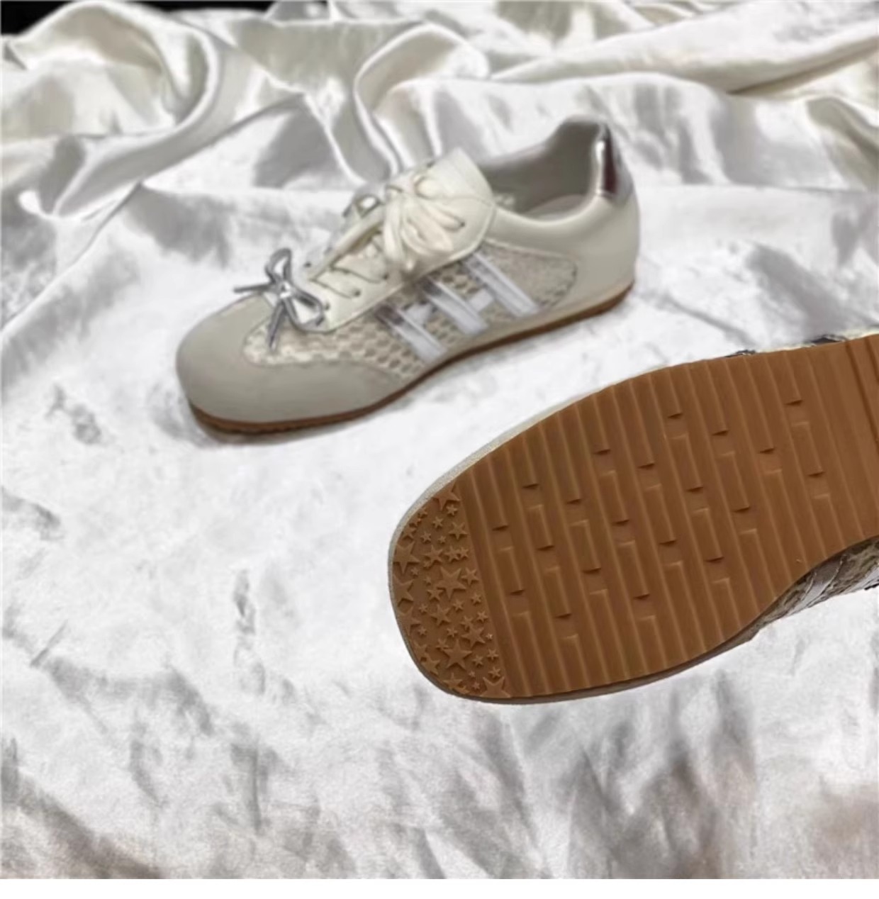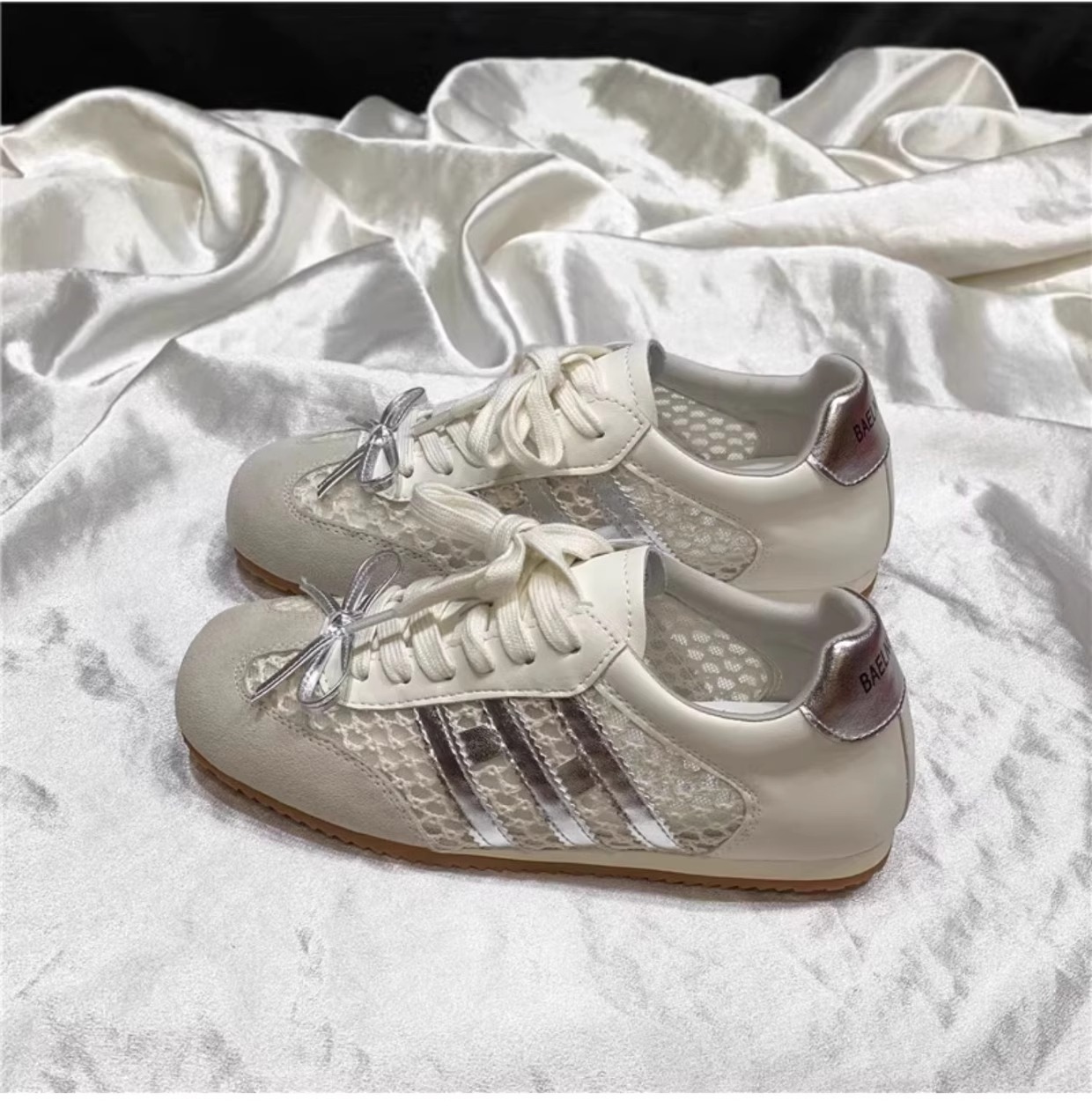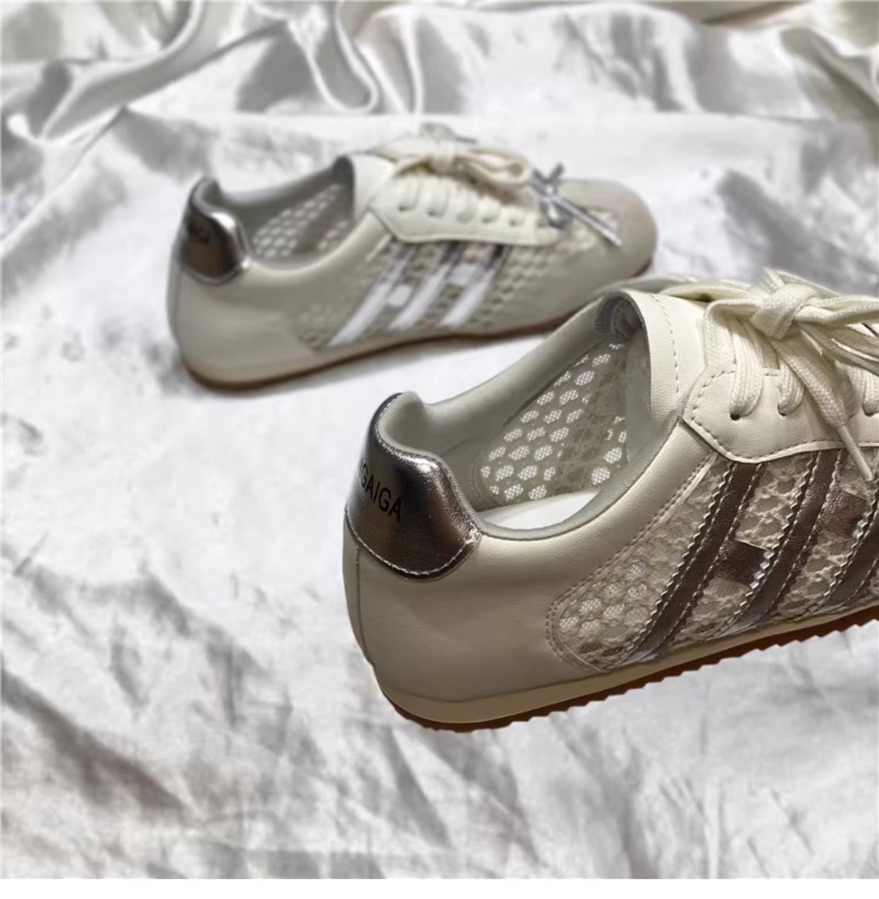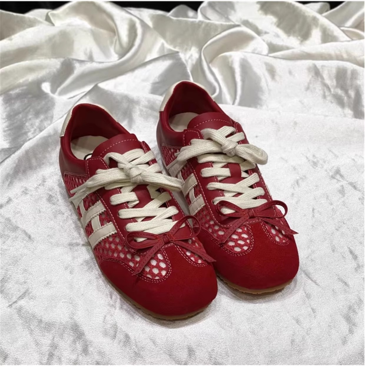 Los primeros zapatos casuales deportivos de cuero con superficie de malla transpirable estilo antiguo y explosivo para mujer 2025 verano nuevo estilo ligero y plano zapatos de red de entrenamiento alemán