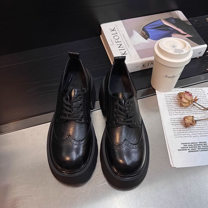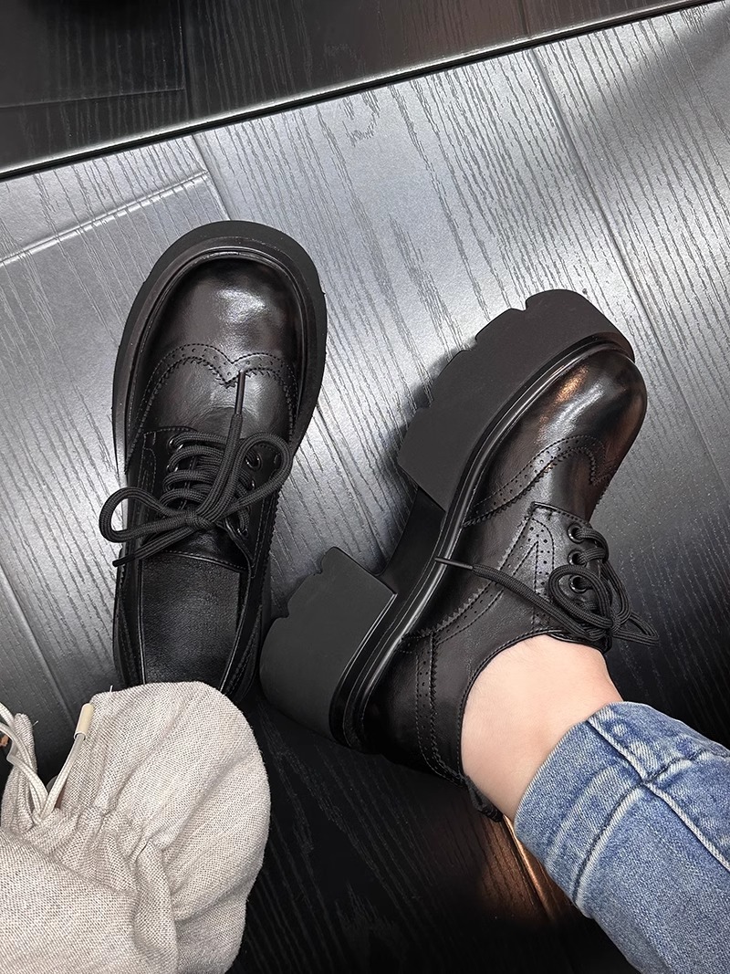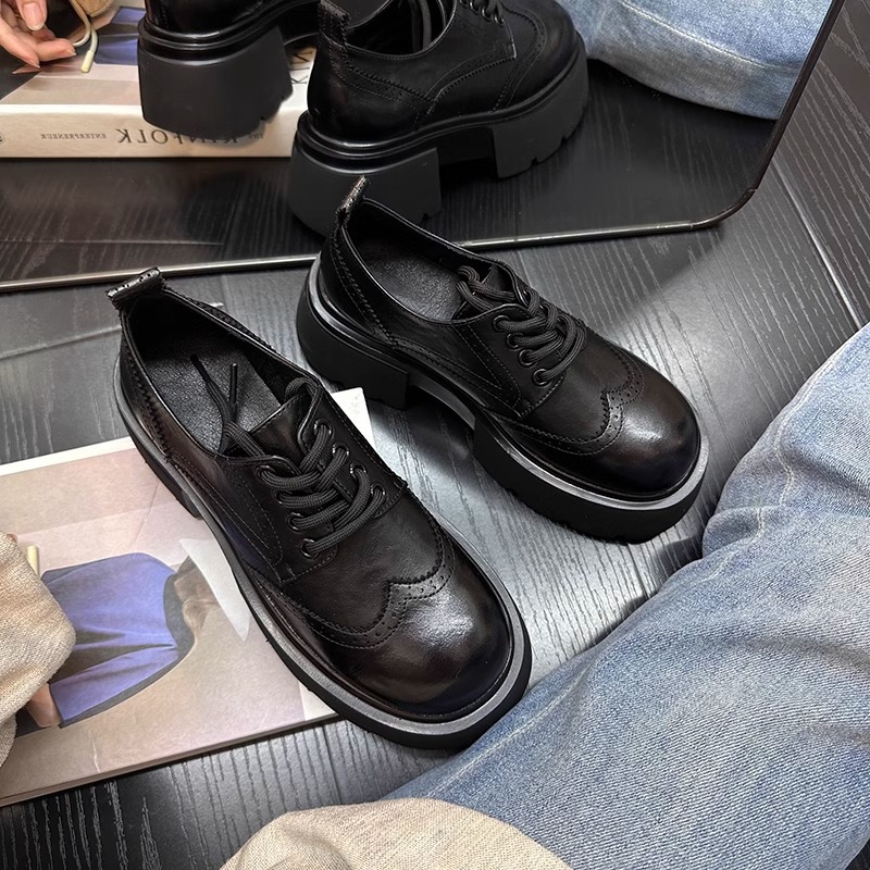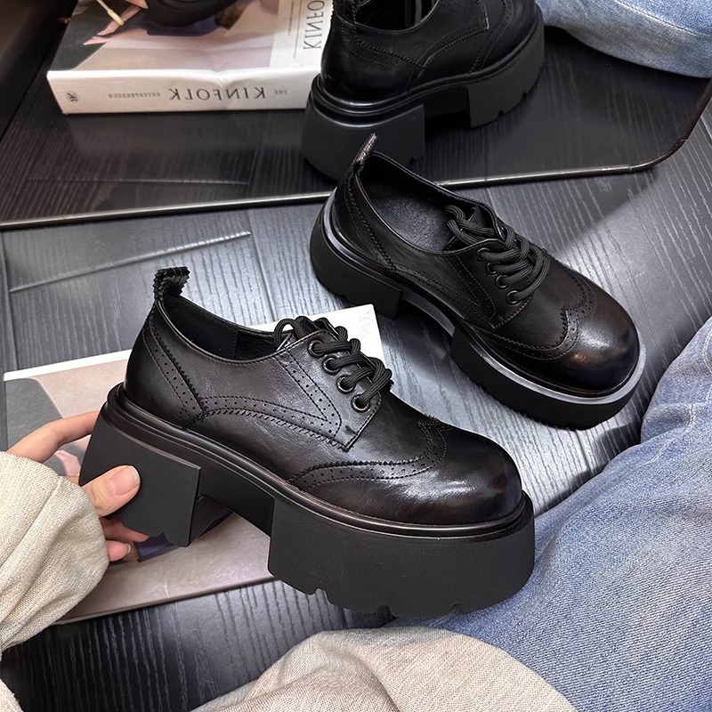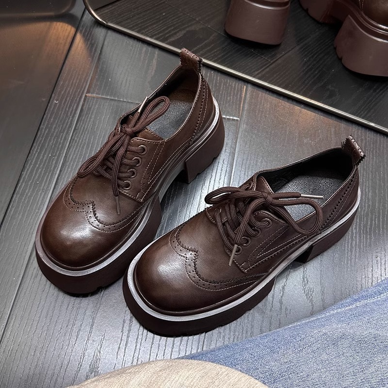 Europa estación zapatos Lefour zapatos de mujer 2025 primavera de cuero europeo con suela gruesa de talón grueso zapatos de cuero de estilo británico zapatos pequeños