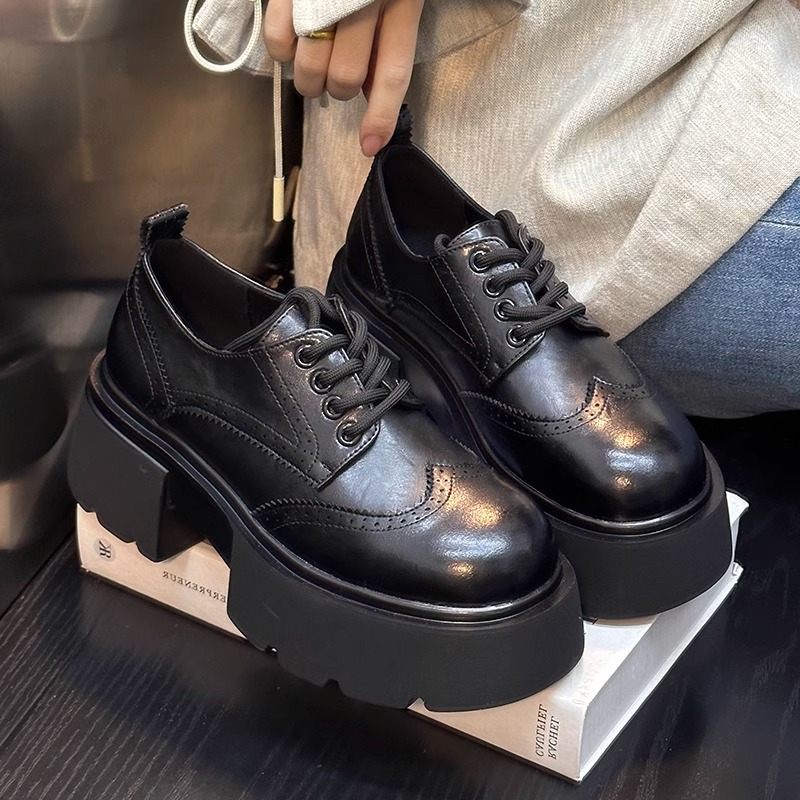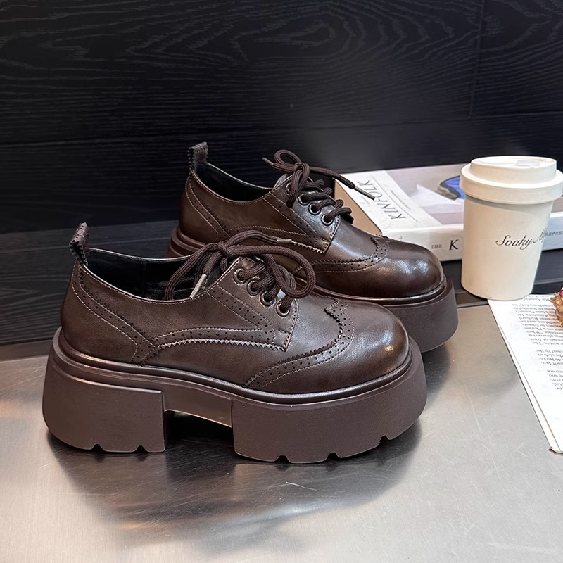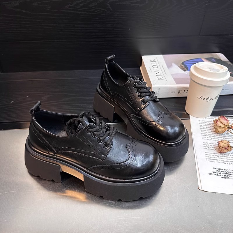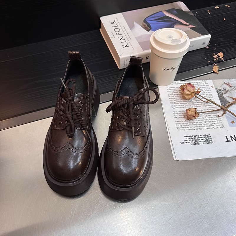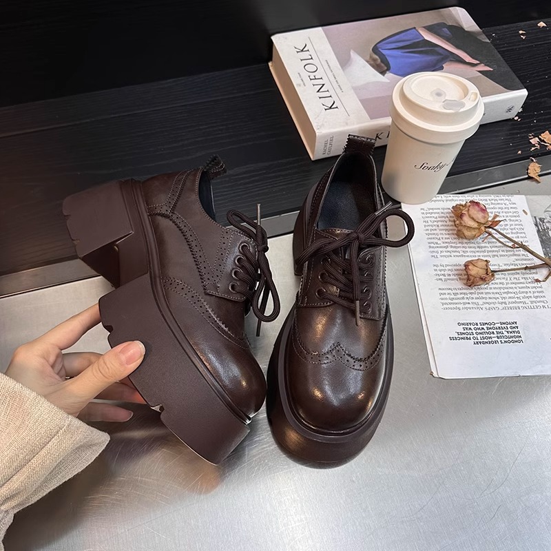 Europa estación zapatos Lefour zapatos de mujer 2025 primavera de cuero europeo con suela gruesa de talón grueso zapatos de cuero de estilo británico zapatos pequeños