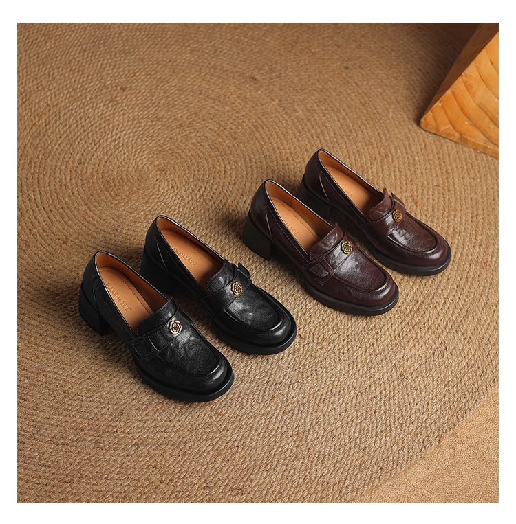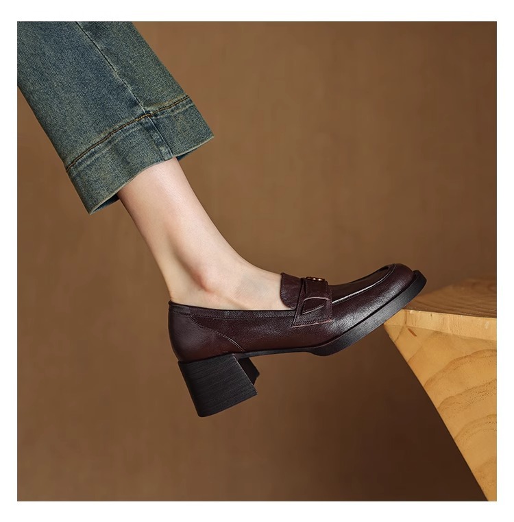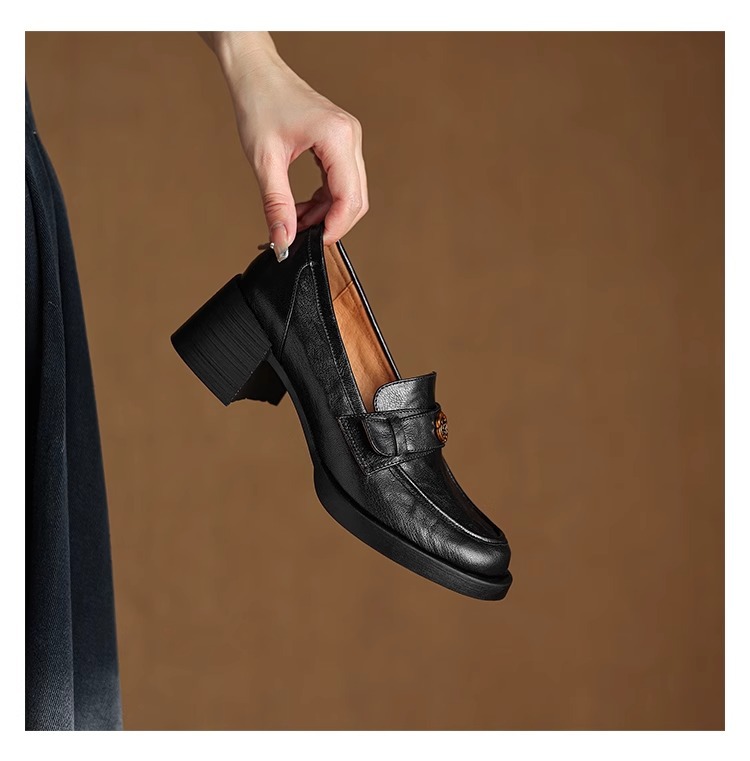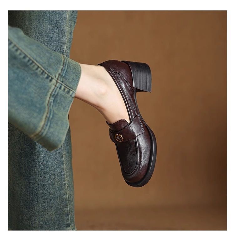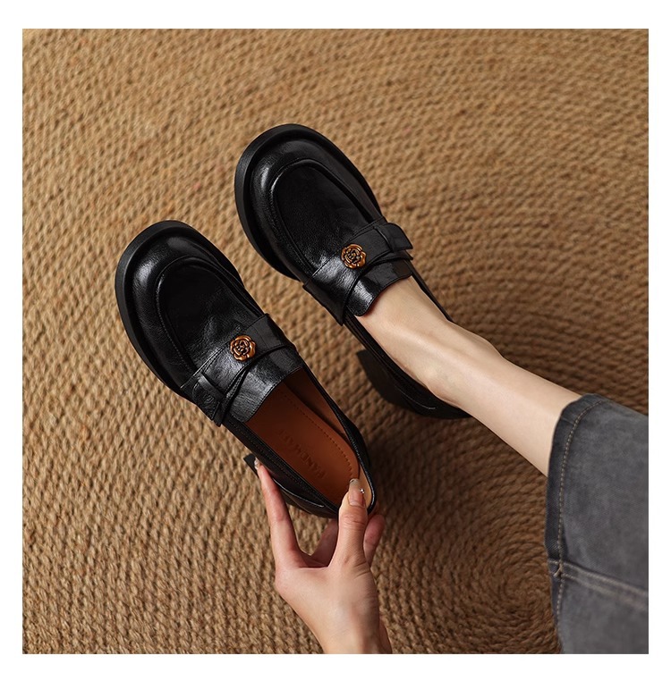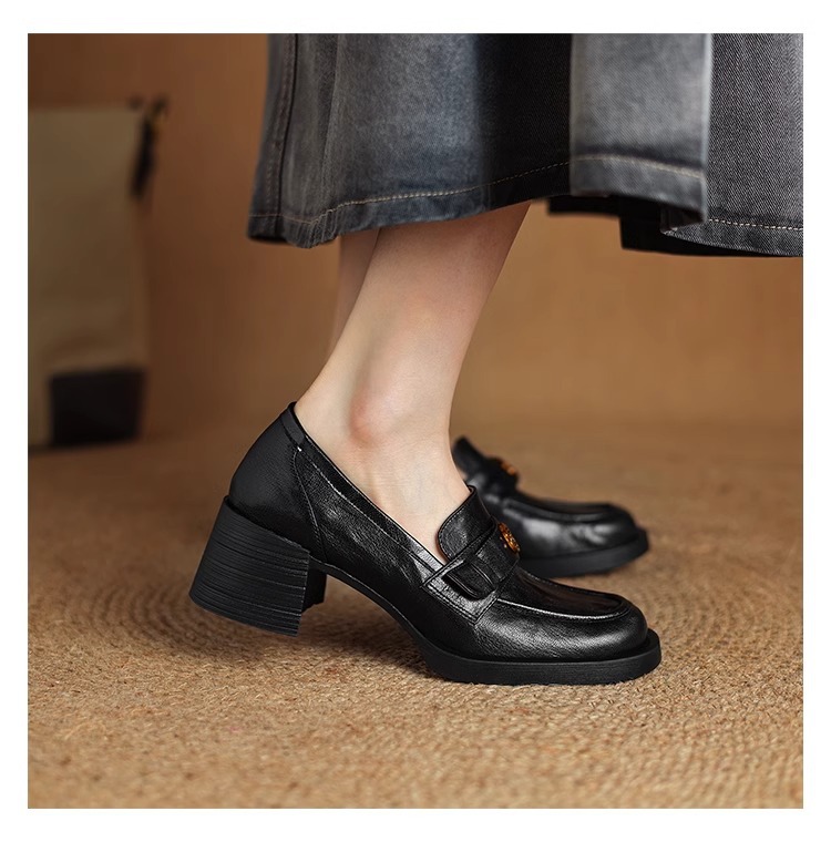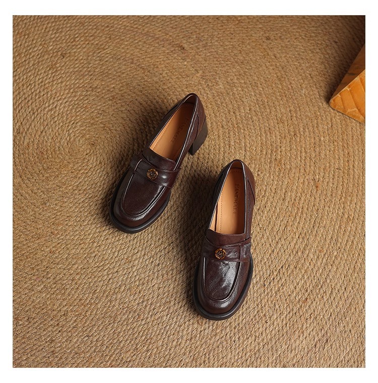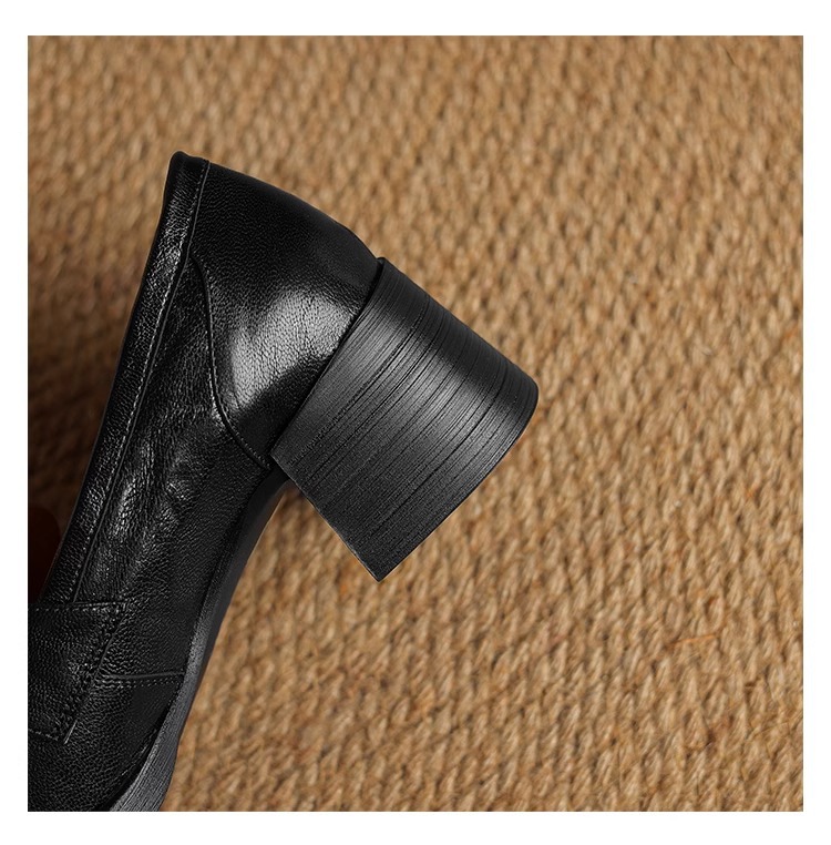 La marea no es sur ~ Camellia de un pie Lefu Shoes Mujer 2025 Nuevos zapatos de cuero de trabajo Zapatos de tacón alto grueso de suela gruesa