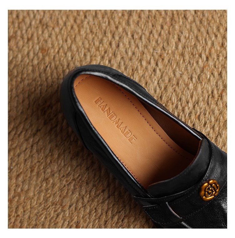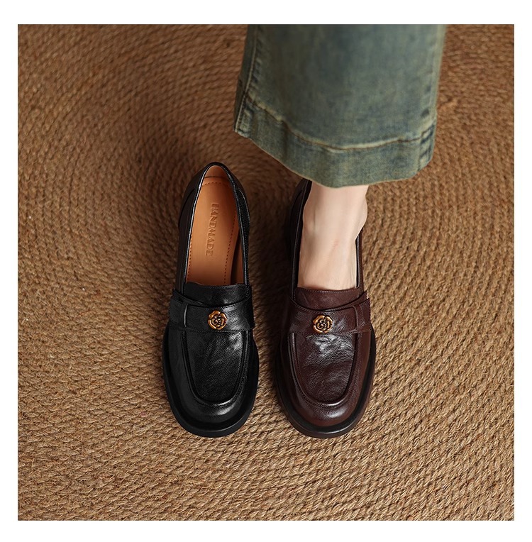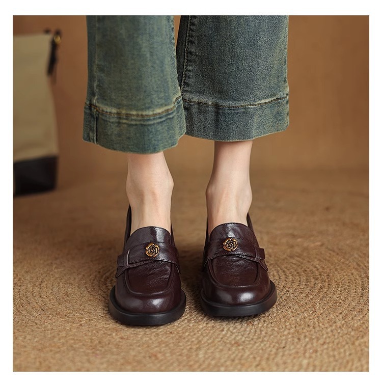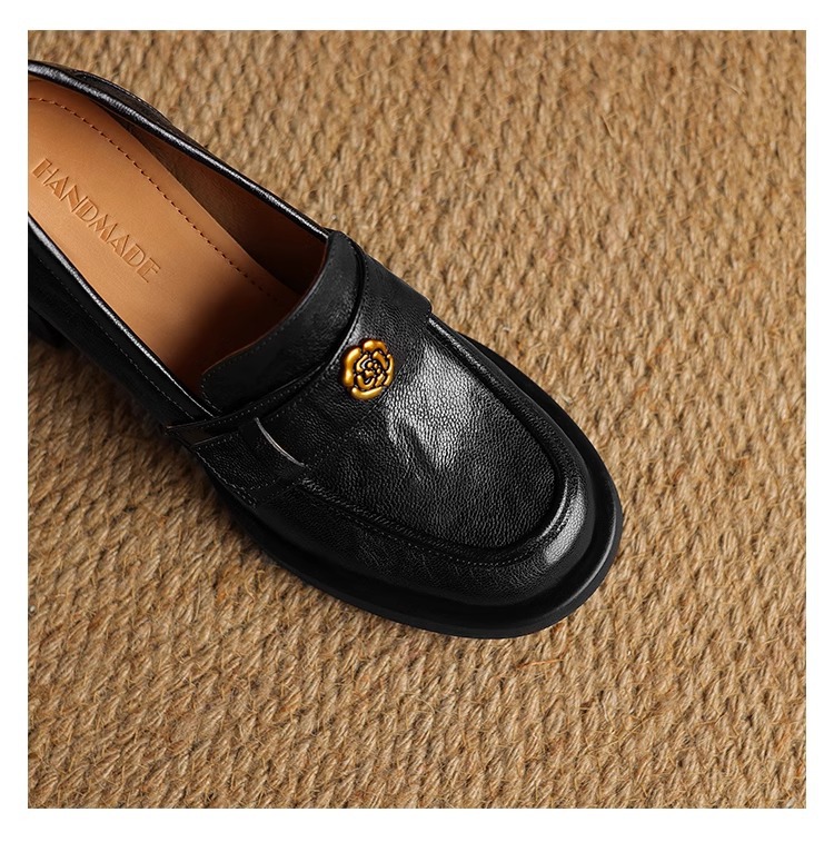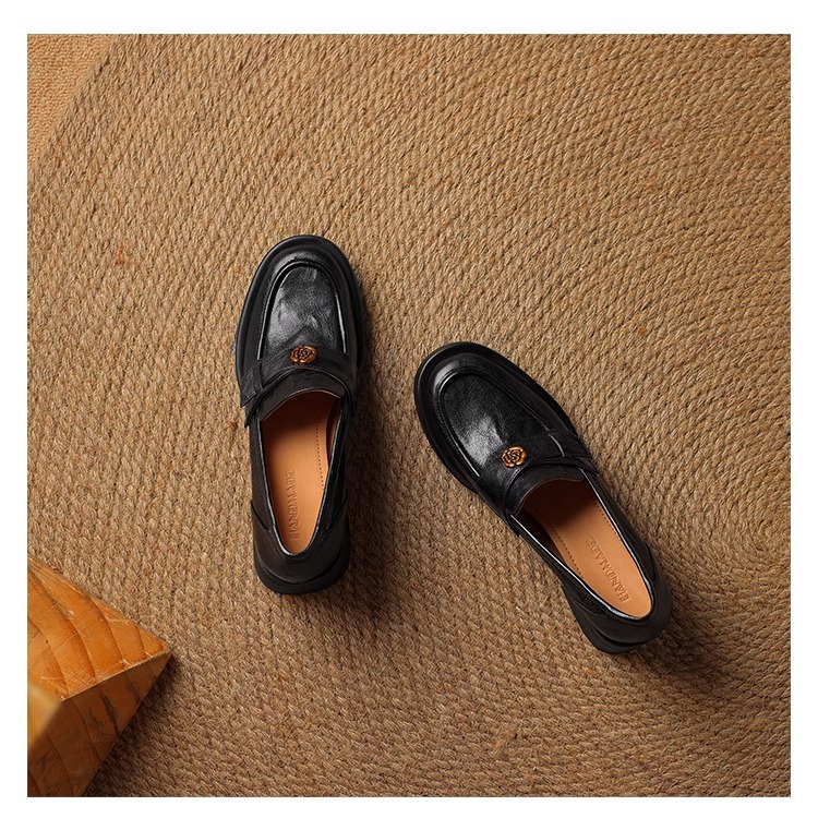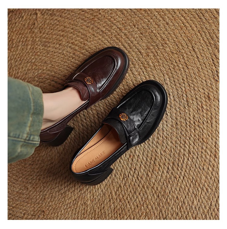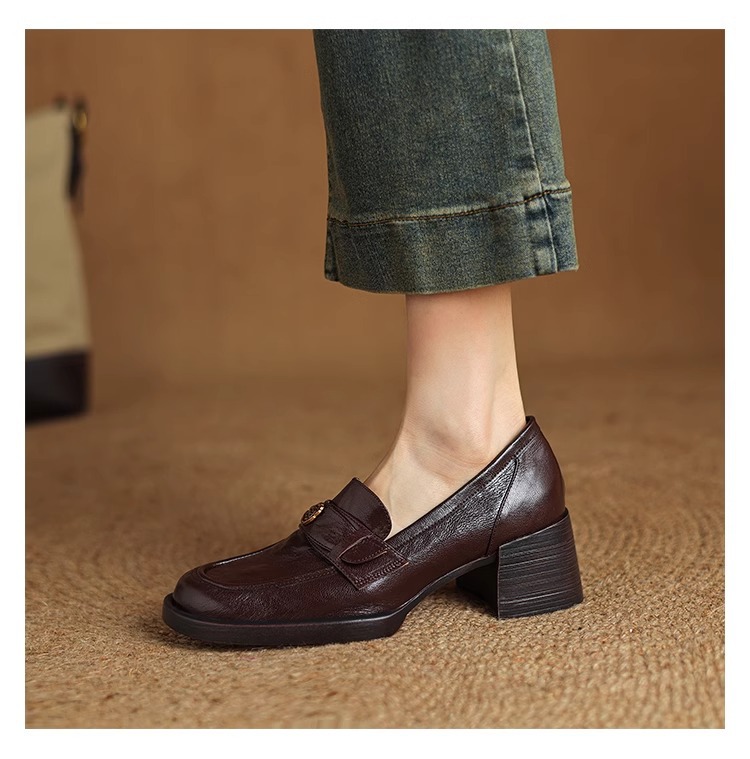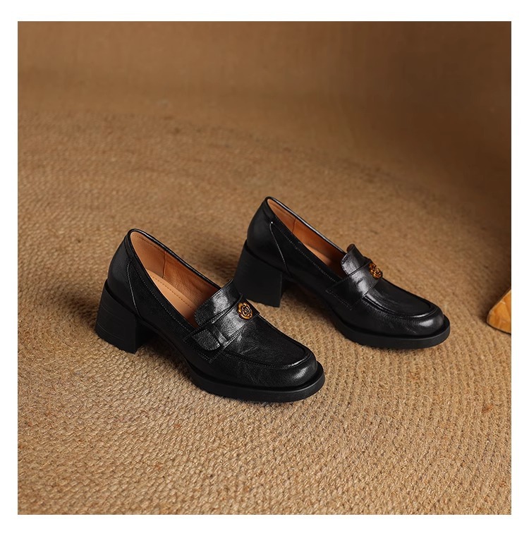 La marea no es sur ~ Camellia de un pie Lefu Shoes Mujer 2025 Nuevos zapatos de cuero de trabajo Zapatos de tacón alto grueso de suela gruesa