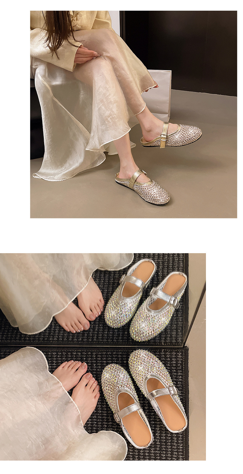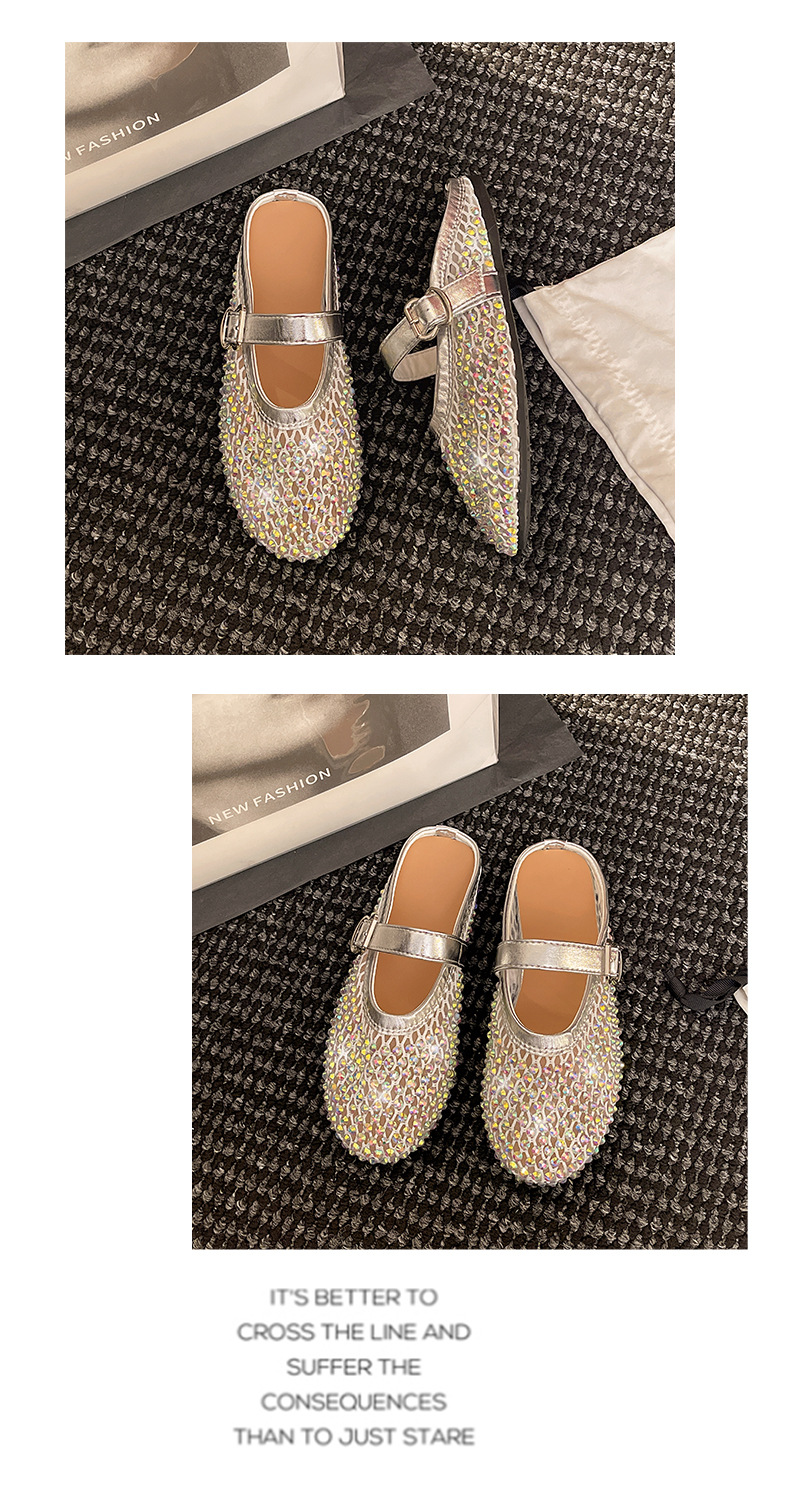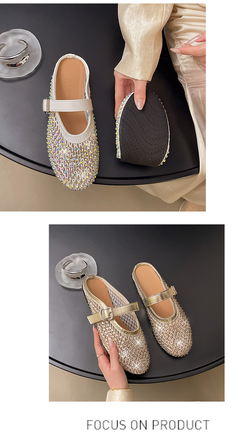 [Chao Bounan] Galaxy tejido a mano ● Reducción de edad, diamantes brillantes, arrastre de Baotou, nuevas zapatillas de hadas transpirables de malla de verano para mujer