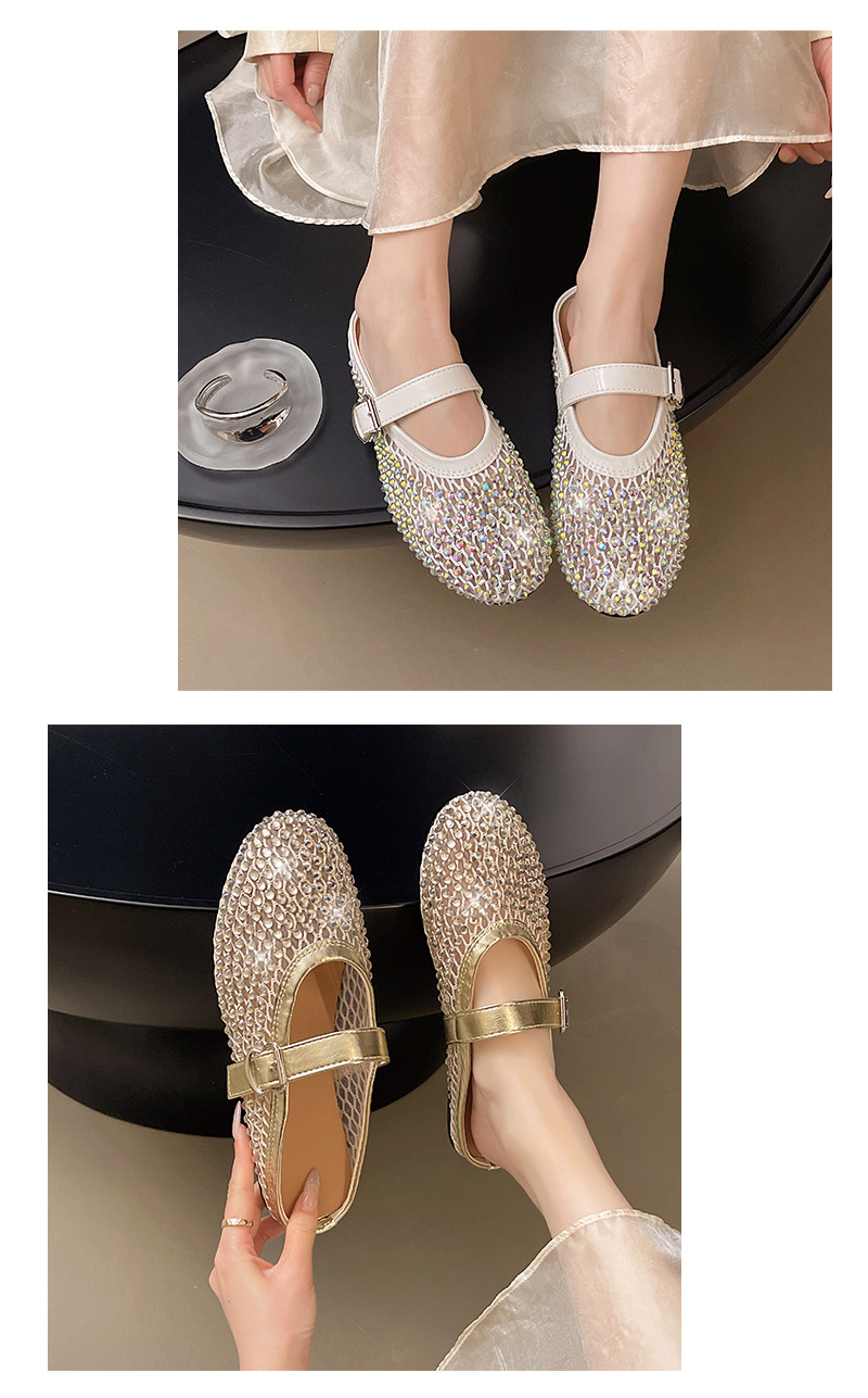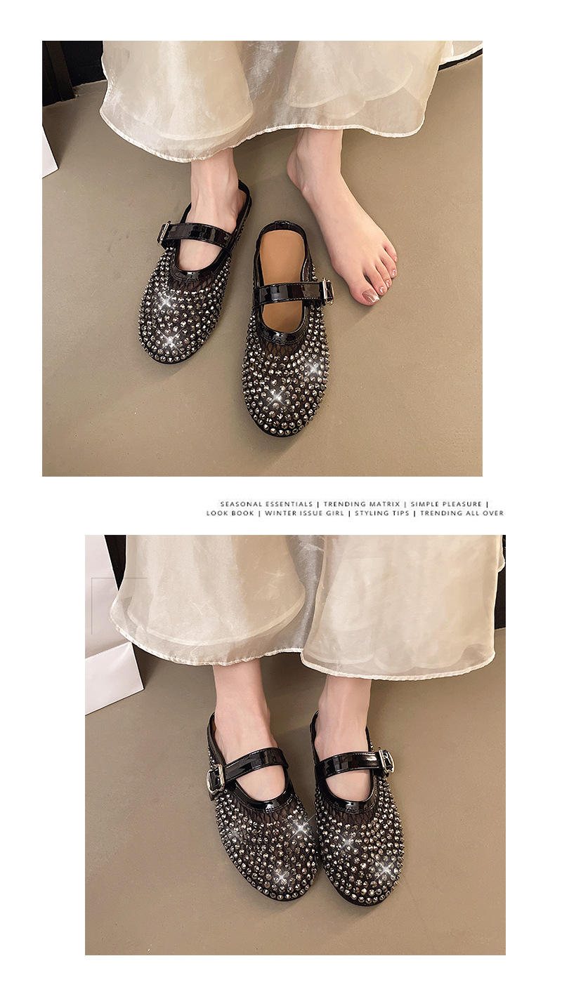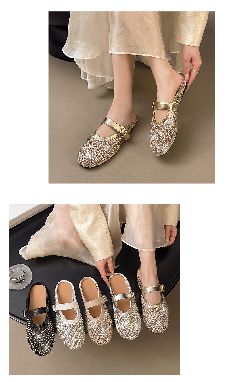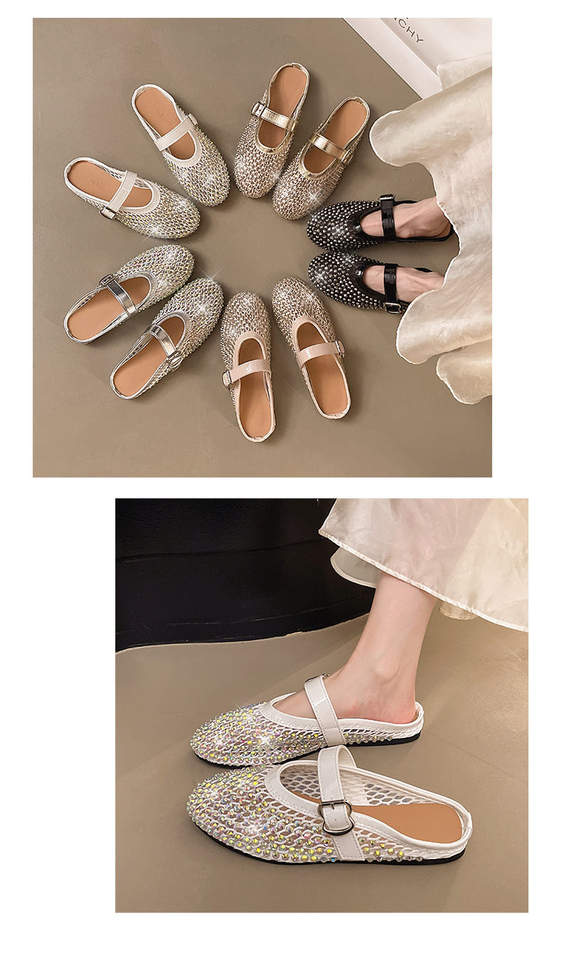 [Chao Bounan] Galaxy tejido a mano ● Reducción de edad, diamantes brillantes, arrastre de Baotou, nuevas zapatillas de hadas transpirables de malla de verano para mujer