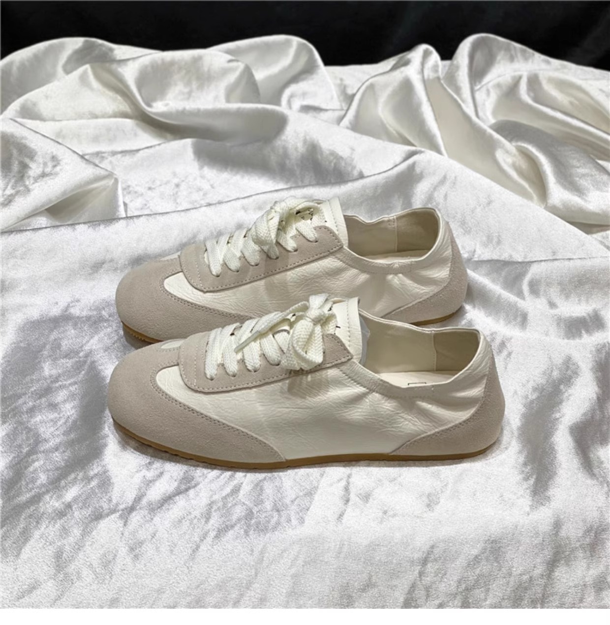 Primero antiguo ~ Zapatos de entrenamiento alemanes para mujer 2025 nuevos zapatos Forrest Gump de suela suave, zapatos blancos cómodos con cordones casuales planos