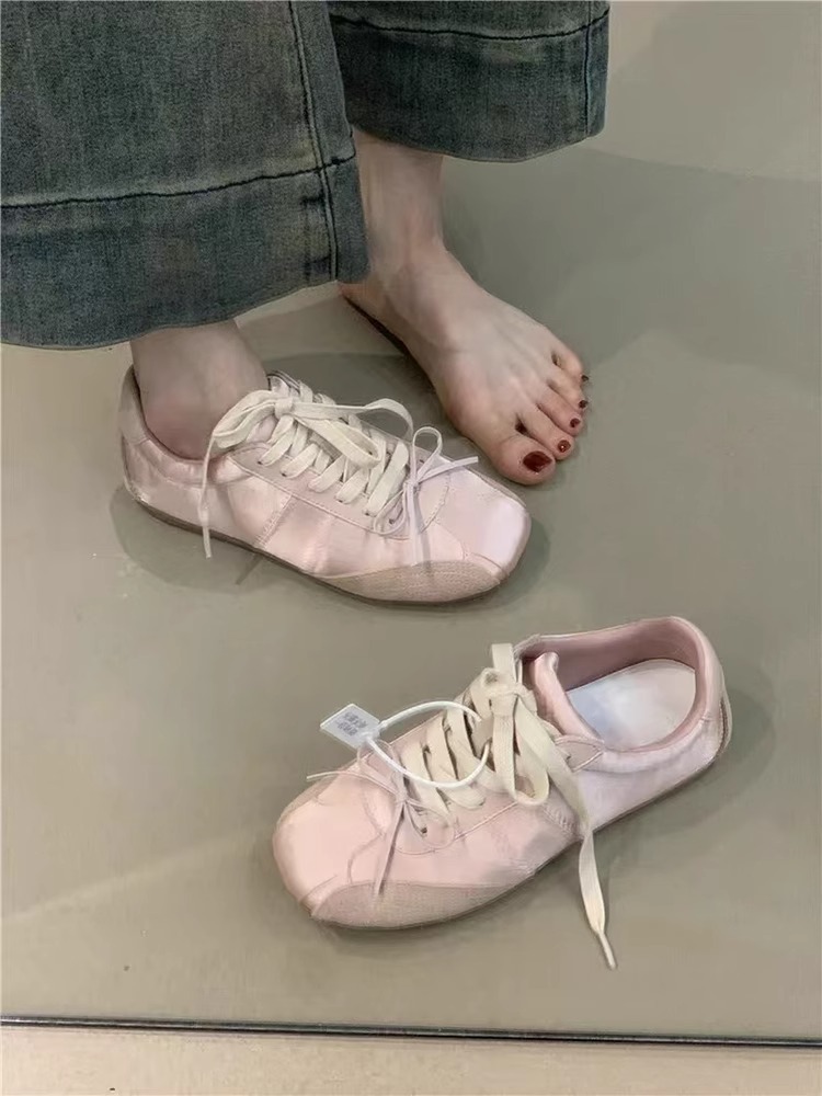 Versión de piel de vaca ~ Ballet bowknot retro todo-fósforo color de contraste alemán zapatos de entrenamiento mujer suela suave estilo deportivo cómodo zapatos casuales