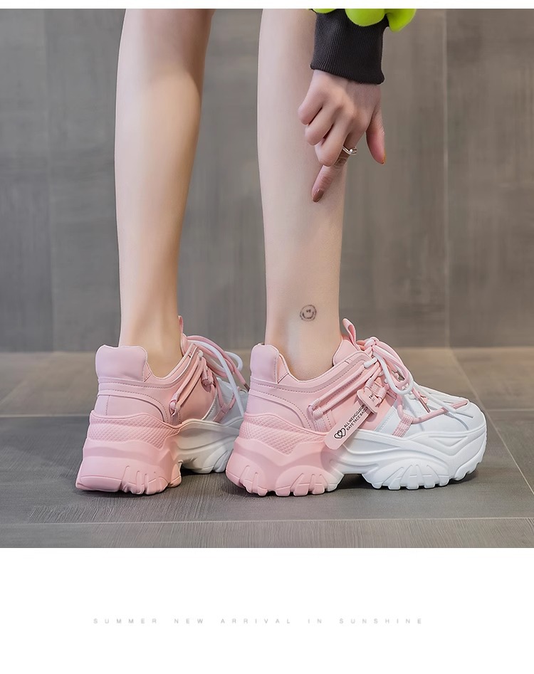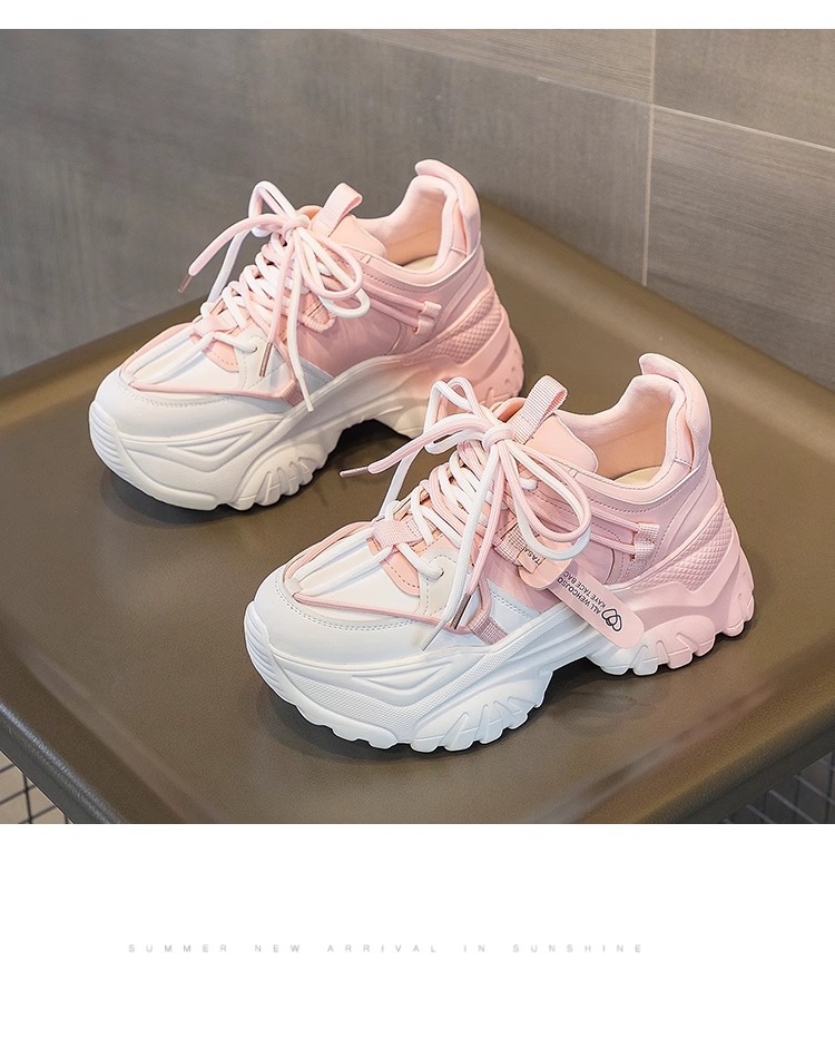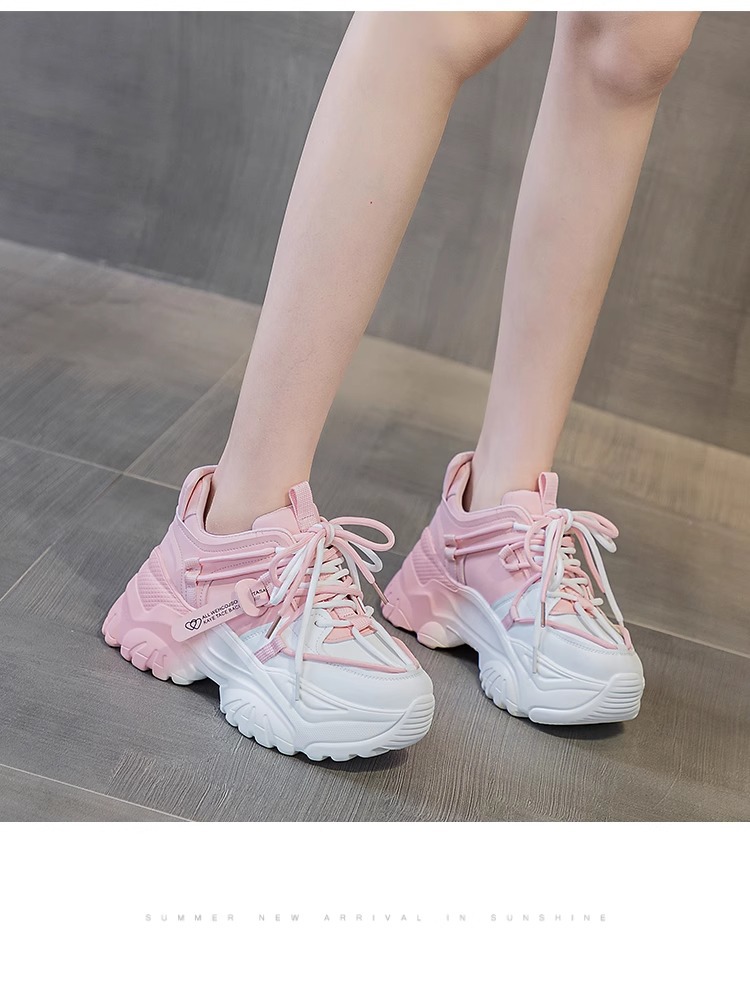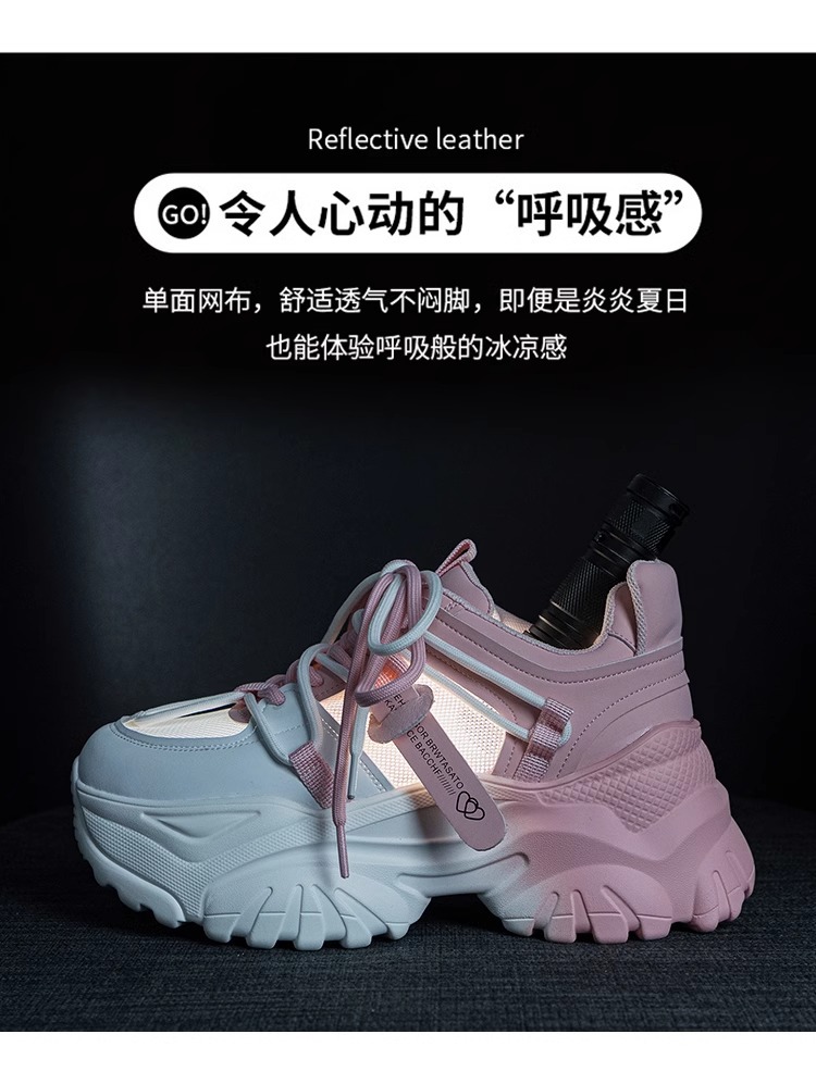 Zapatos de papá zapatos de mujer primavera 2025 nueva altura de suela gruesa super caliente deportivo blanco de verano red transpirable
