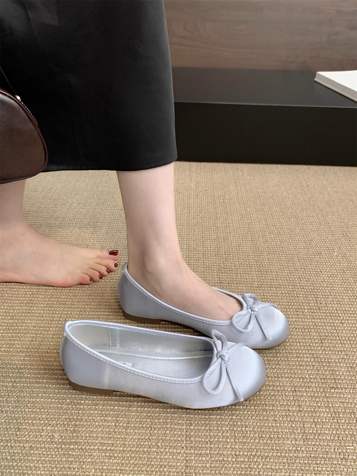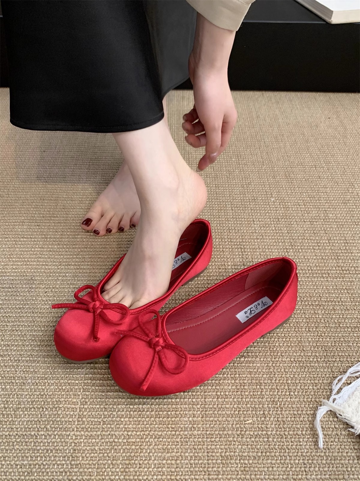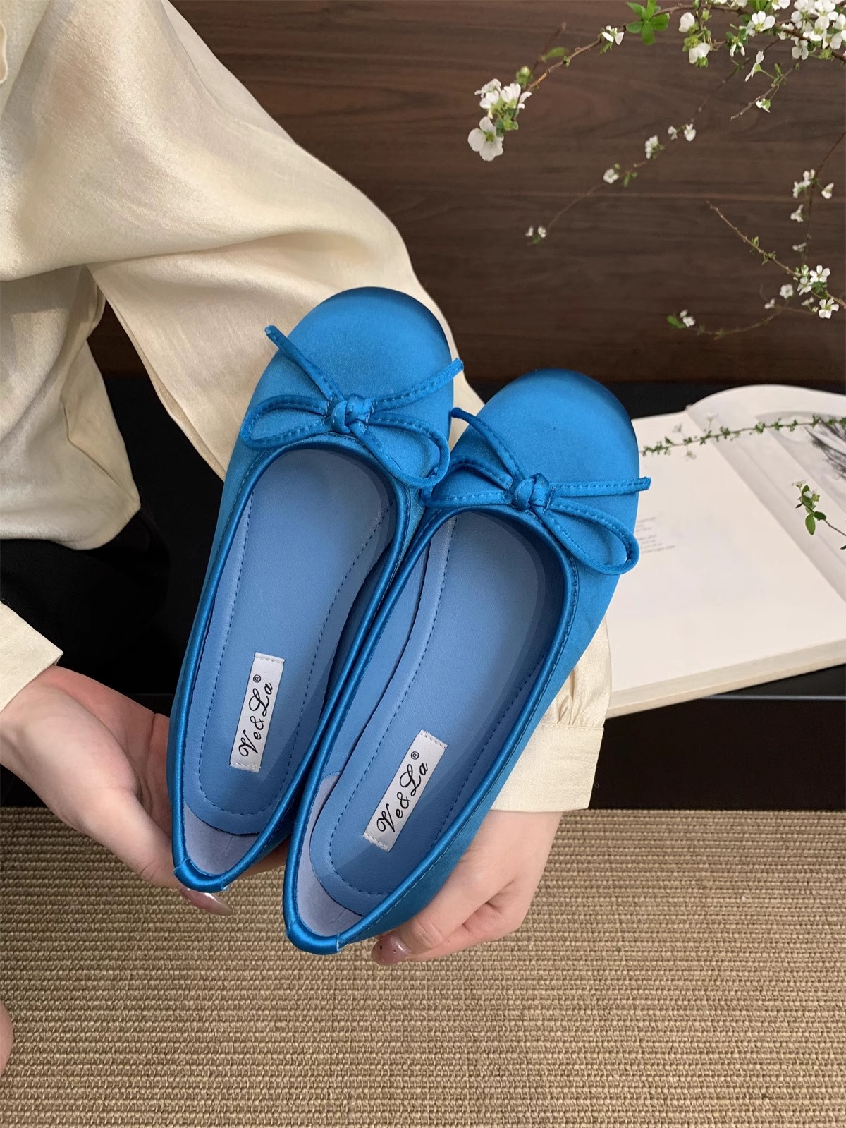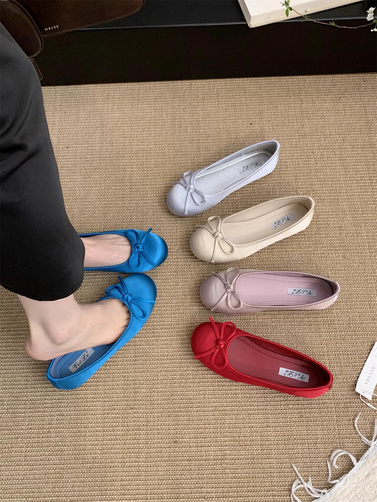 Zapatos rojos claros para mujeres primavera nuevo estilo francés retro suave estilo de hadas ballet azul zapatos de soja plana