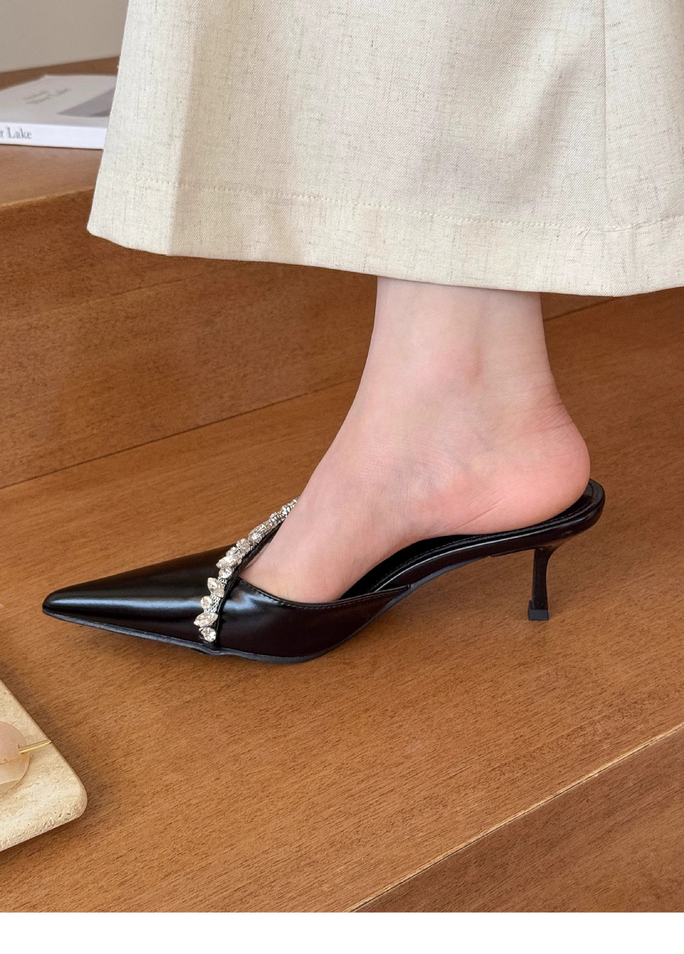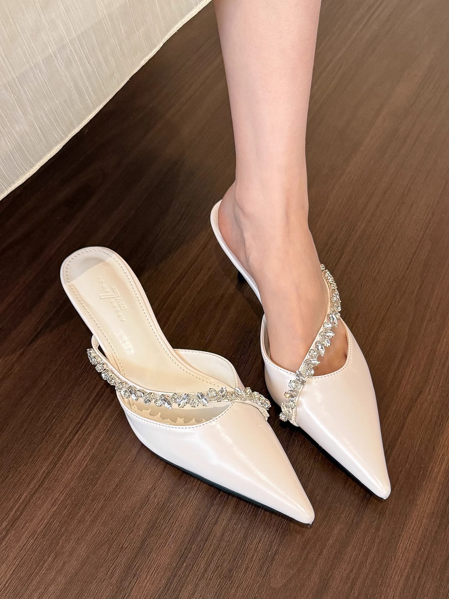 ¡Engstudio es rico y precioso! Blanco puntero diamante tacones altos zapatillas de primavera de 2025 zapatillas de tacón fino