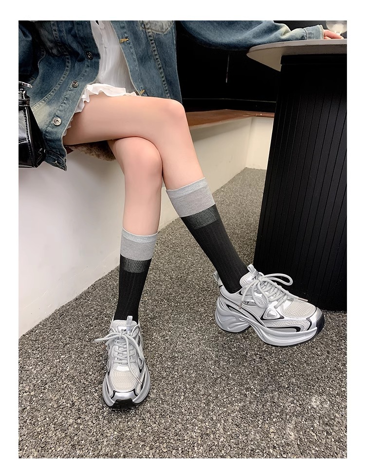 [Bailu mismo estilo] CCGG brilla Galaxy 2024 primavera nuevos zapatos de papá zapatos deportivos plateados de suela gruesa para mujer