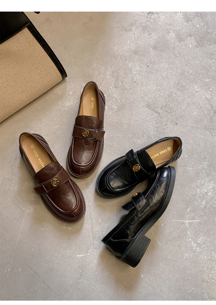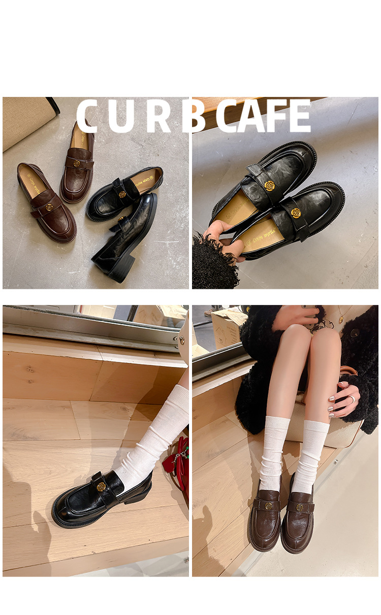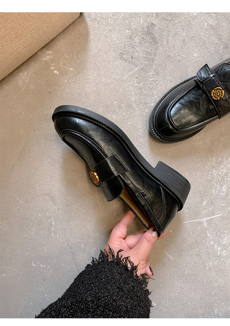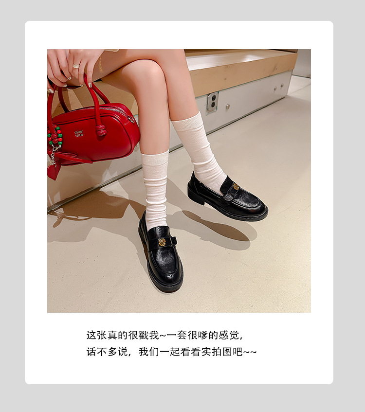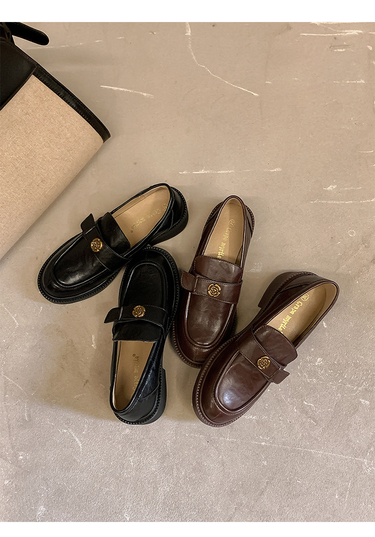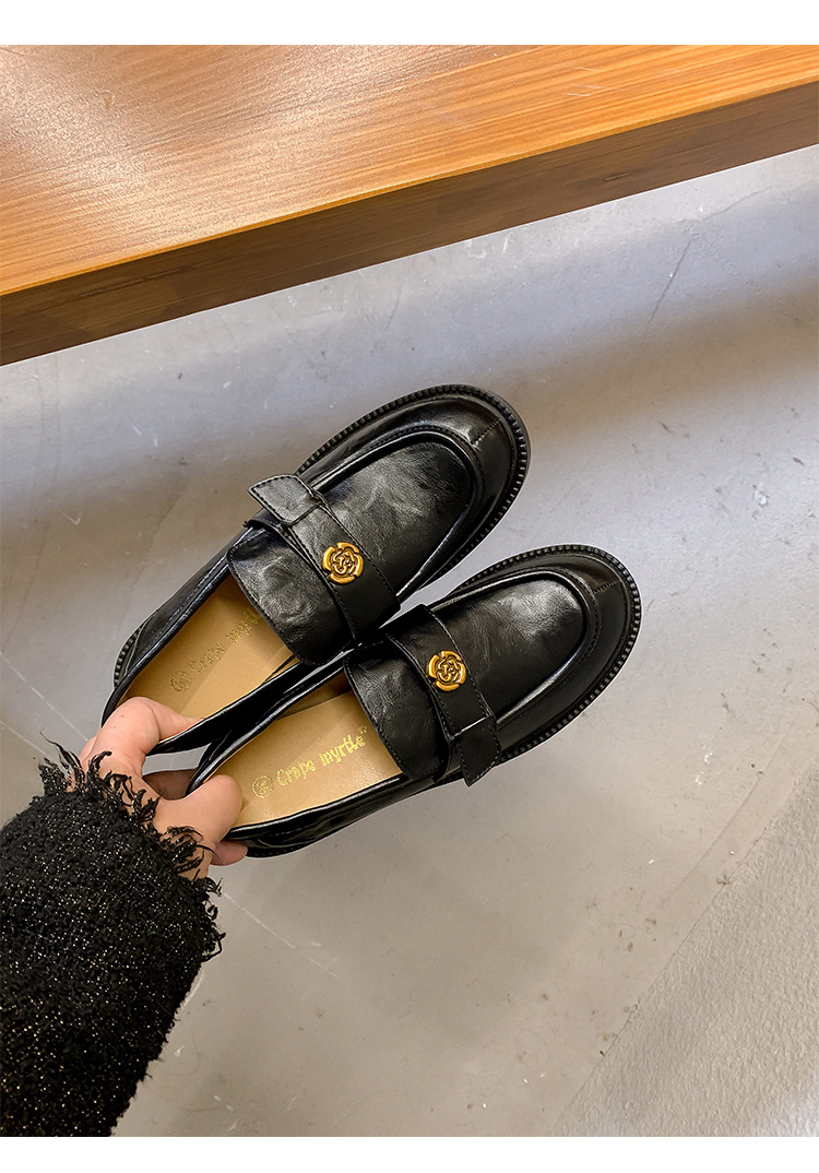 Zapatos de música de estilo británico para mujer 202 nuevos zapatos casuales de una sola pierna zapatos de cuero negro retro de plataforma