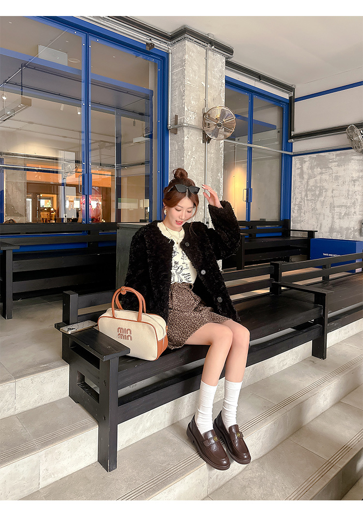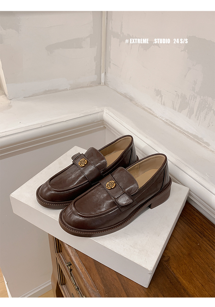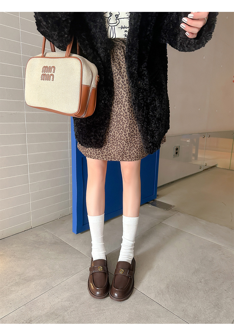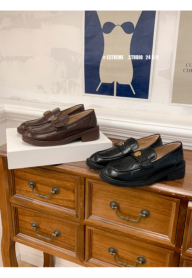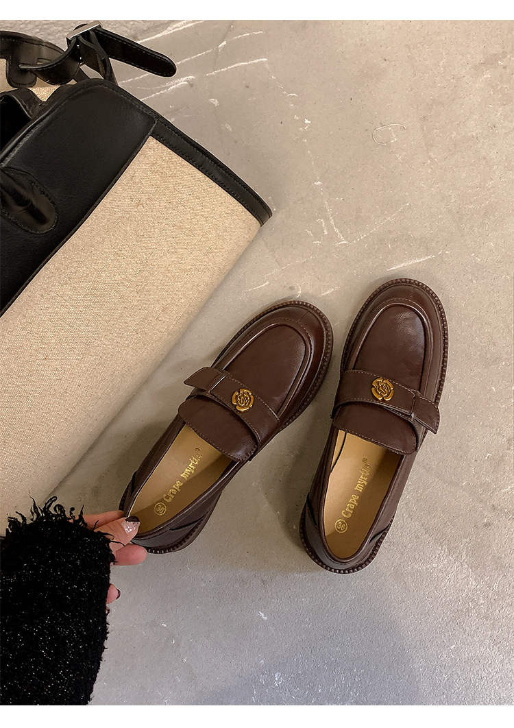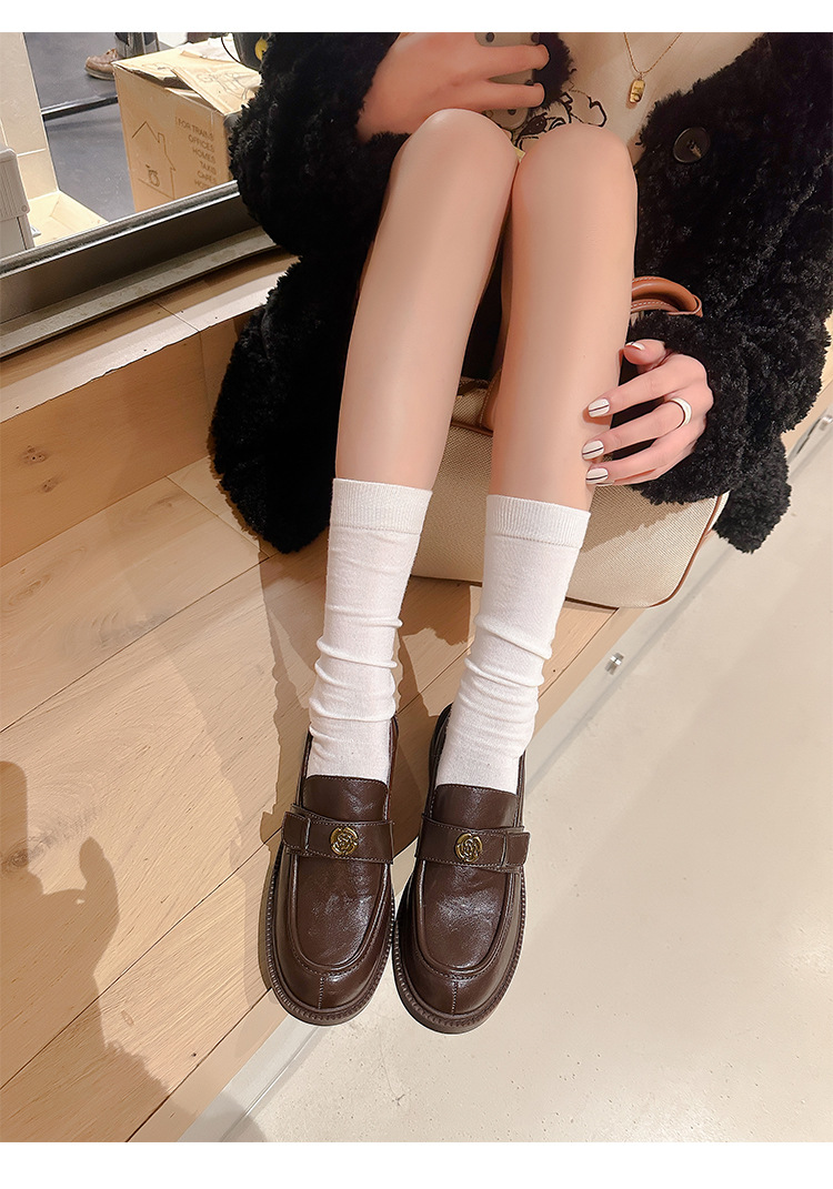 Zapatos de música de estilo británico para mujer 202 nuevos zapatos casuales de una sola pierna zapatos de cuero negro retro de plataforma
