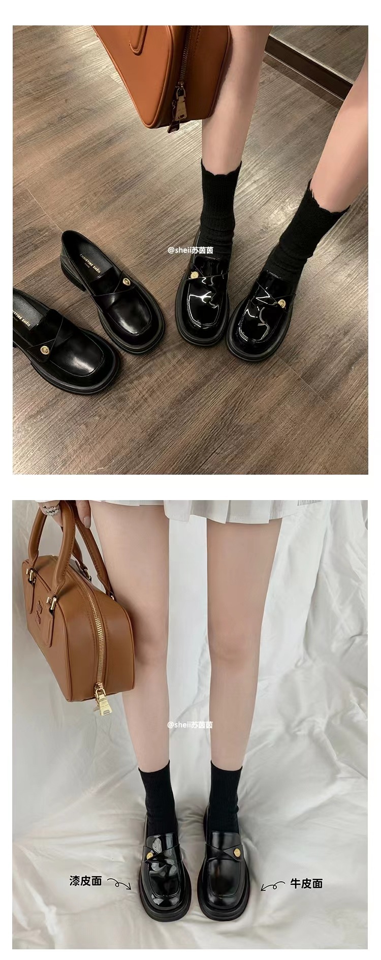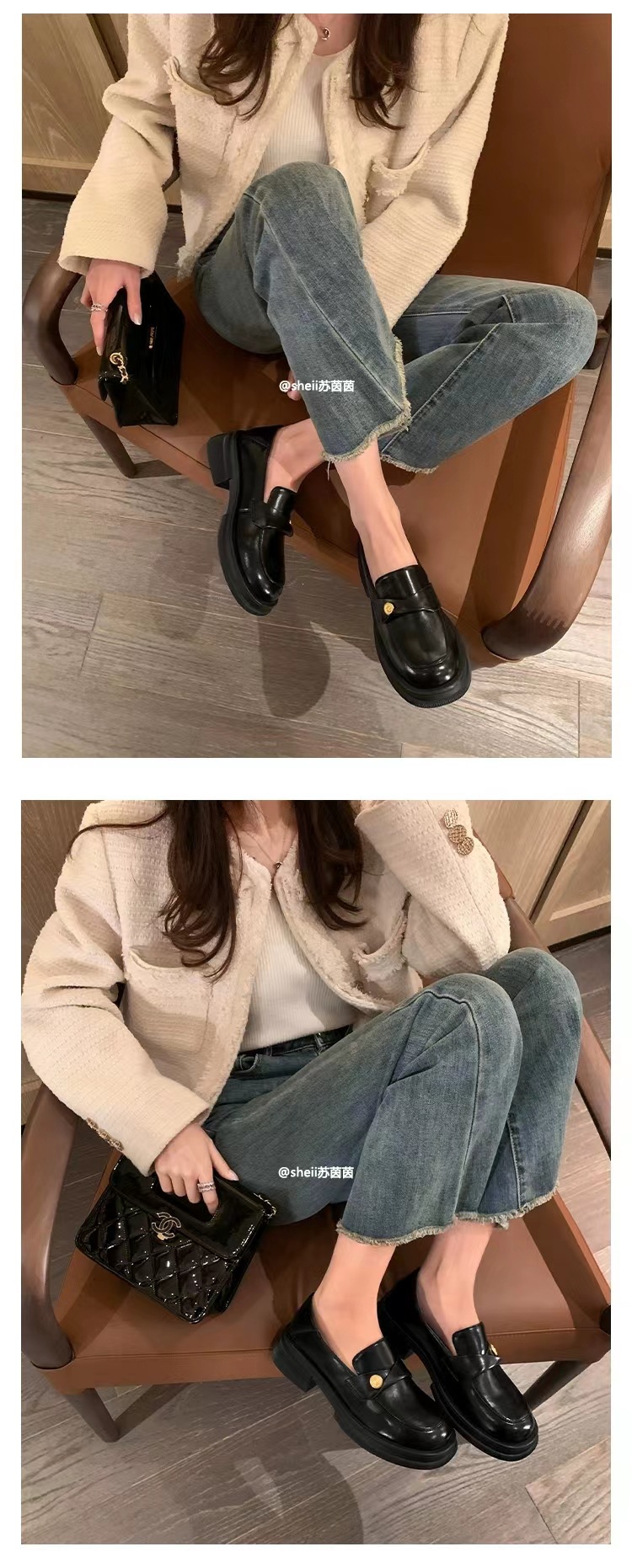 Mocasines de Cuero Genuino para Mujer, Primavera 2025, Suela Gruesa con Monedero Pequeño, Zapatos de Tacón Grueso de Cuero para Mujer, Sin Cordones.