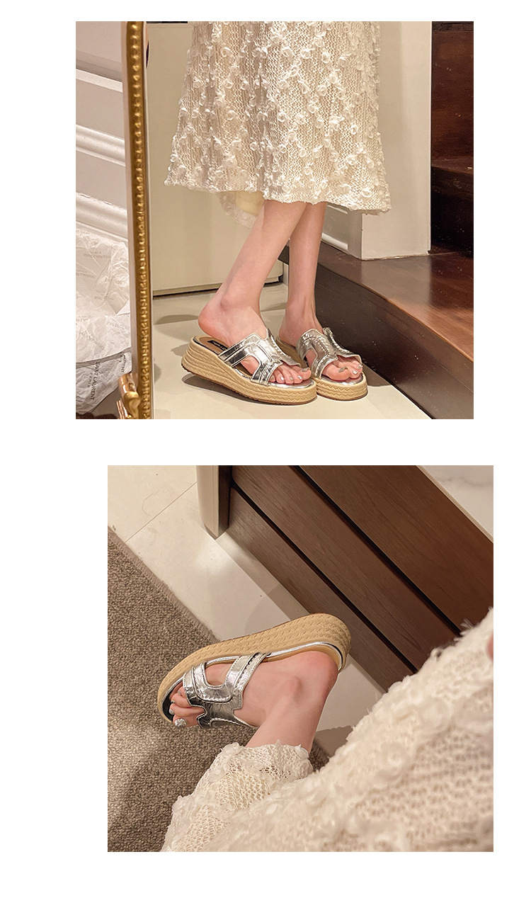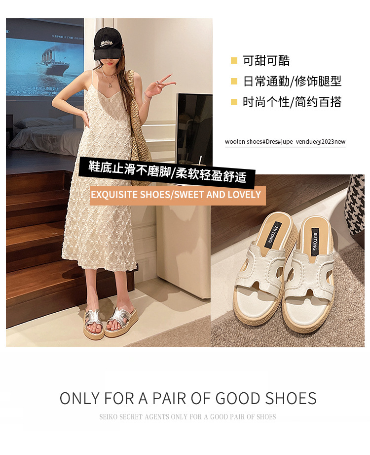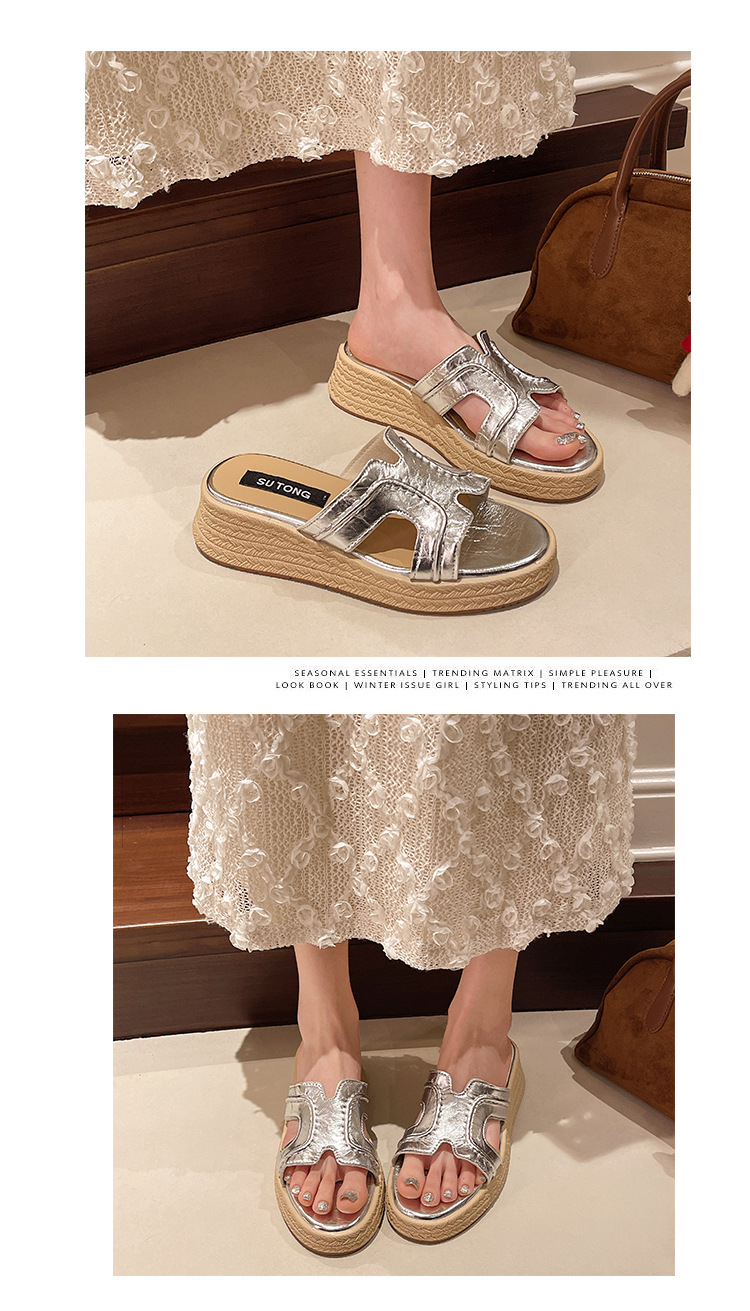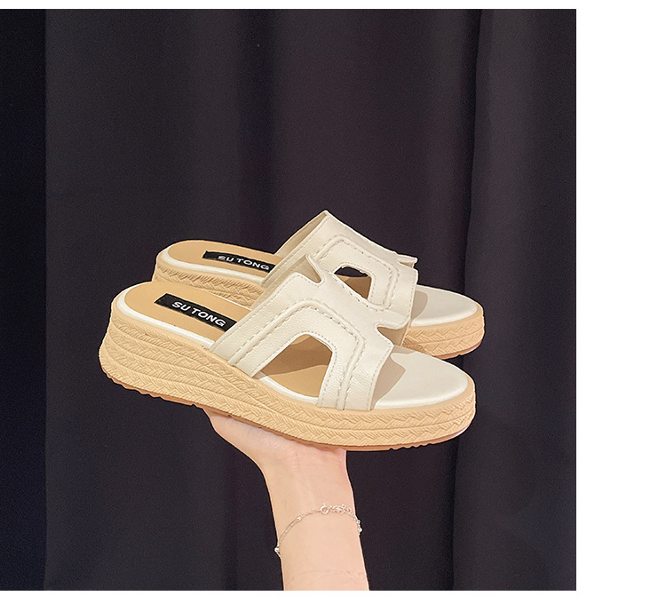 "Miao Lu" Zhao Lusi mismo párrafo ~ Sandalias y pantuflas de una palabra para mujer, zapatos de plataforma de paja para verano, sandalias de tacón alto de suela gruesa