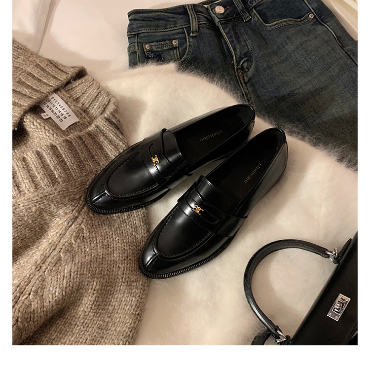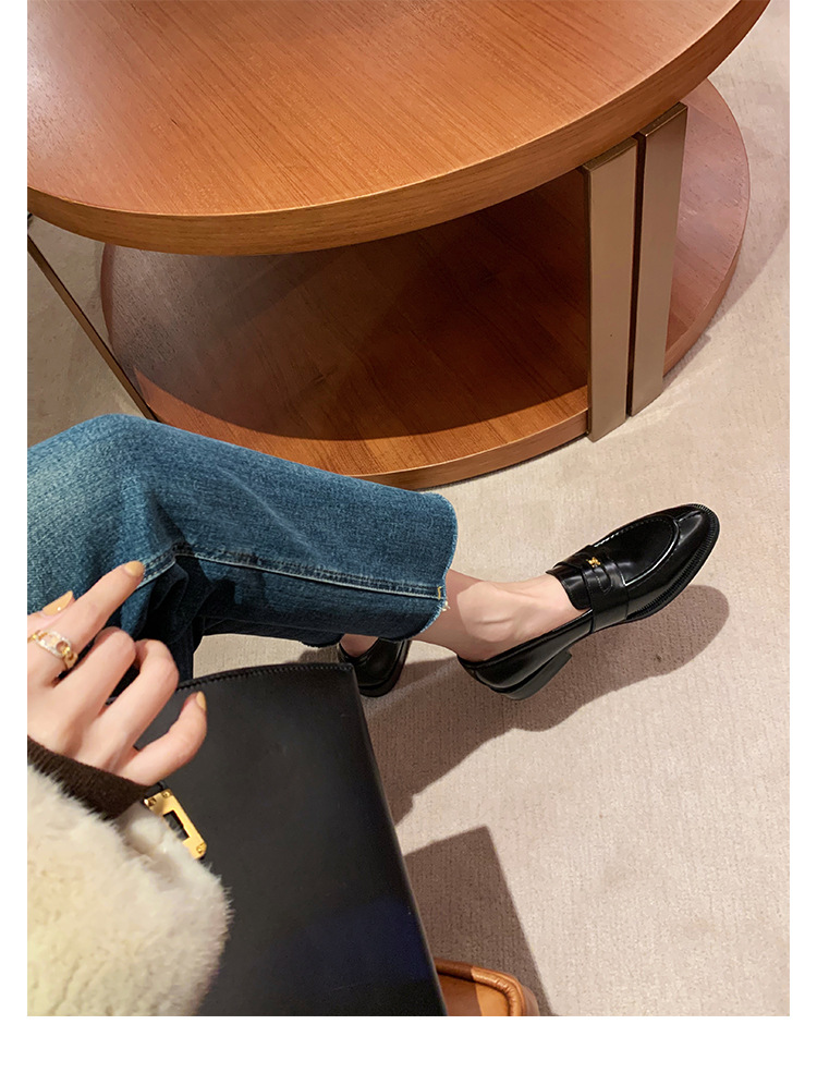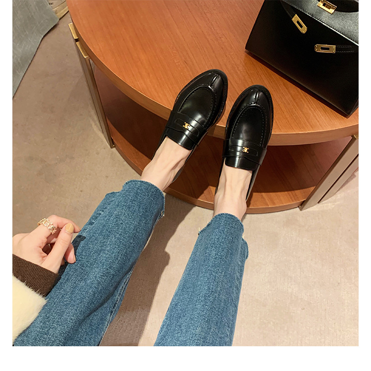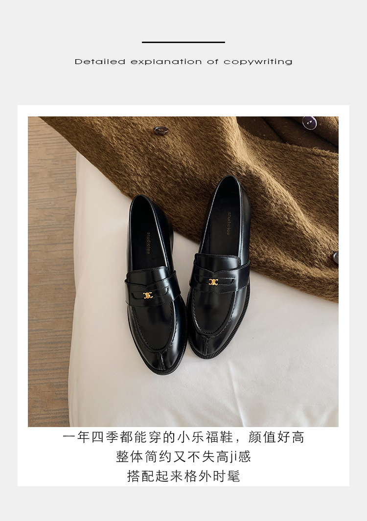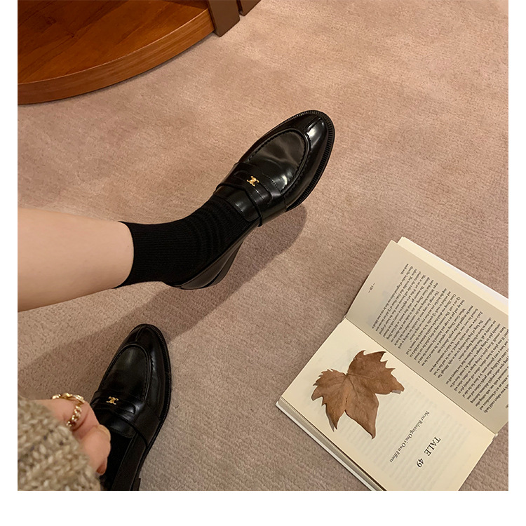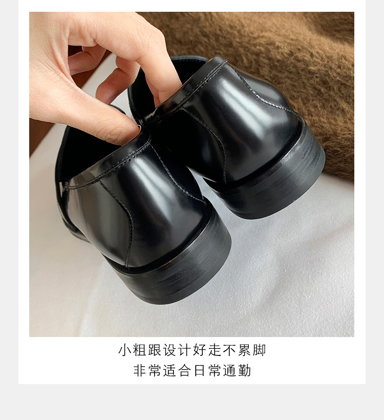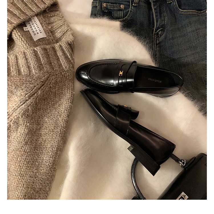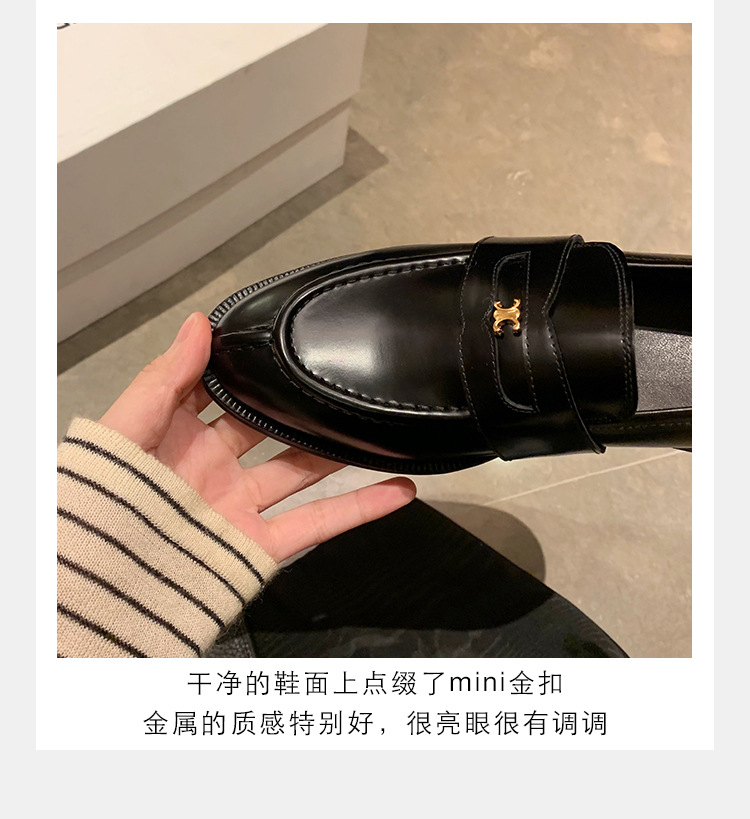 Mamá de uva estilo británico punta redonda pequeña hebilla de oro zapatos de una sola capa mocasines de plataforma de tacón grueso zapatos de cuero pequeños para mujeres primavera y otoño