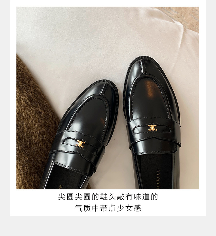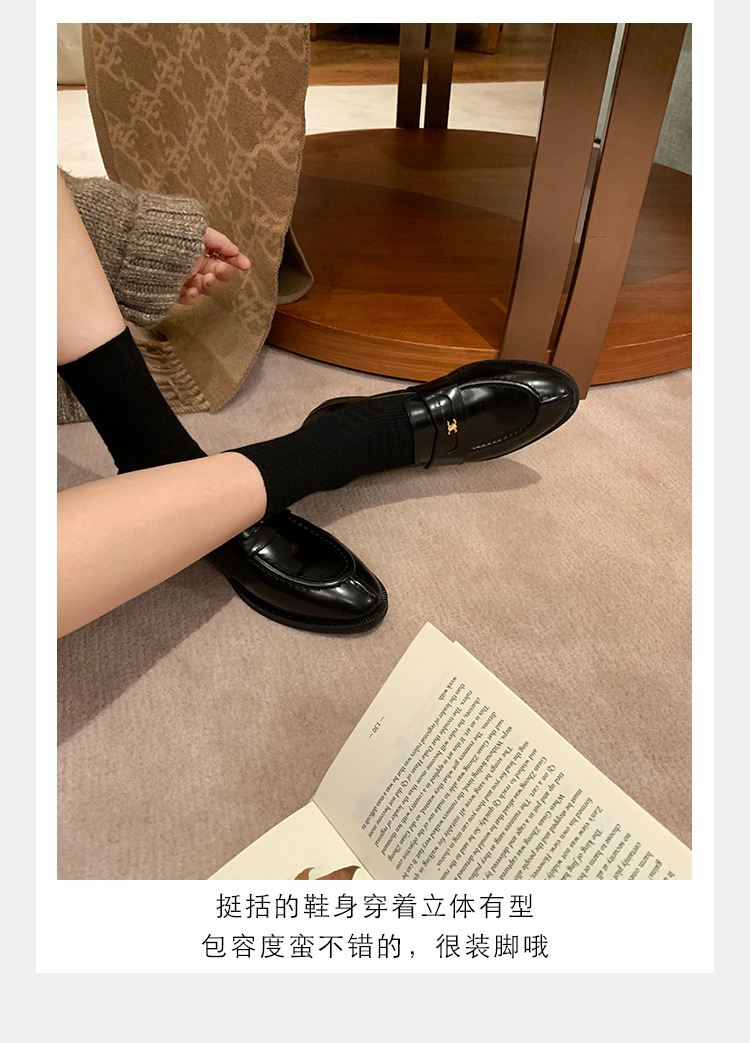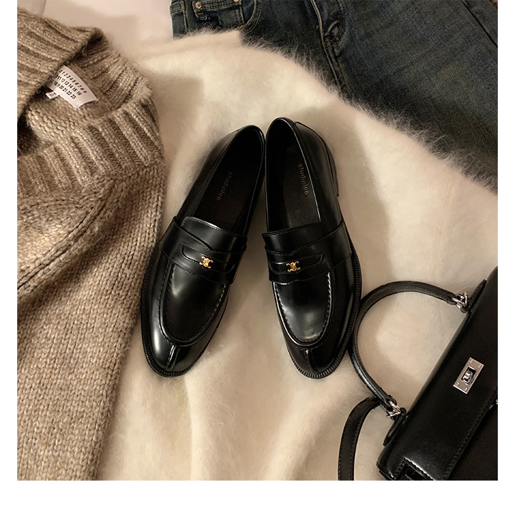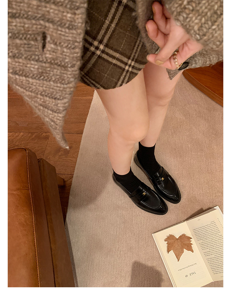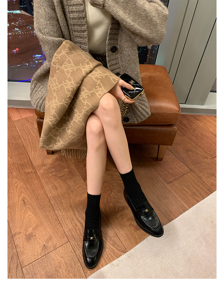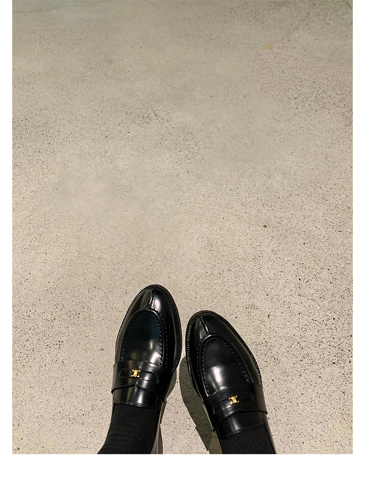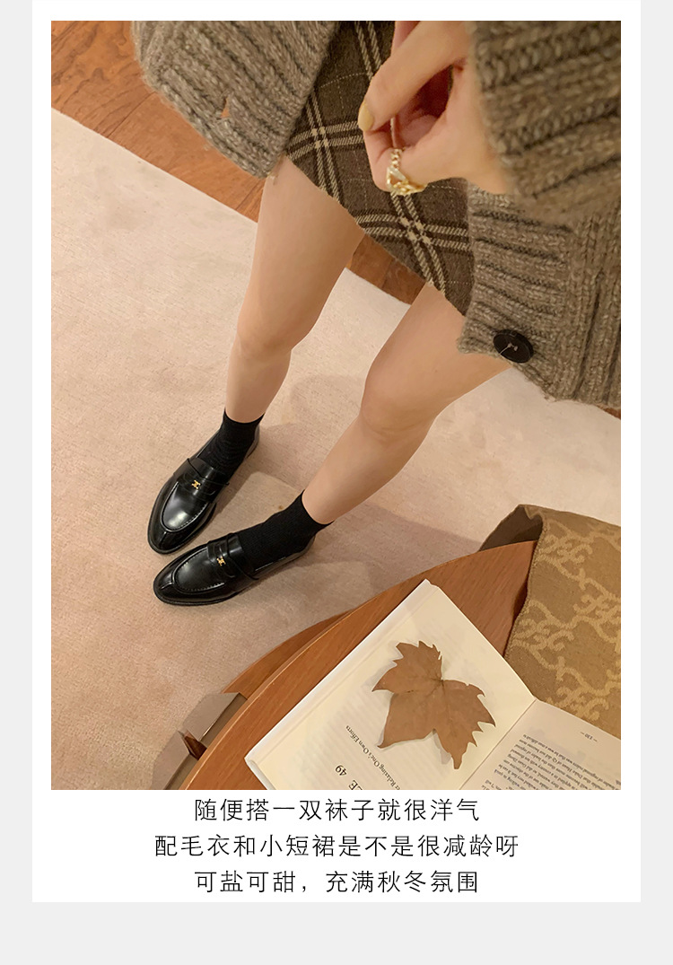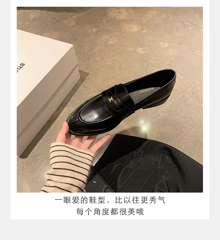 Mamá de uva estilo británico punta redonda pequeña hebilla de oro zapatos de una sola capa mocasines de plataforma de tacón grueso zapatos de cuero pequeños para mujeres primavera y otoño