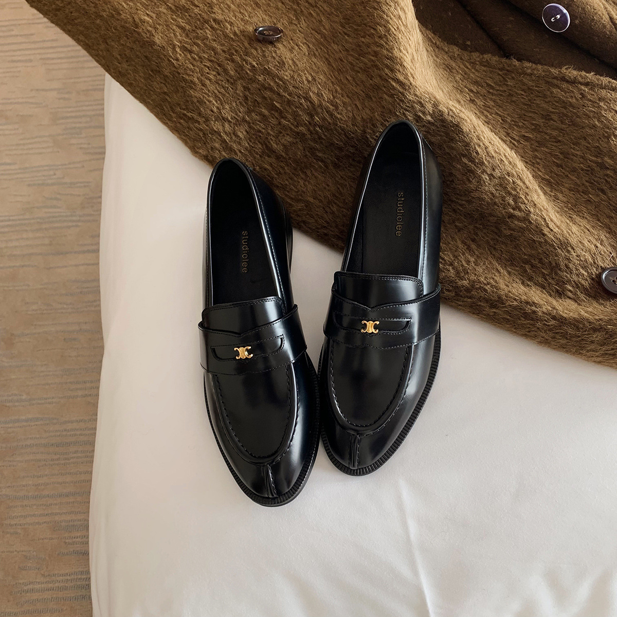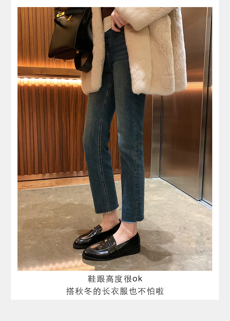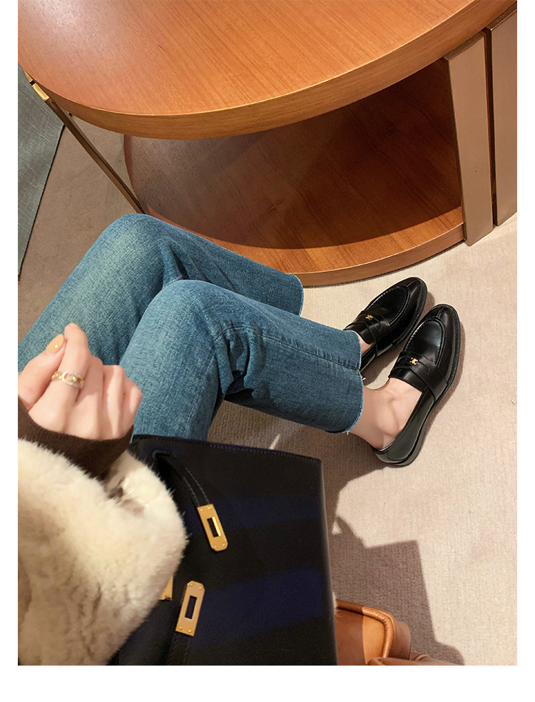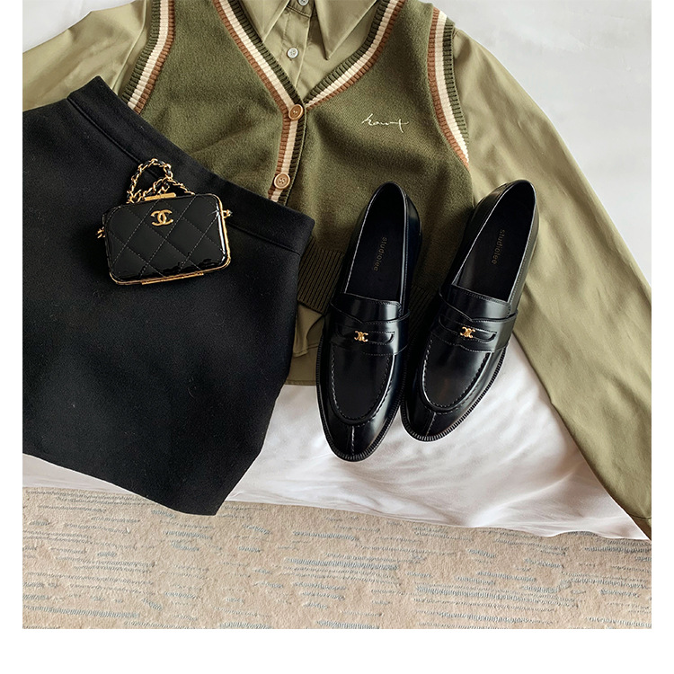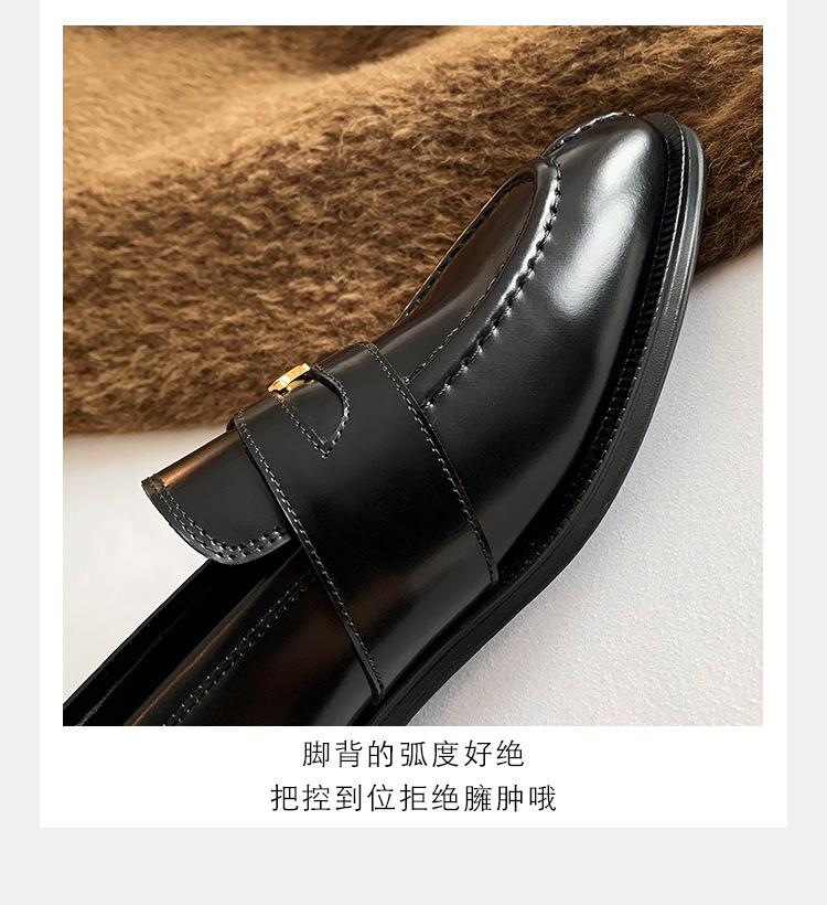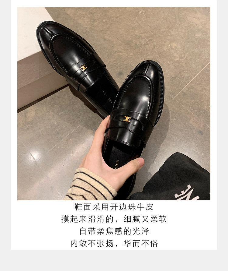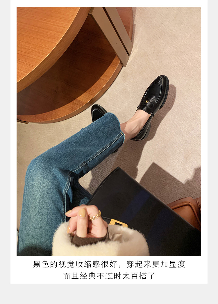 Mamá de uva estilo británico punta redonda pequeña hebilla de oro zapatos de una sola capa mocasines de plataforma de tacón grueso zapatos de cuero pequeños para mujeres primavera y otoño