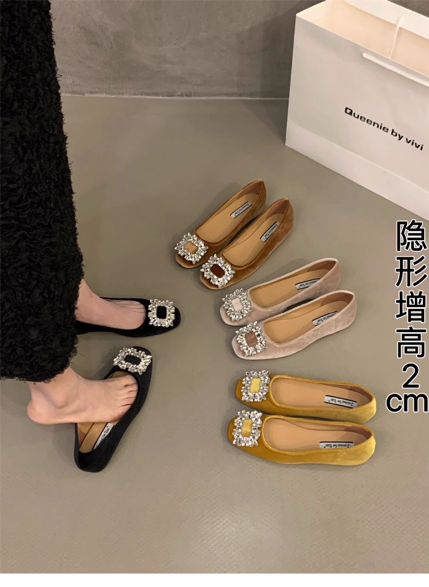 Aumentar la altura interior de suede de diamante zapatos franceses zapatos de mujer 2025 nuevos zapatos de primavera y otoño zapatos de noche zapatos de viaje negro