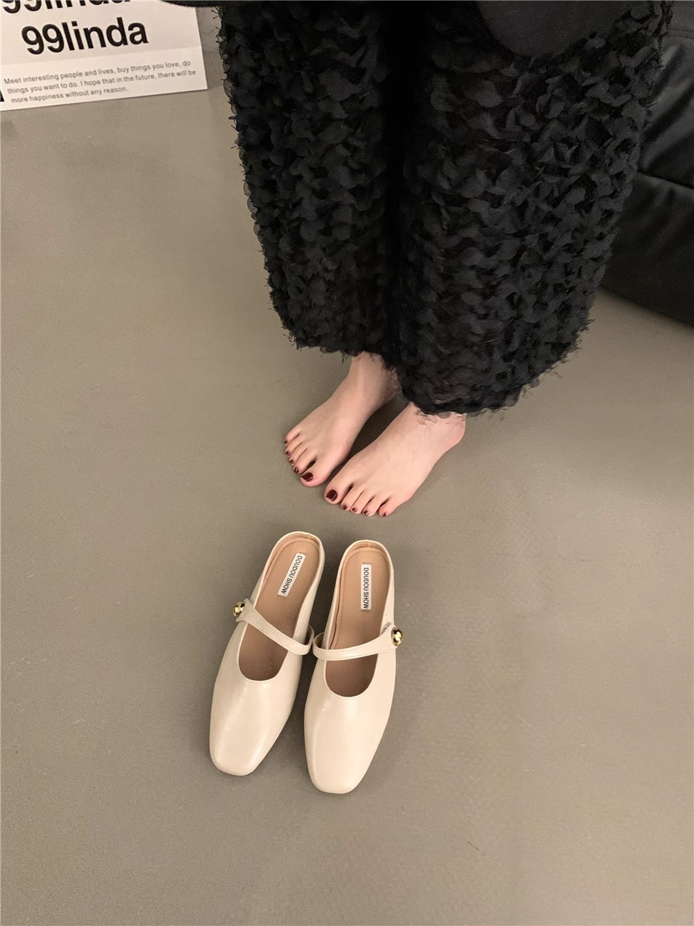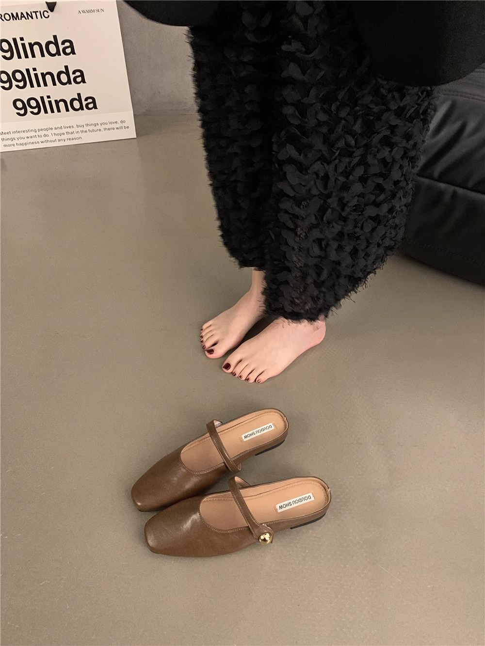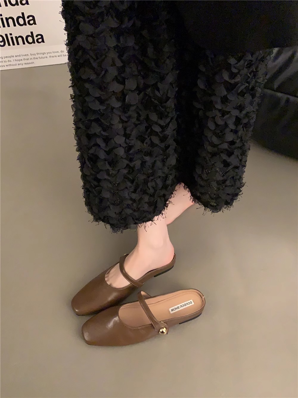 Zapatillas de primavera y verano de 2025 un pedazo de nuevo chinas zapatillas de un solo hombre perezoso Lefour zapatillas de cabeza zapatillas de mujer francesa
