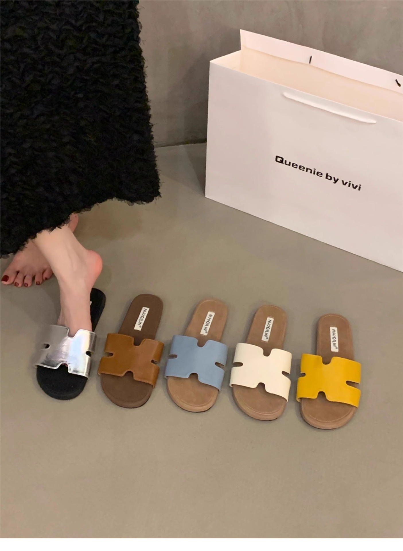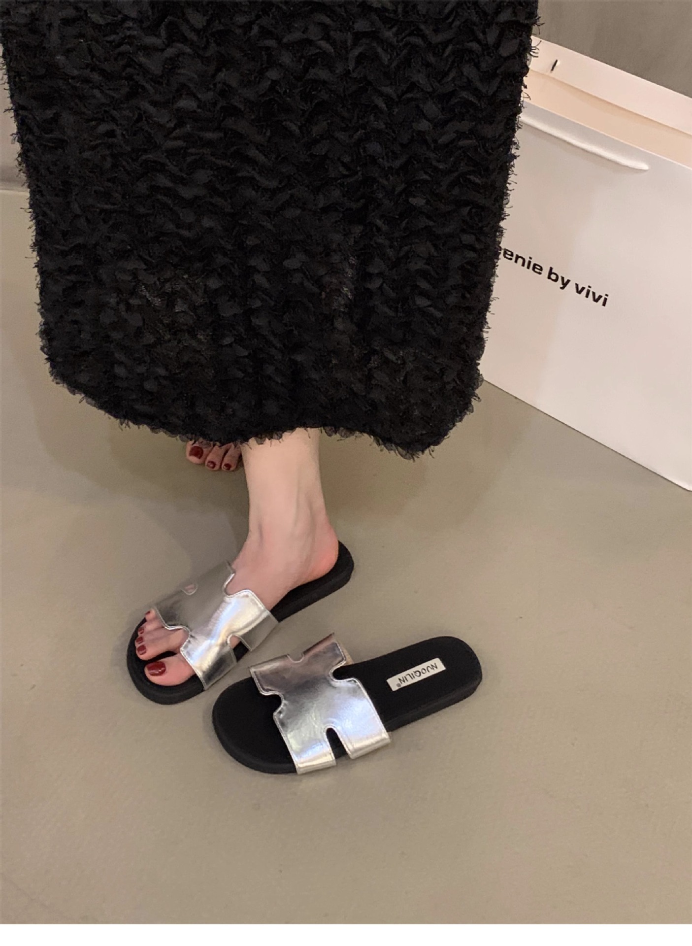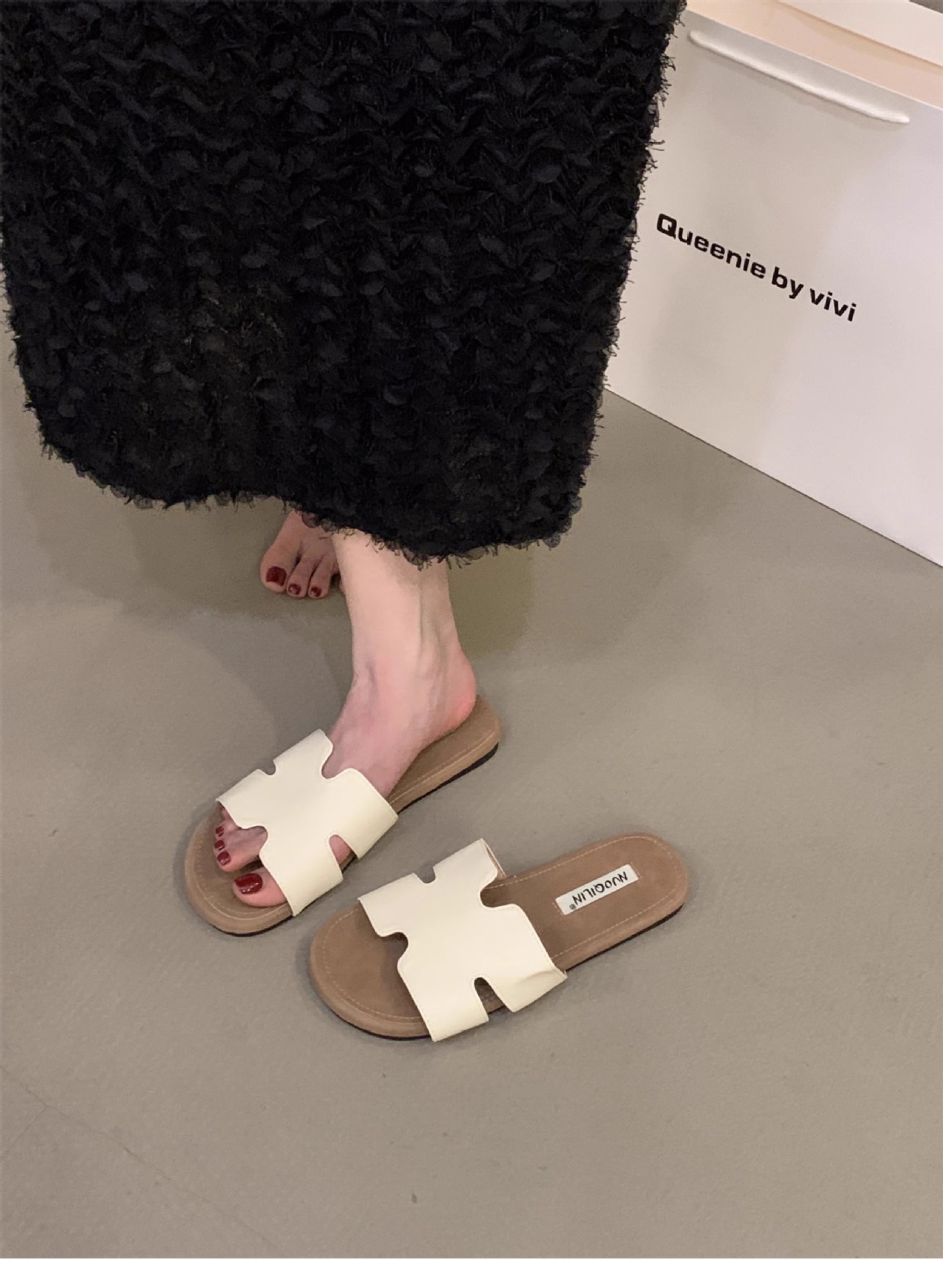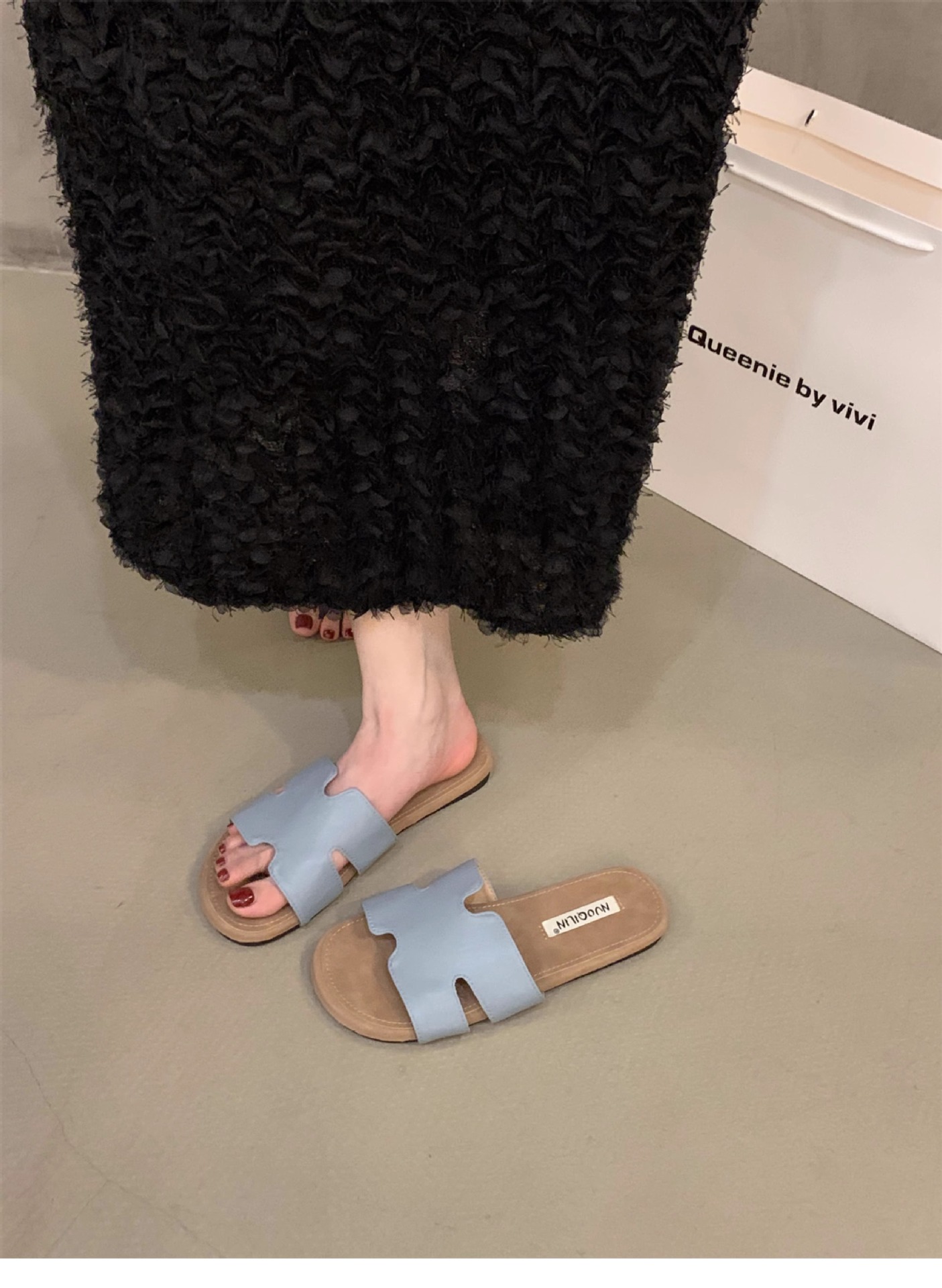 Sandalias y pantuflas francesas planas, zapatos de mujer, ropa exterior de moda 2025 nuevo verano con falda, sandalias de playa junto al mar