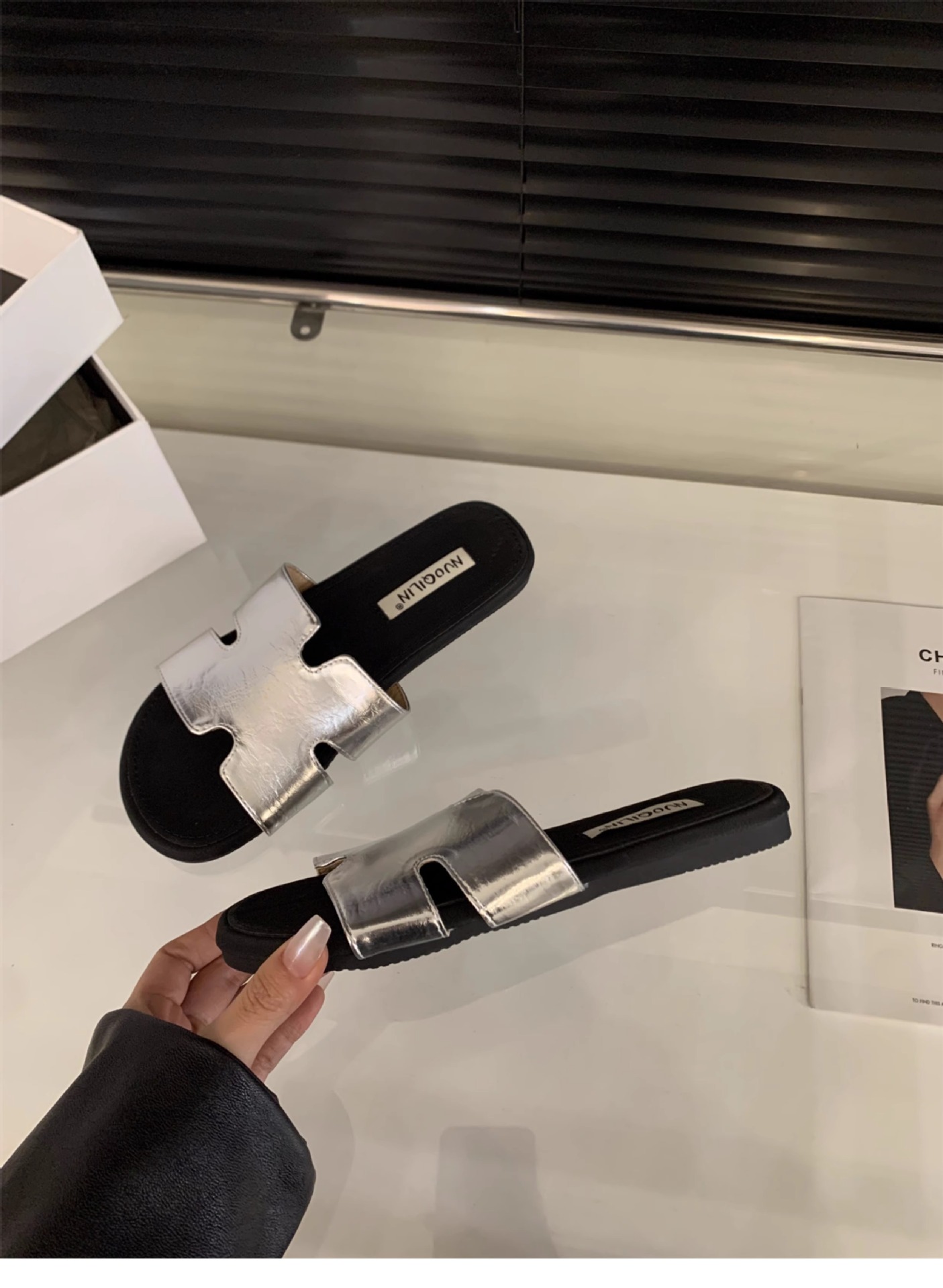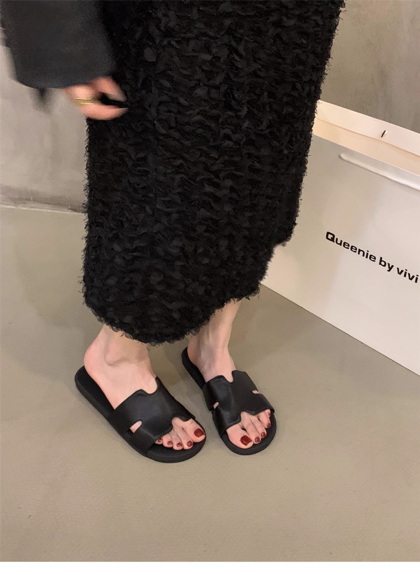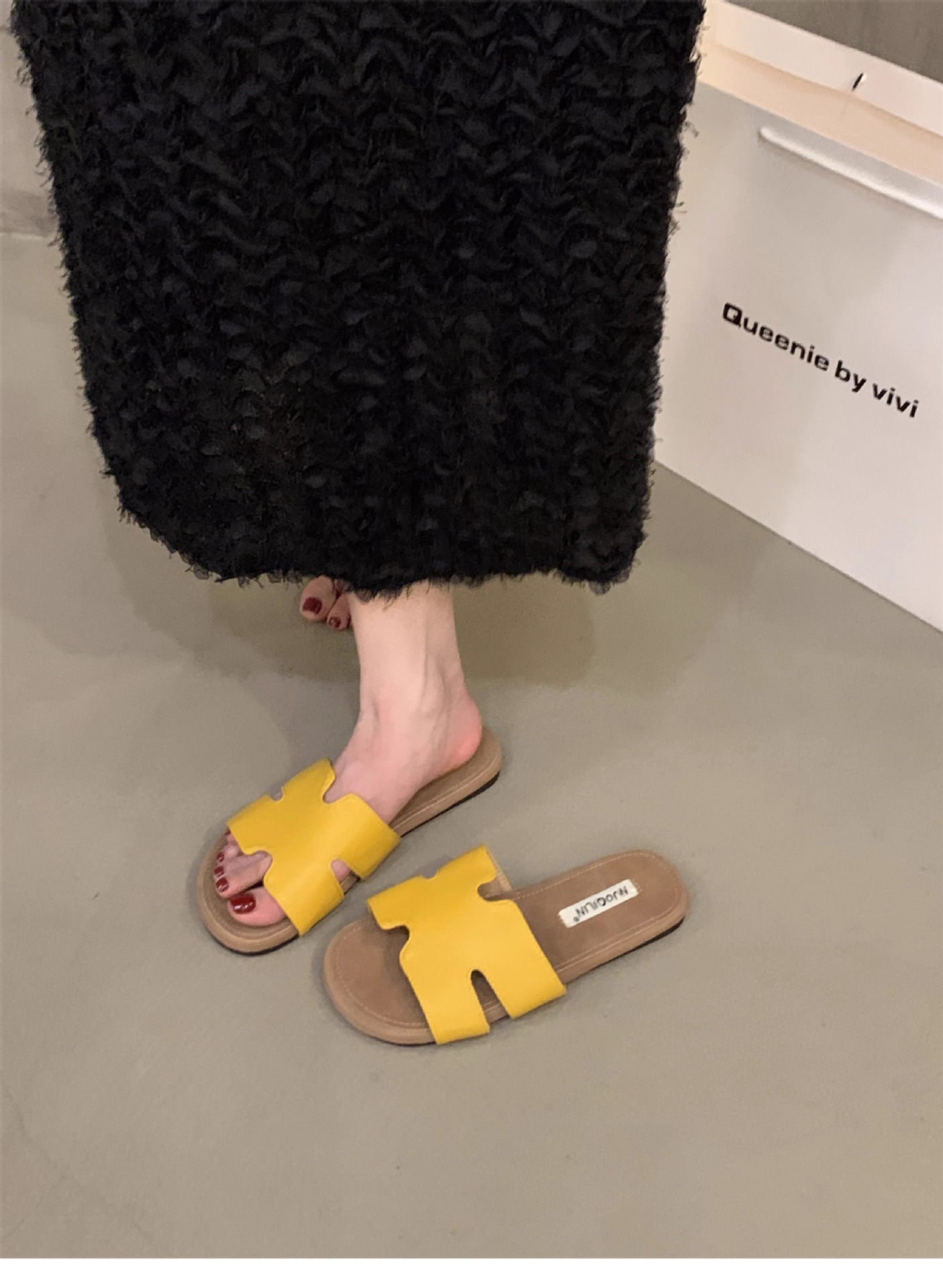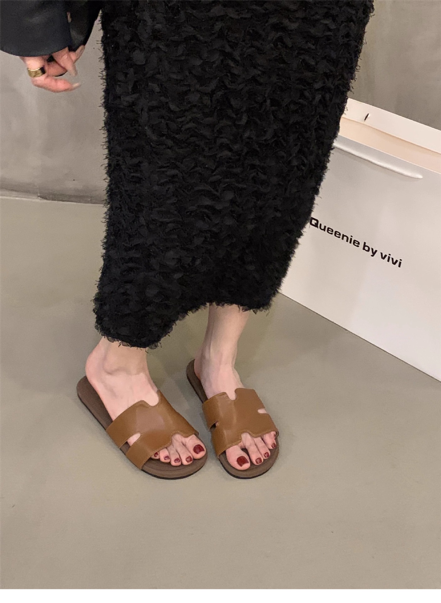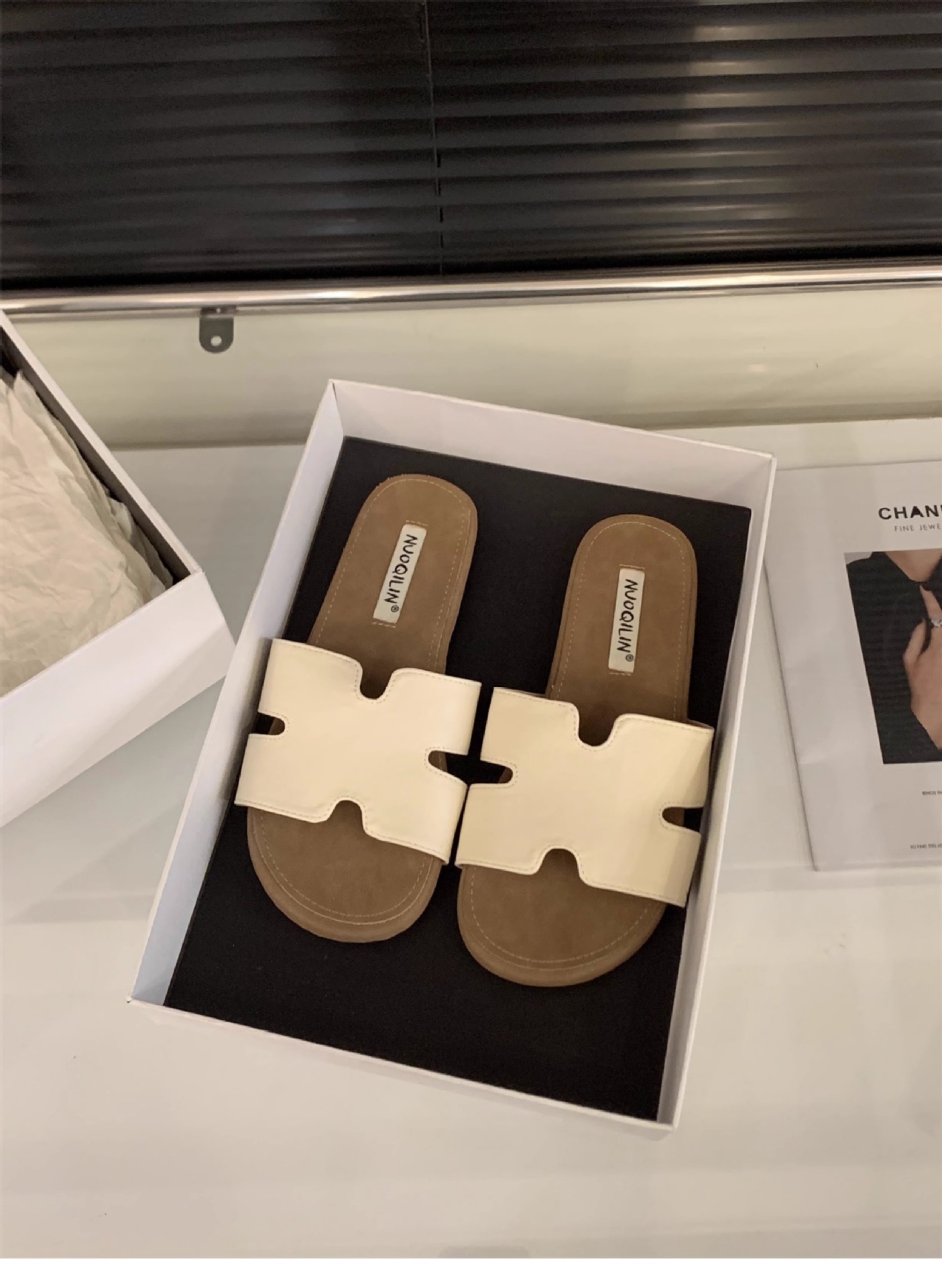 Sandalias y pantuflas francesas planas, zapatos de mujer, ropa exterior de moda 2025 nuevo verano con falda, sandalias de playa junto al mar